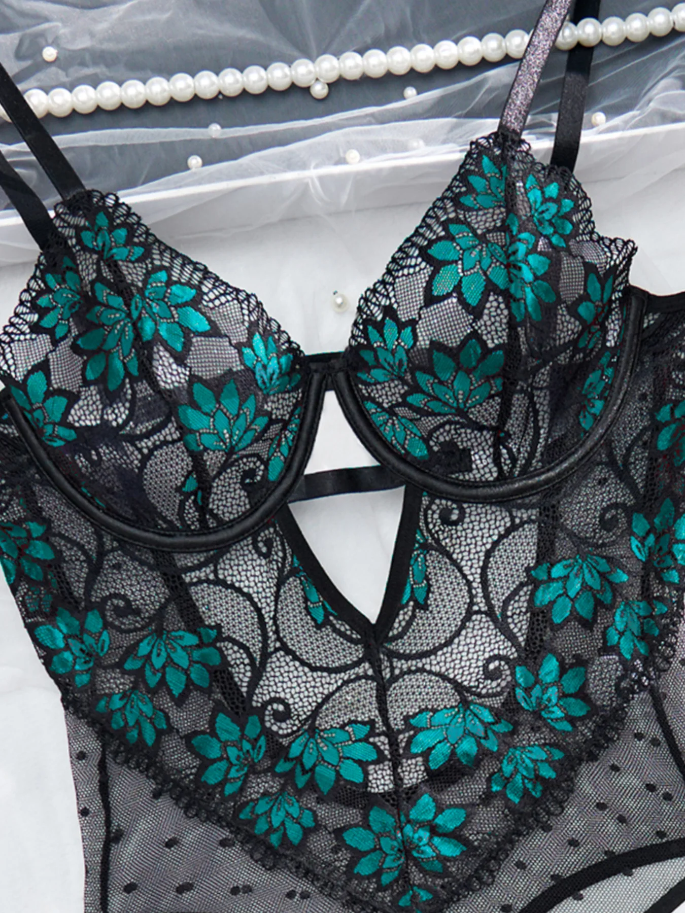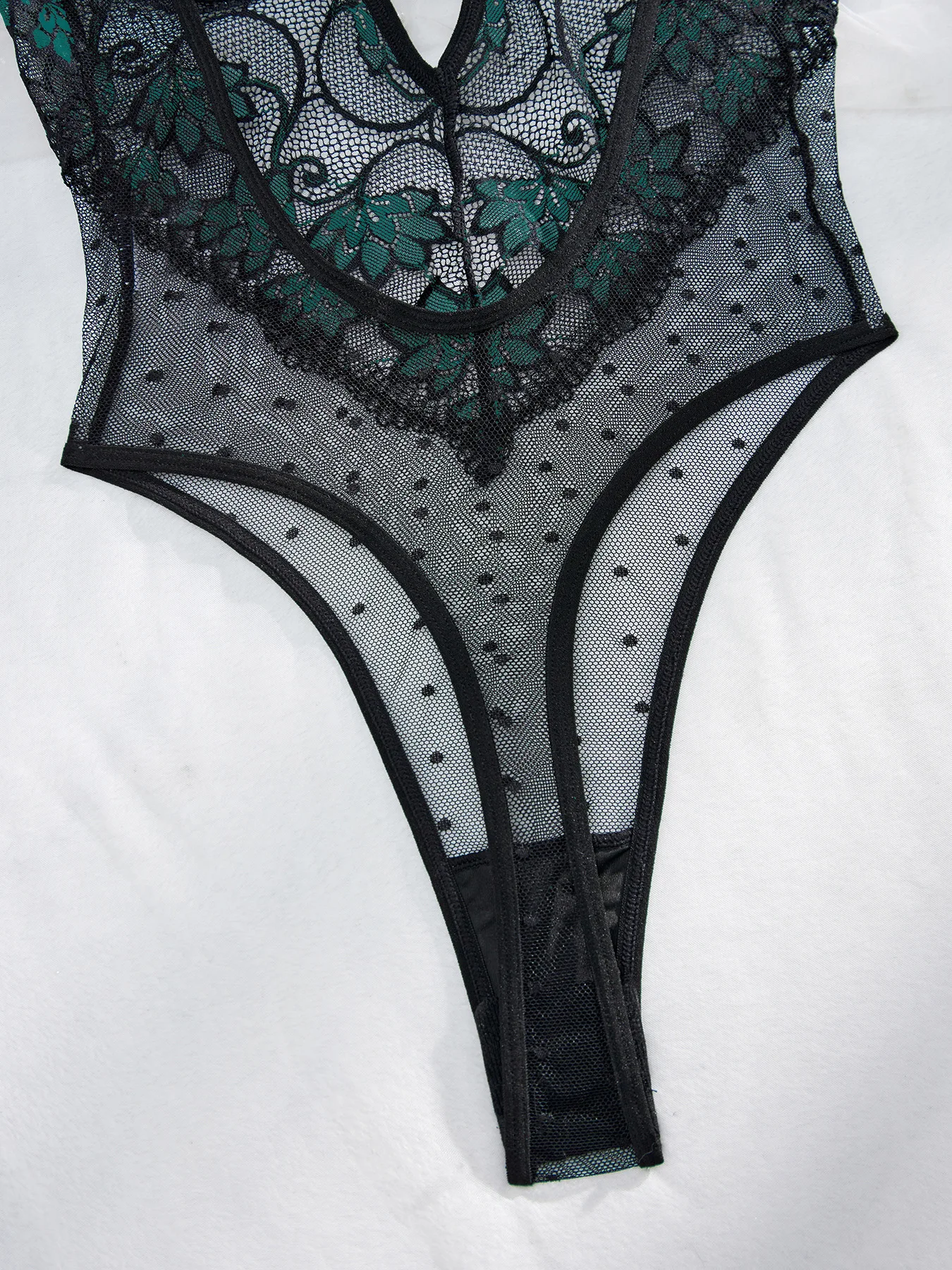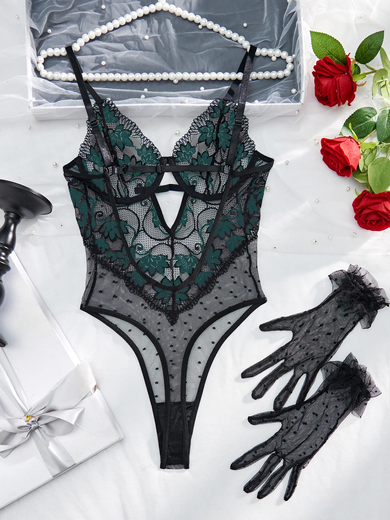 Diccvicc Elegant Women’s Body with Gloves See Through Floral Lace Sexy Bodysuit Lingerie Intimate Underwear Set Female Clothing