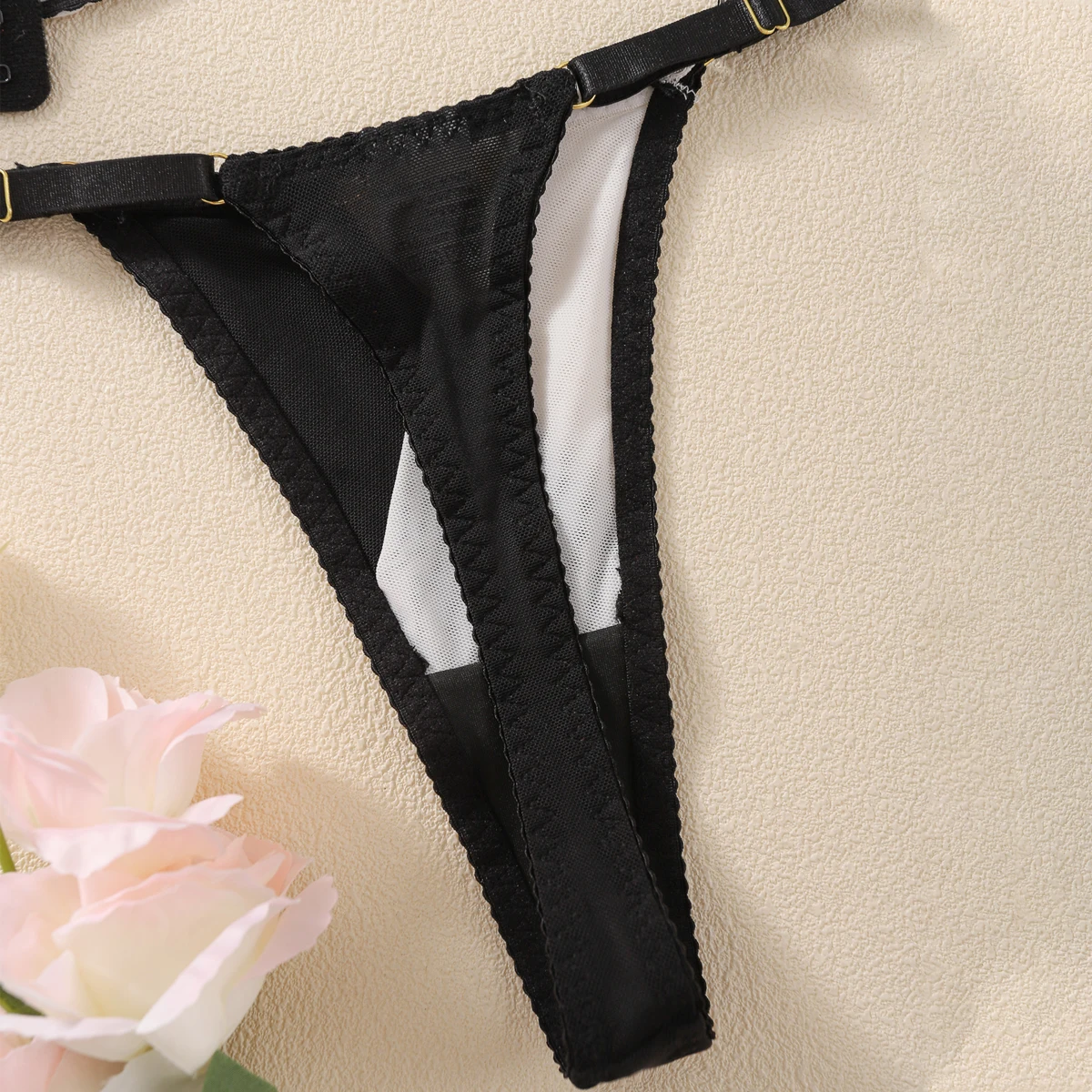 Diccvicc Feather Lingerie Elegant Women Underwear Matching Set Ultra-thin Mesh Bra with Chain Sensual Kit Sexy Intimate Apparel
