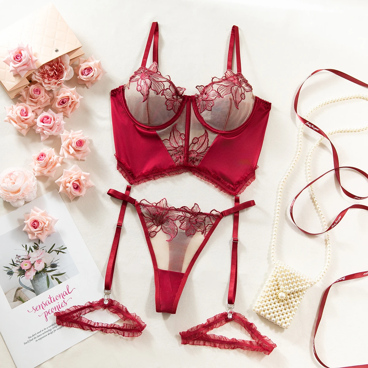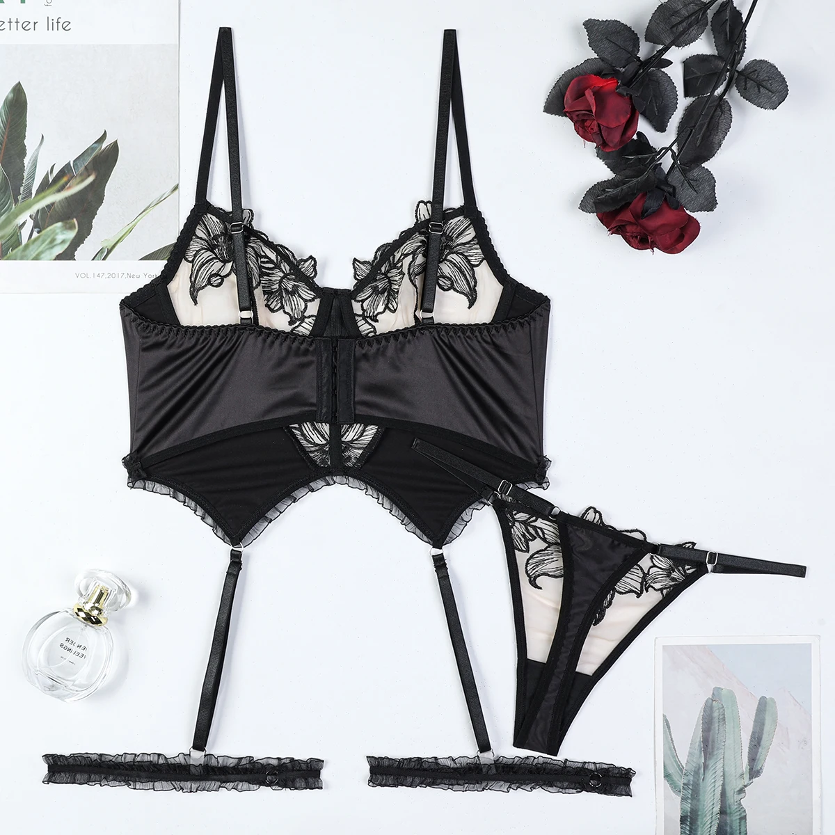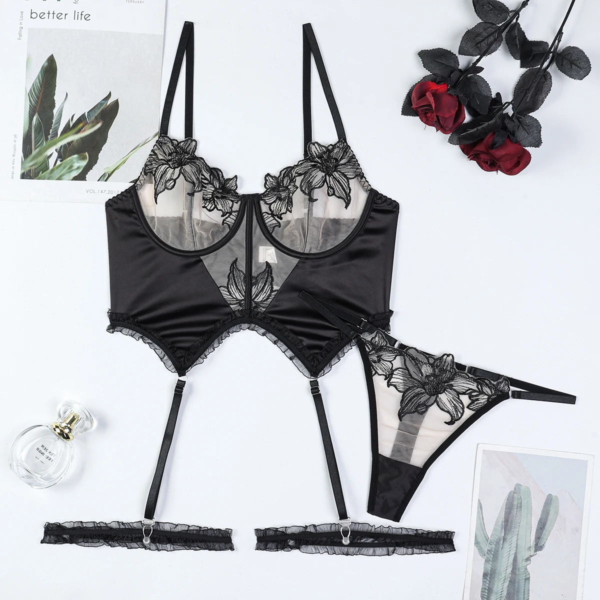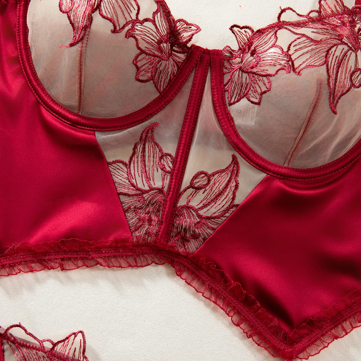 Diccvicc Floral Lace Daring Lingerie See Through Bra Panty Set Patchwork Satin Woman Sexy Underwear Sensual Kit Exotic Costume