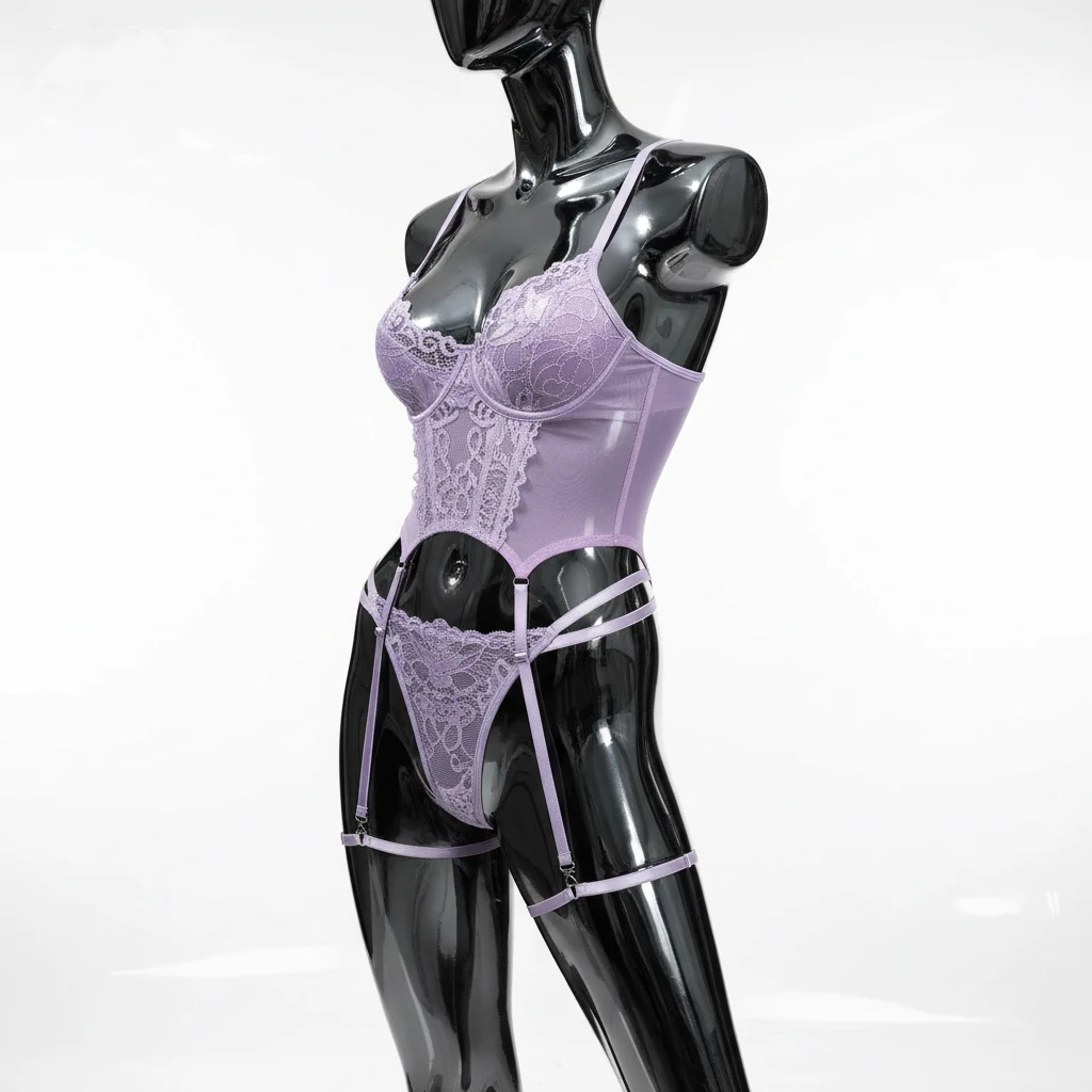 Diccvicc Floral Lace Lingerie See Through Sexy Tops Panty Set Attractive Underwear Elegant Woman Sensual Kit Exotic Lady Clothes