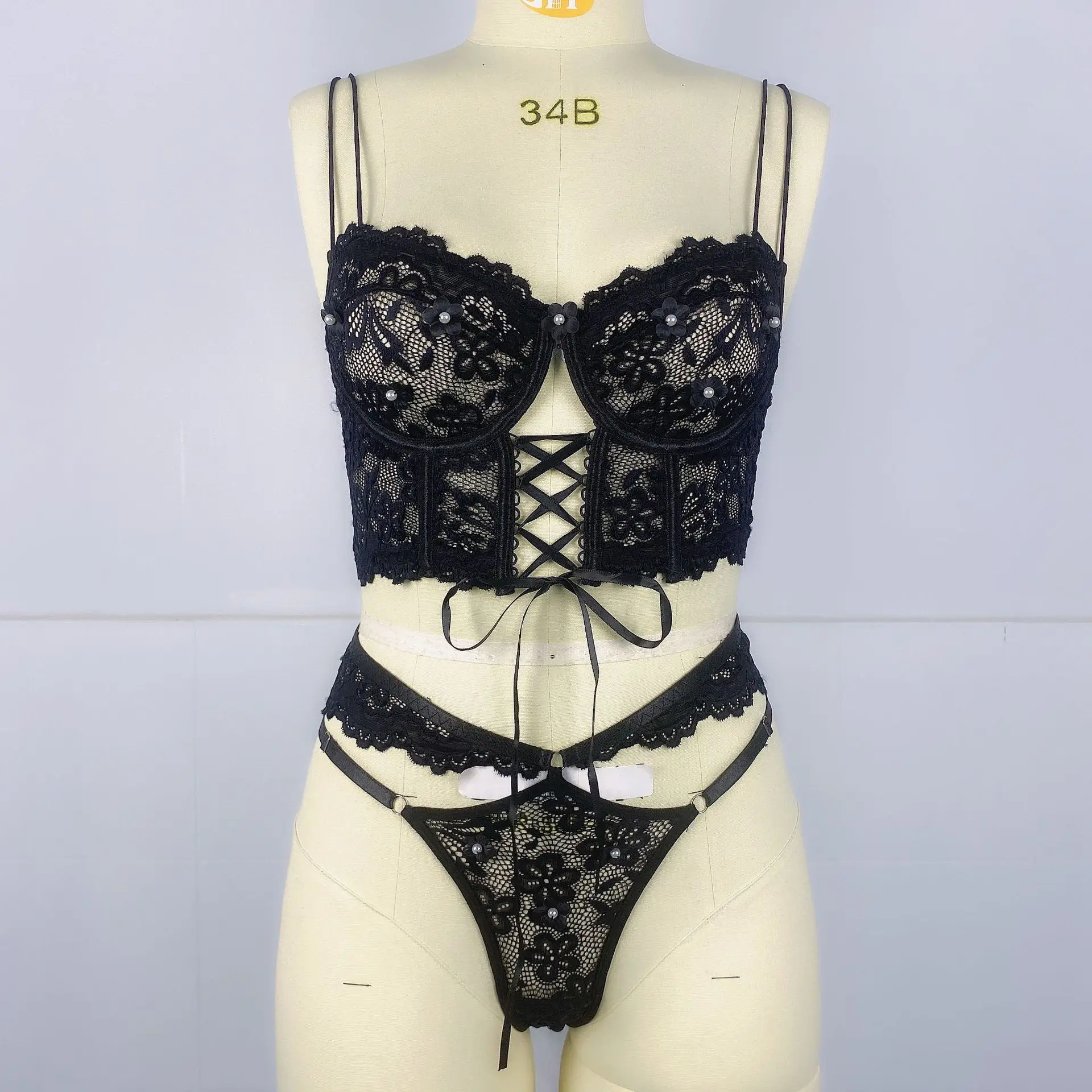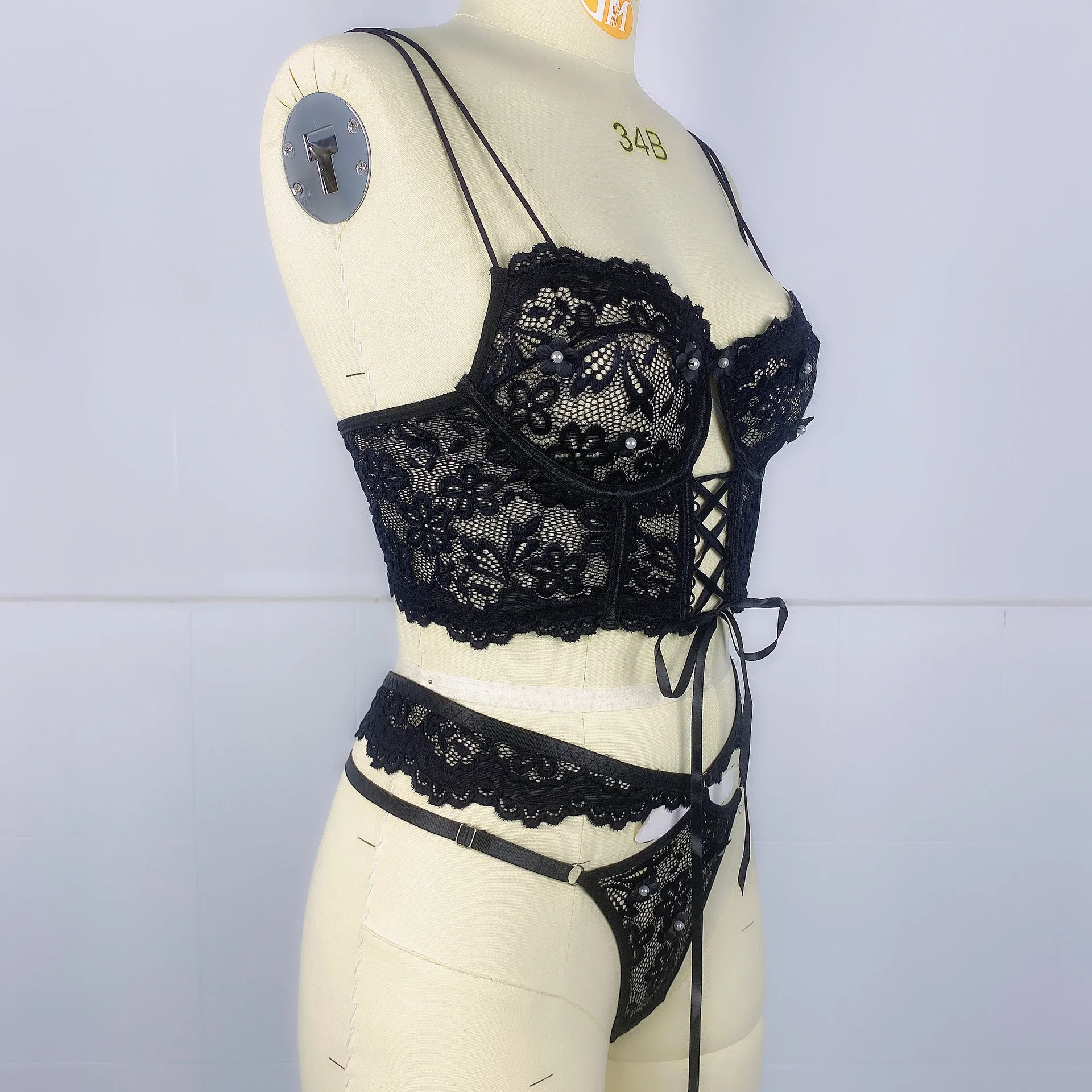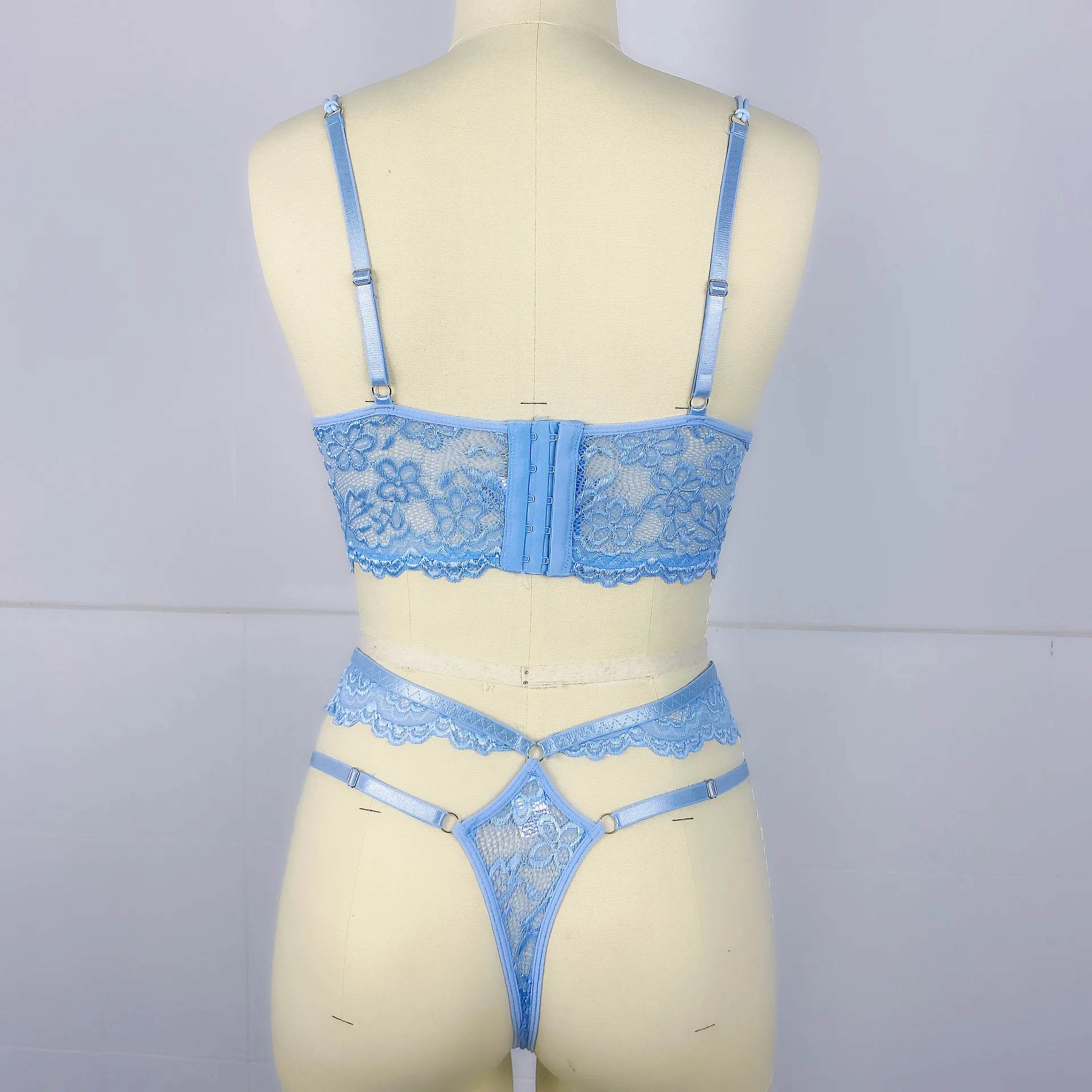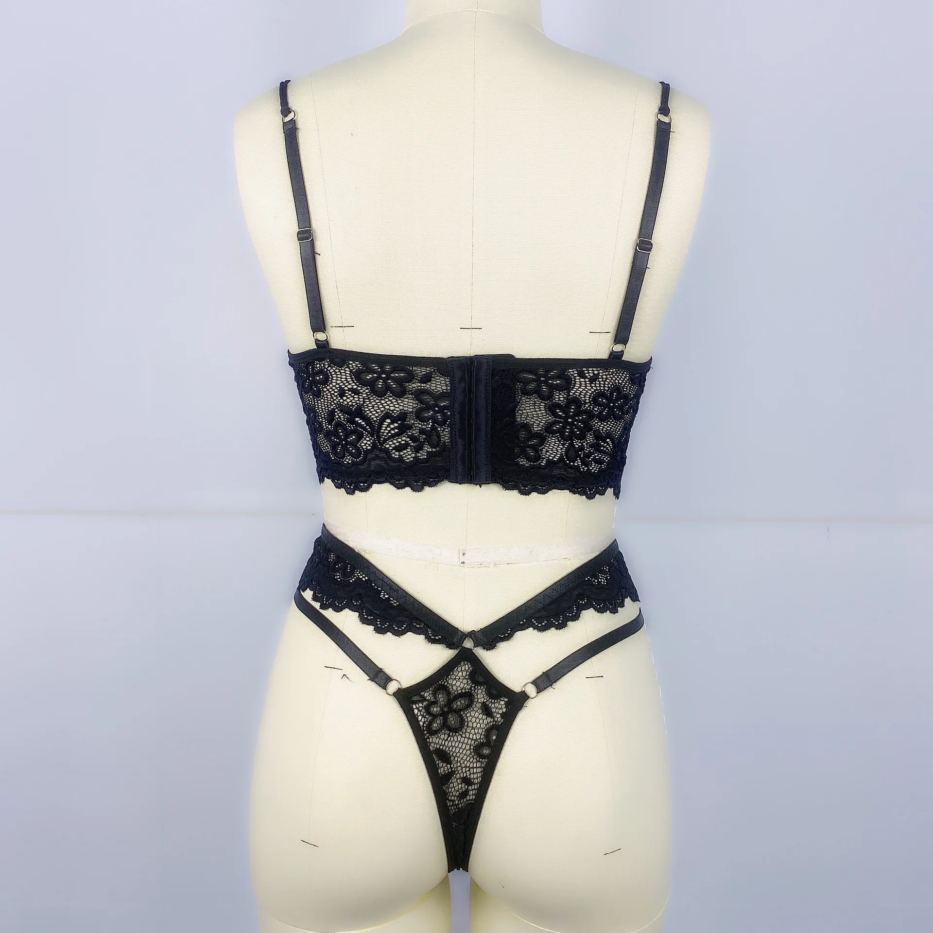 Diccvicc Floral Lace Underwear Sexy Tops Bra Fancy Panty Set 2 Pieces Transparent Hot Women Lingerie Intimate Kit Exotic Apparel