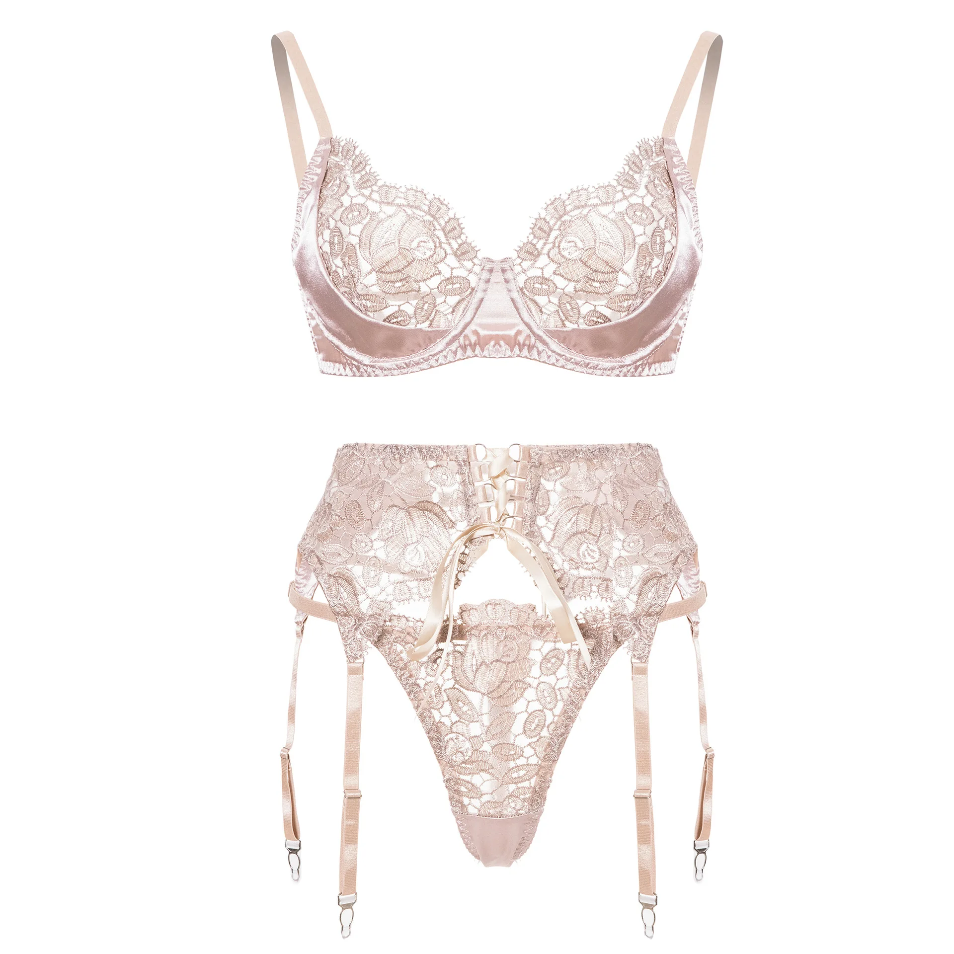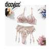 Diccvicc Floral Lingerie Luxury Lace Satin Patchwork Bra Drawstring Garter Exotic Set Sexy Women Underwear Transparent Intimates