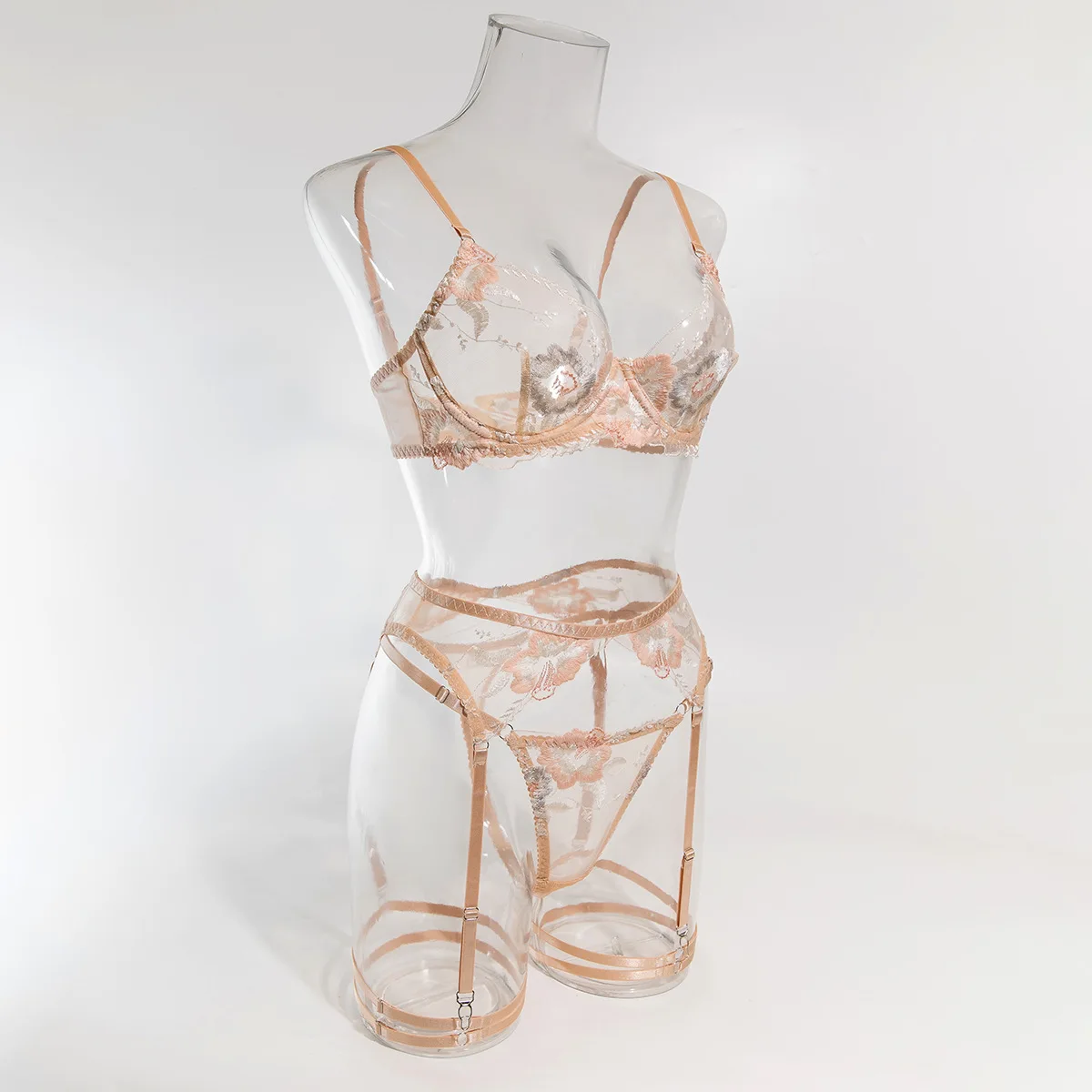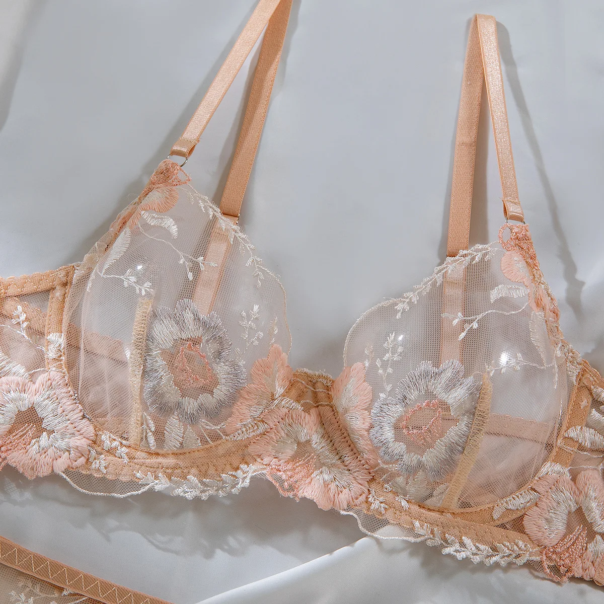 Diccvicc Floral Lingerie See Through Embroidery Sexy Lace Bra Panty Set Fine Women Exotic Garter Underwear Intimate Fancy Outfit