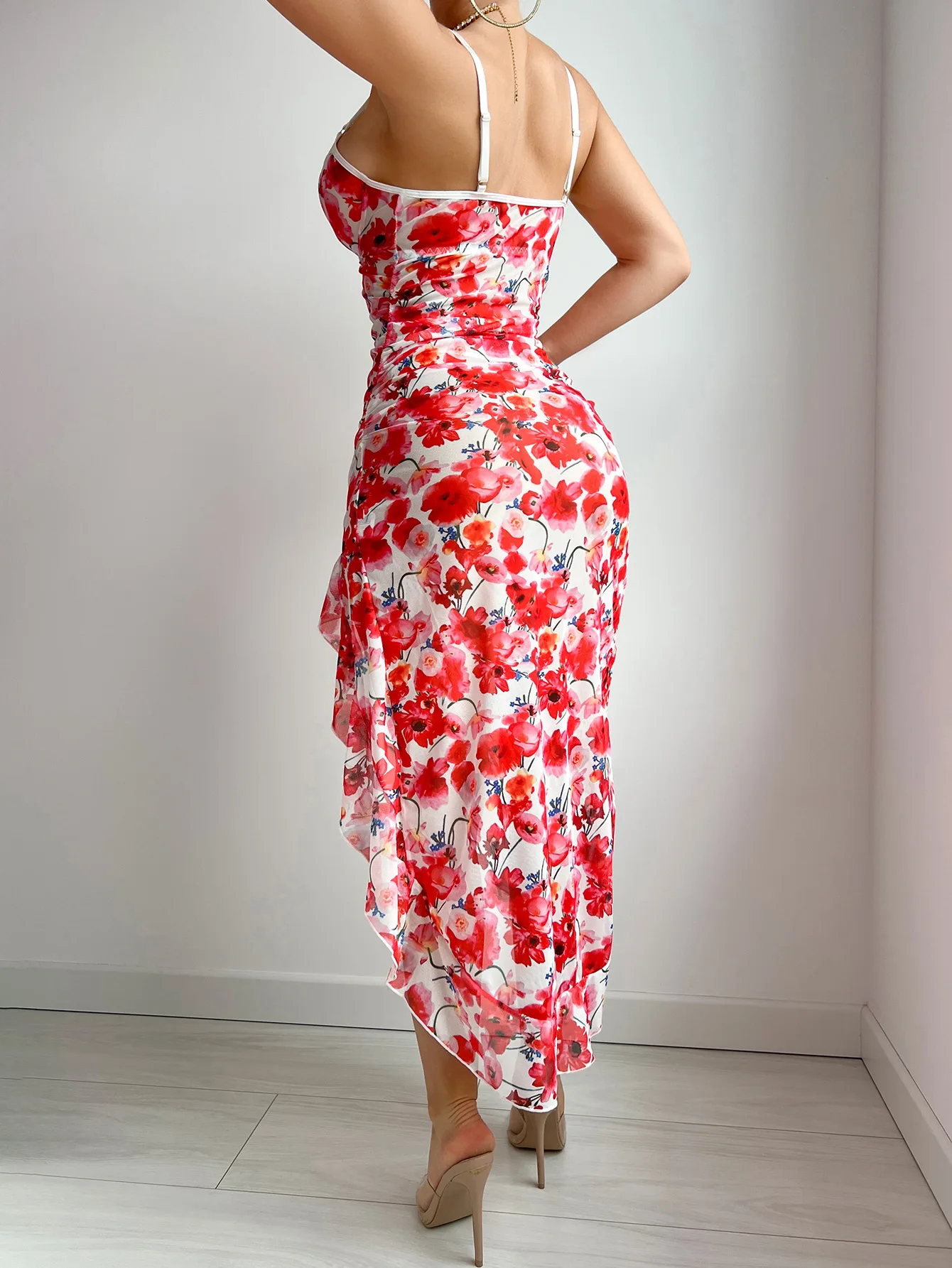 Diccvicc High Slit Nightgown Print Floral Sexy Night Dress Elegant Woman Home Intimacy Wear Romantic Underwear Exotic Apparel