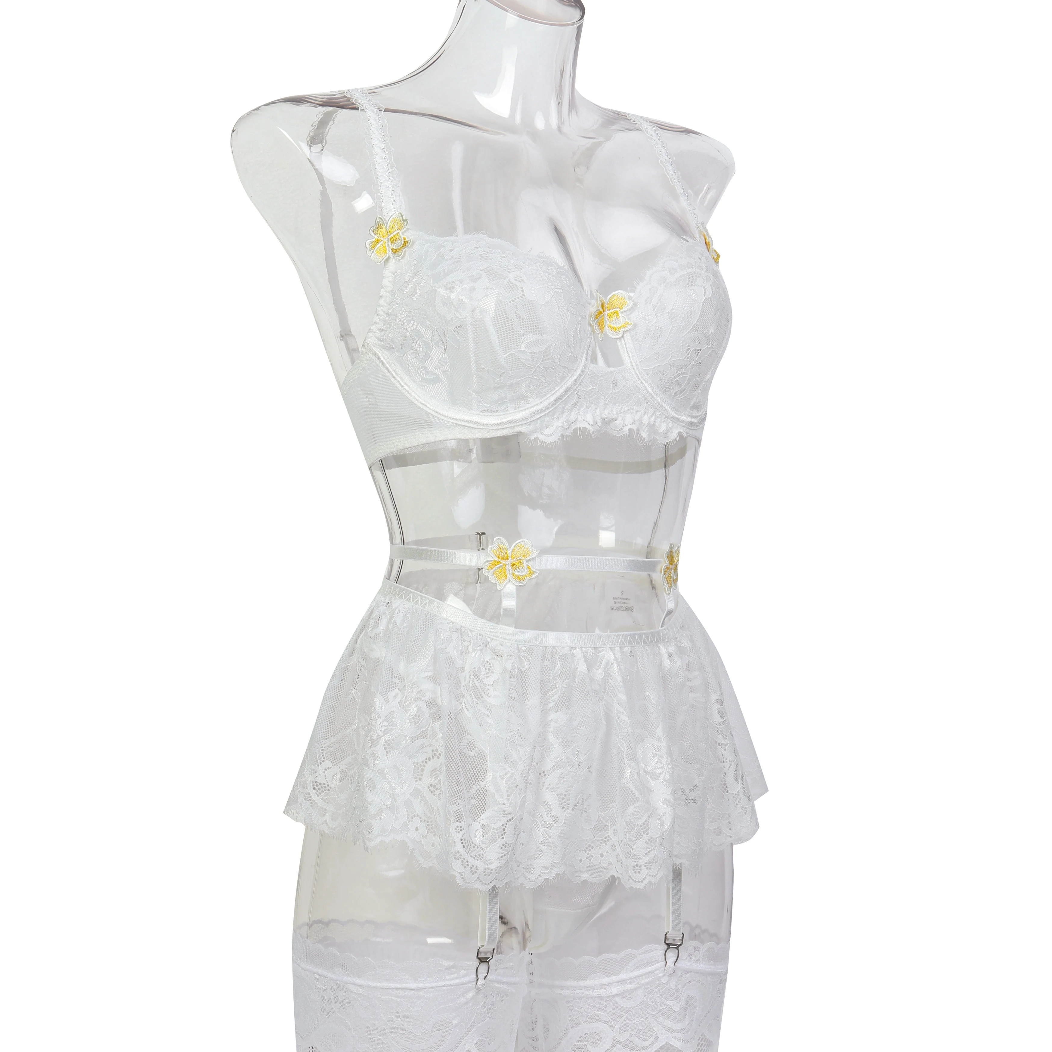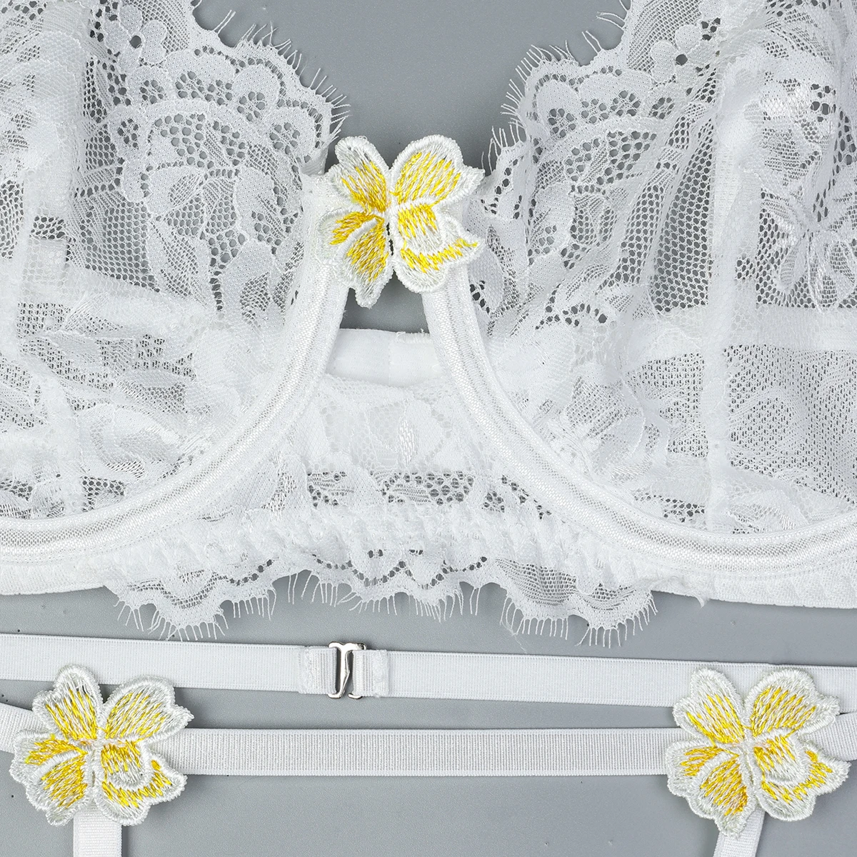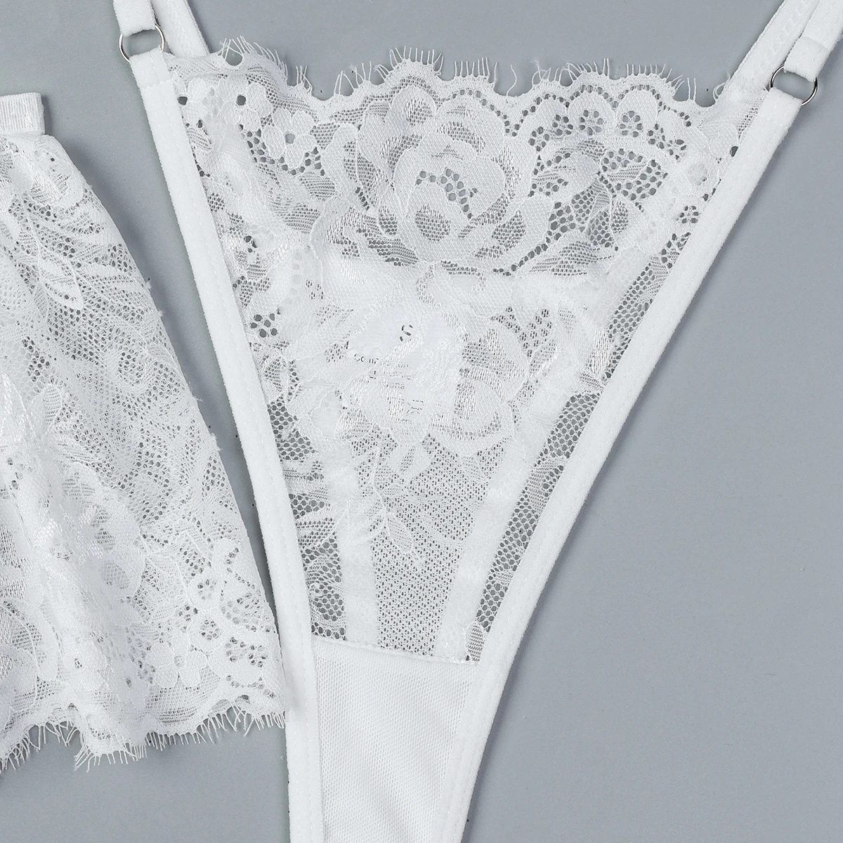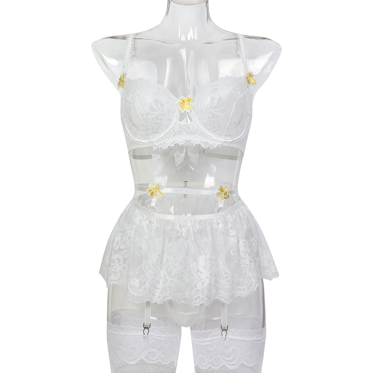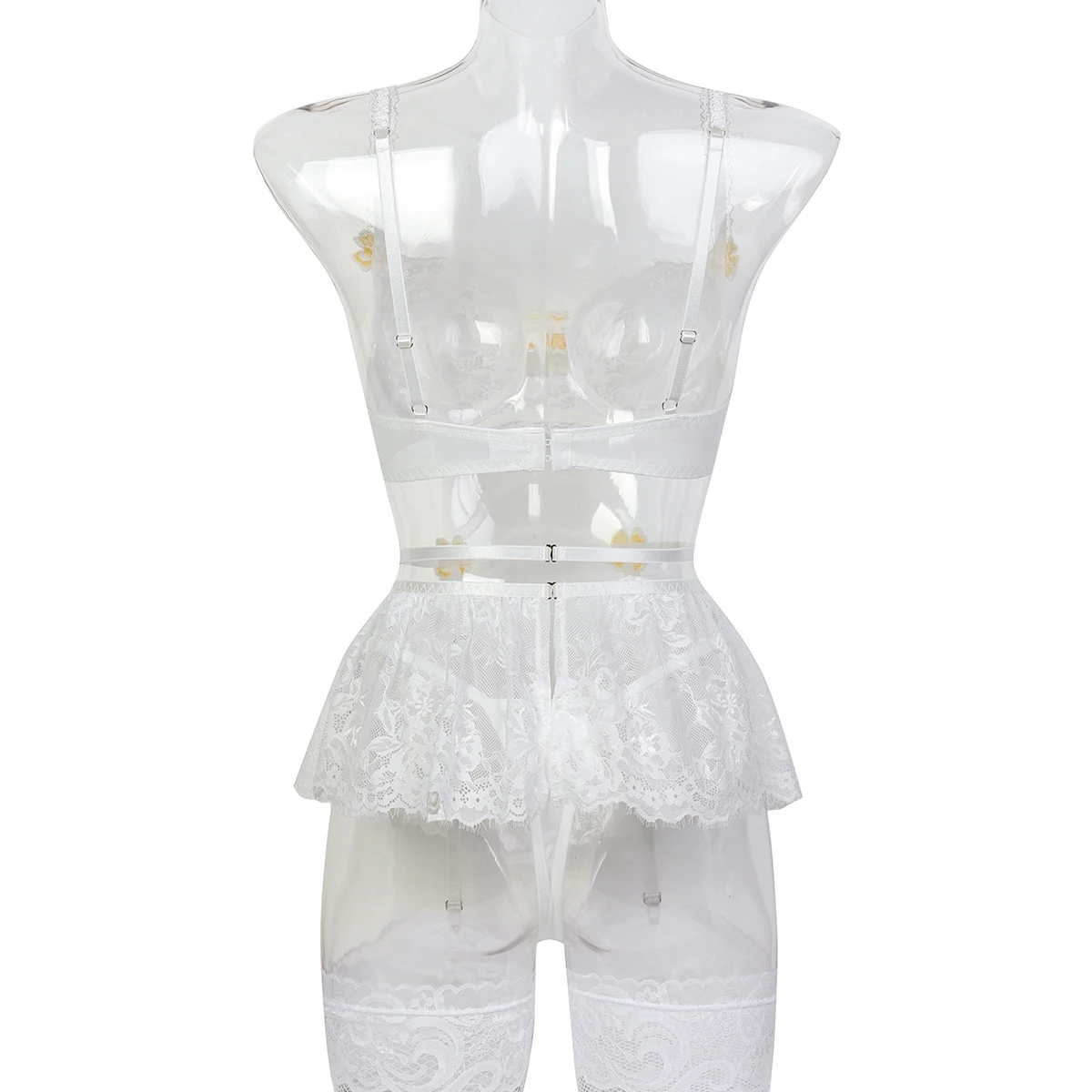 Diccvicc Lingerie Set Transparent Lace Sexy Underwear Woman with Stocking Fancy Sensual Kit Fine Intimate Outfit Exotic Costumes