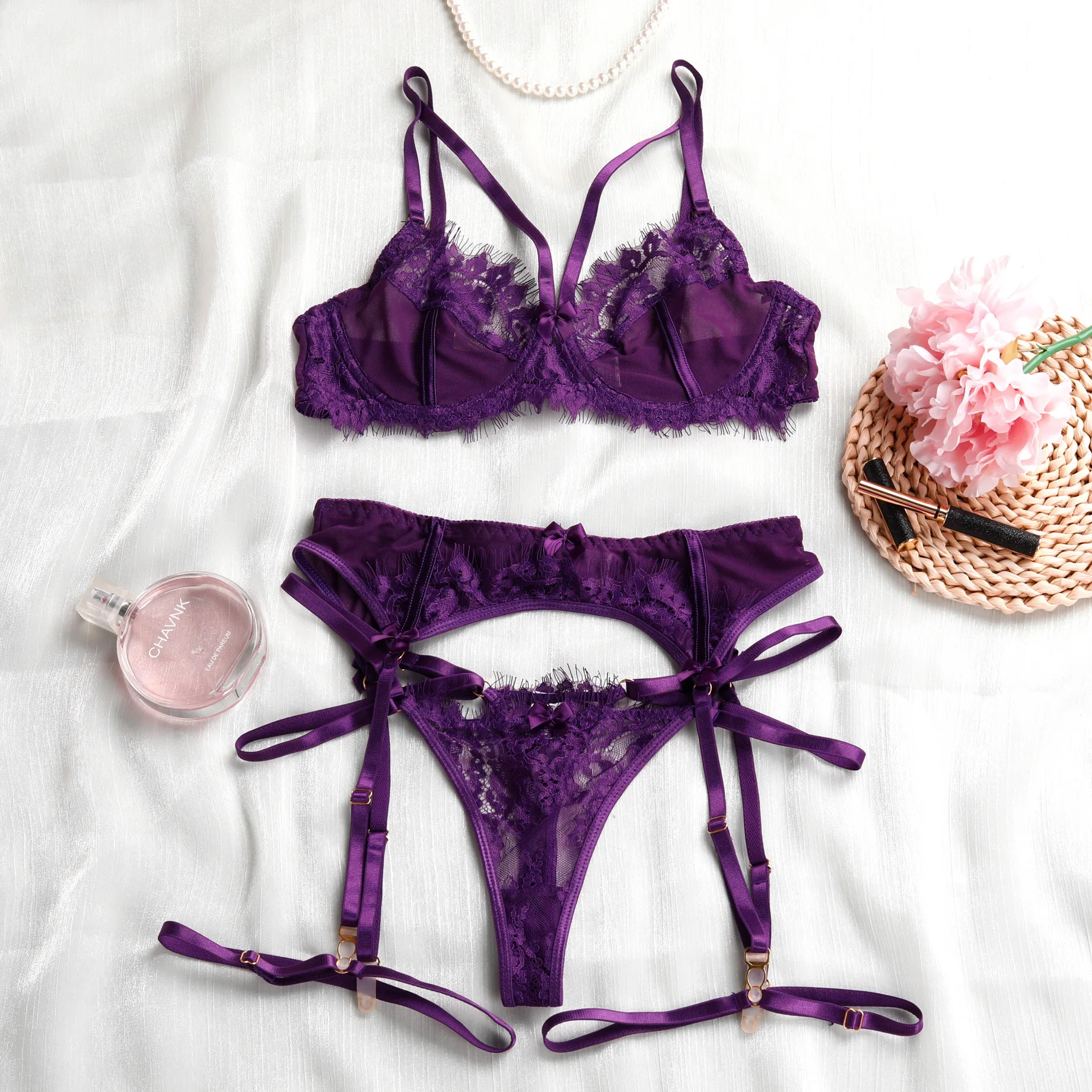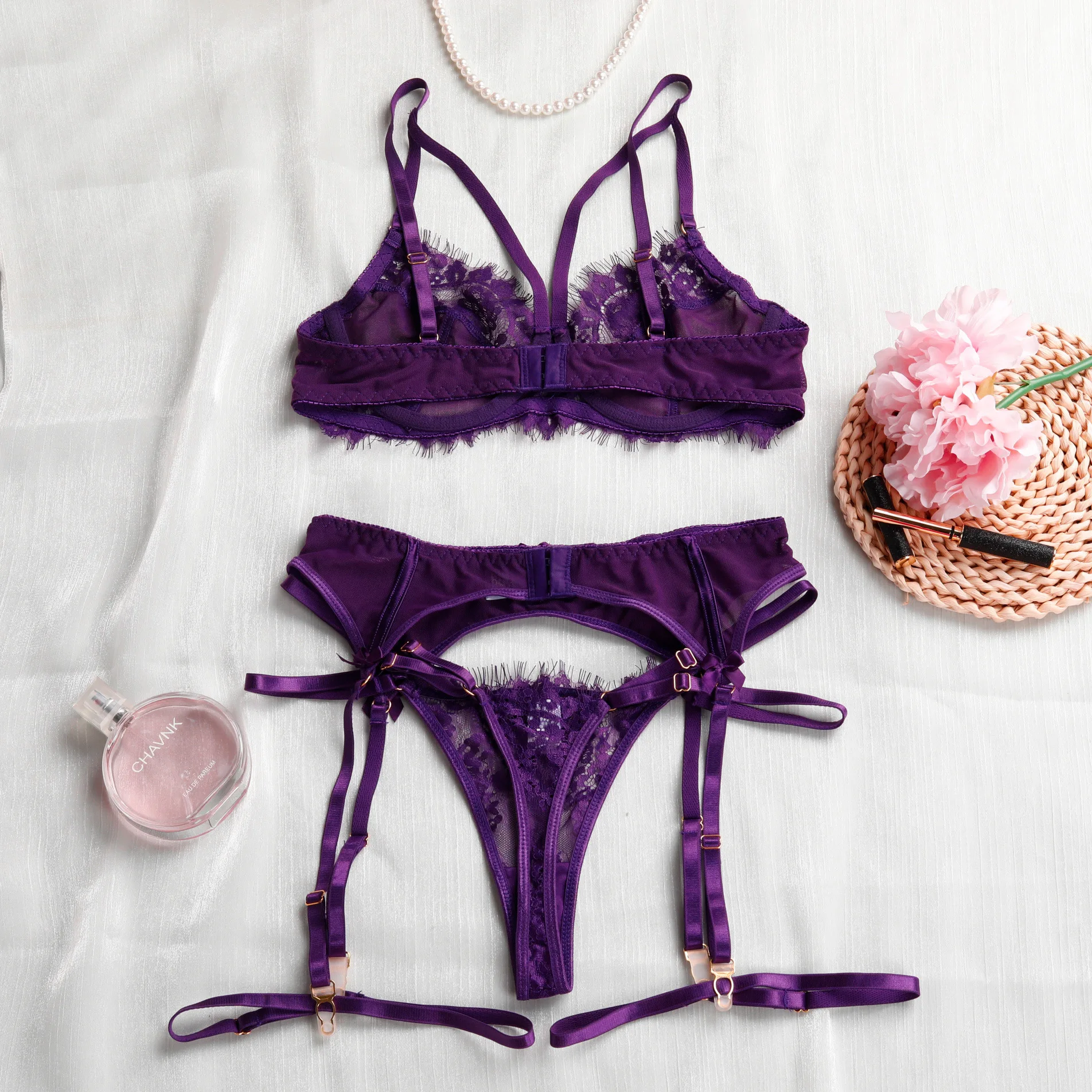 Diccvicc Lingerie Sexy Female Bandage Bra Embroidery Floral Lace Romantic Garter Underwear Women Babydoll Intimates Exotic Set
