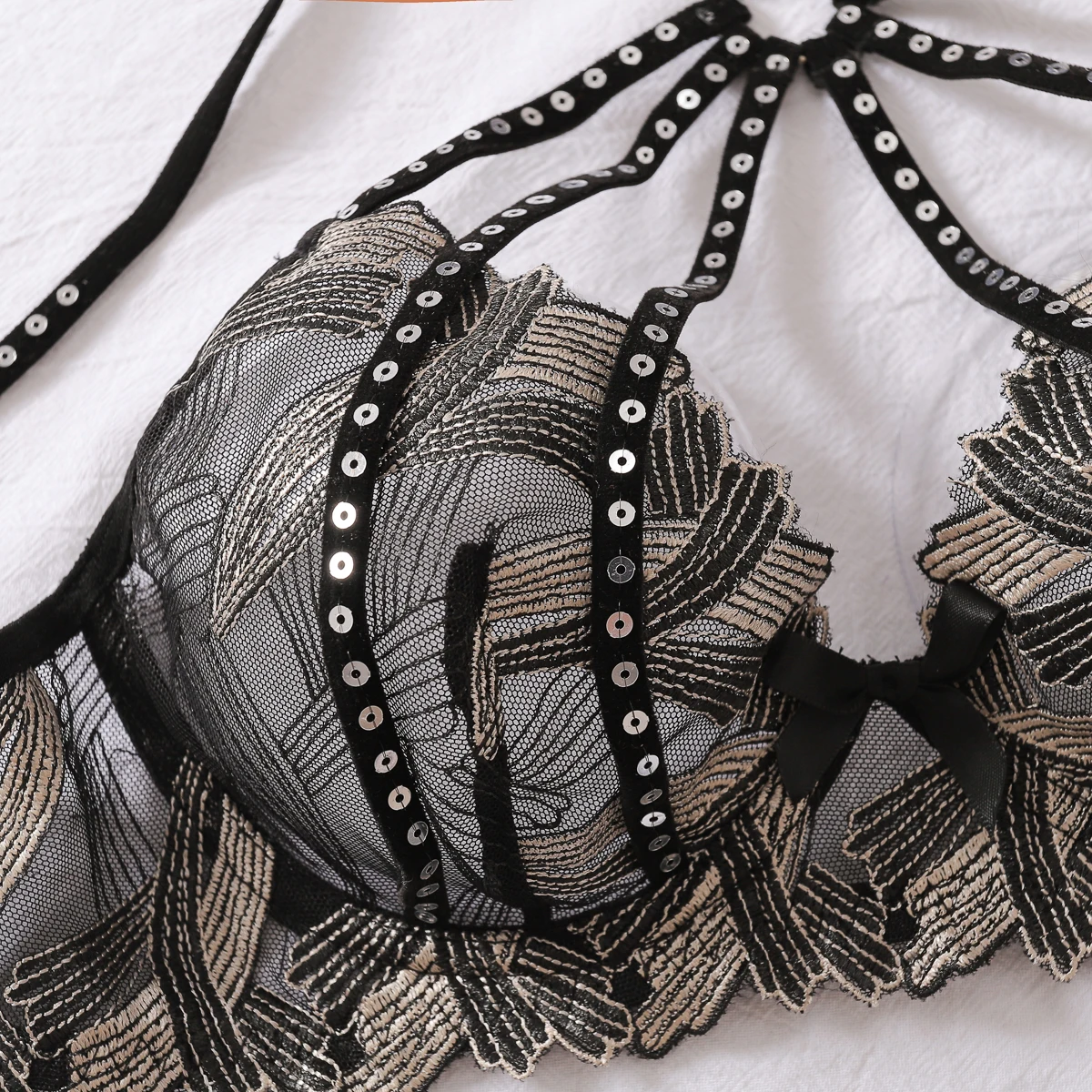 Diccvicc Lingerie Women Set 2 Pieces Halter Bra Sexy Lace Fancy Panty Attractive Chest Underwear Erotic Costume Fantasy Clothing