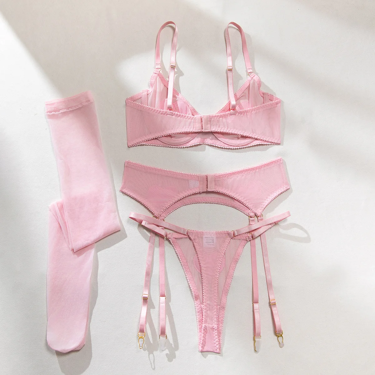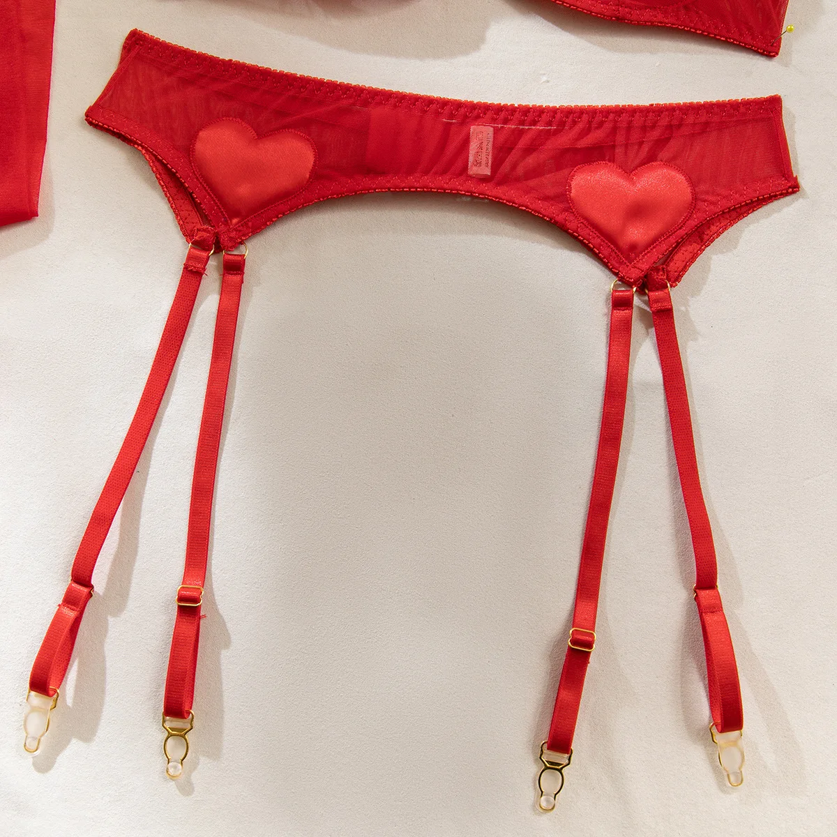 Diccvicc Love Heart Lingerie for Women with Stocking See Through Mesh Bra Garter Belt Underwear Sexy Exotic Set Erotic Outfits