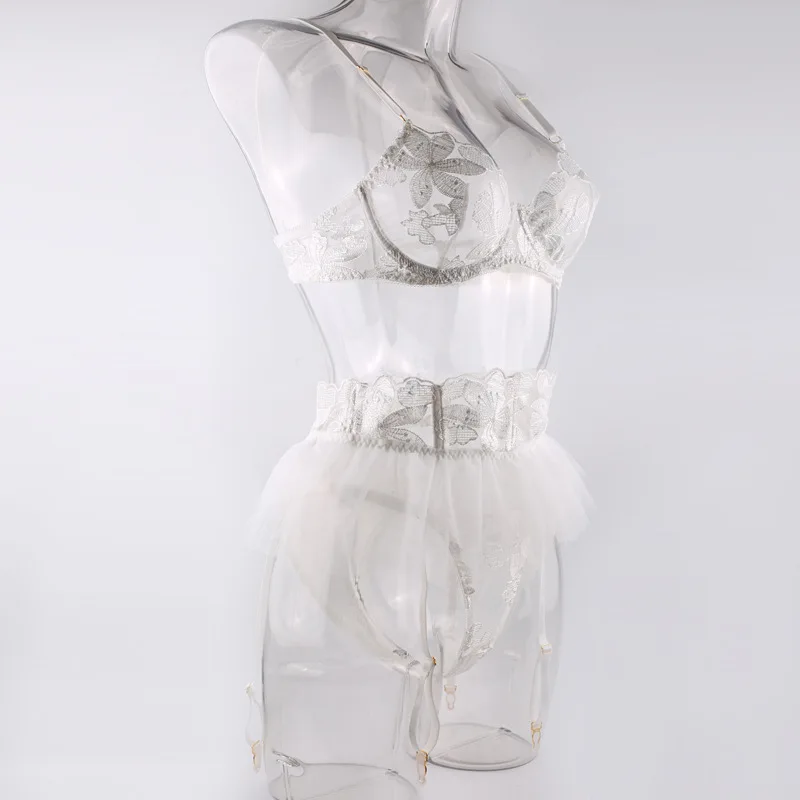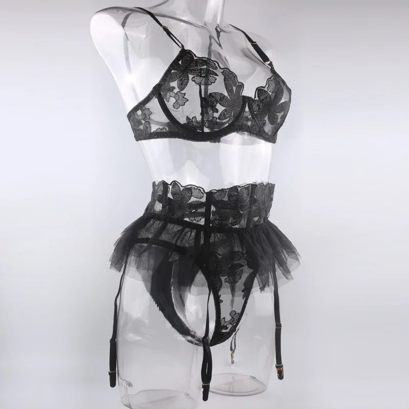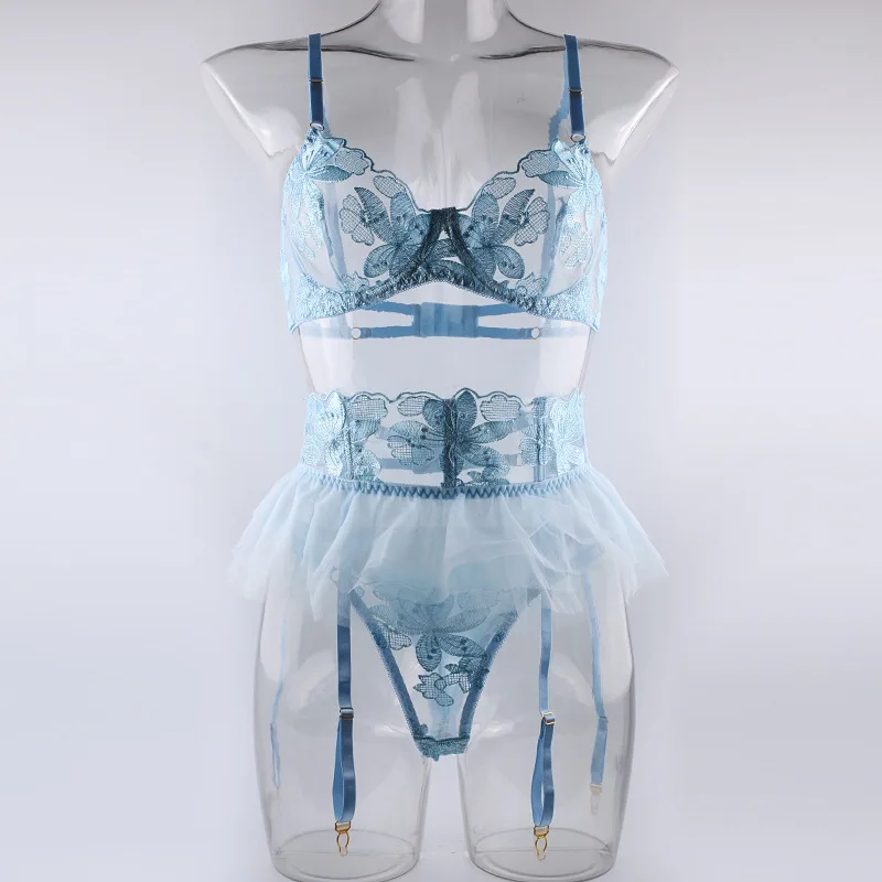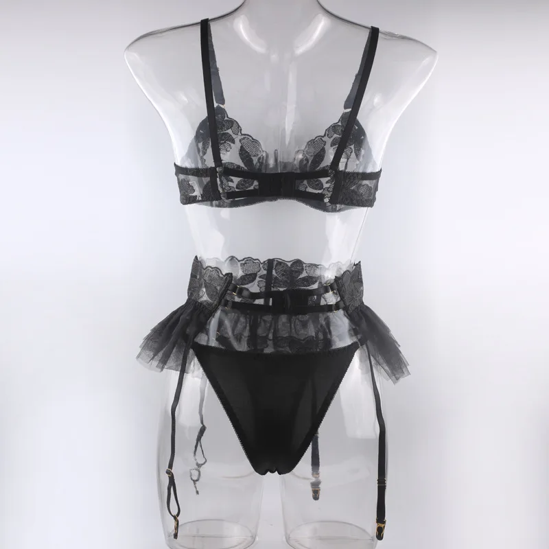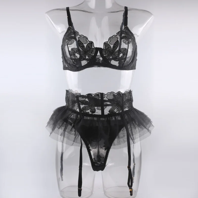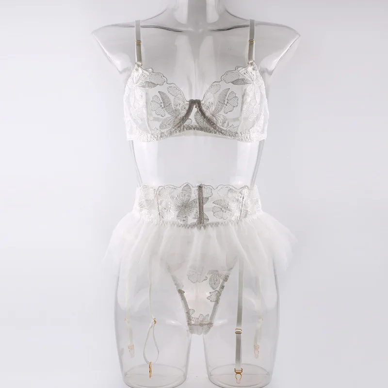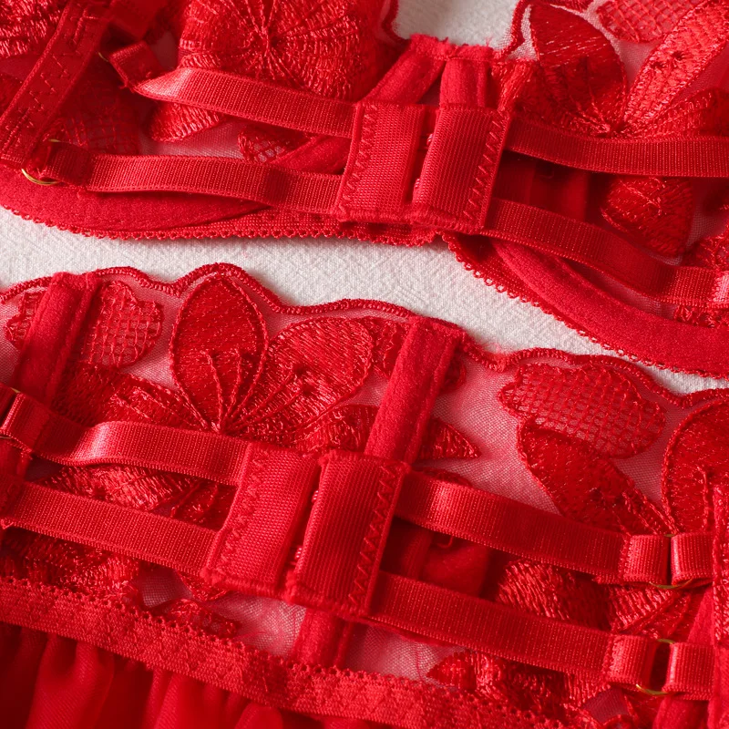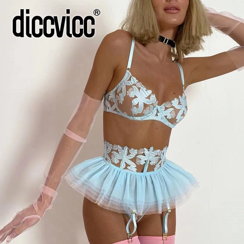 Diccvicc Luxury Lace Lingerie Set Floral Embroidery Transparent Bra Fancy Garters Women Sexy Underwear Erotic Intimate Outfits