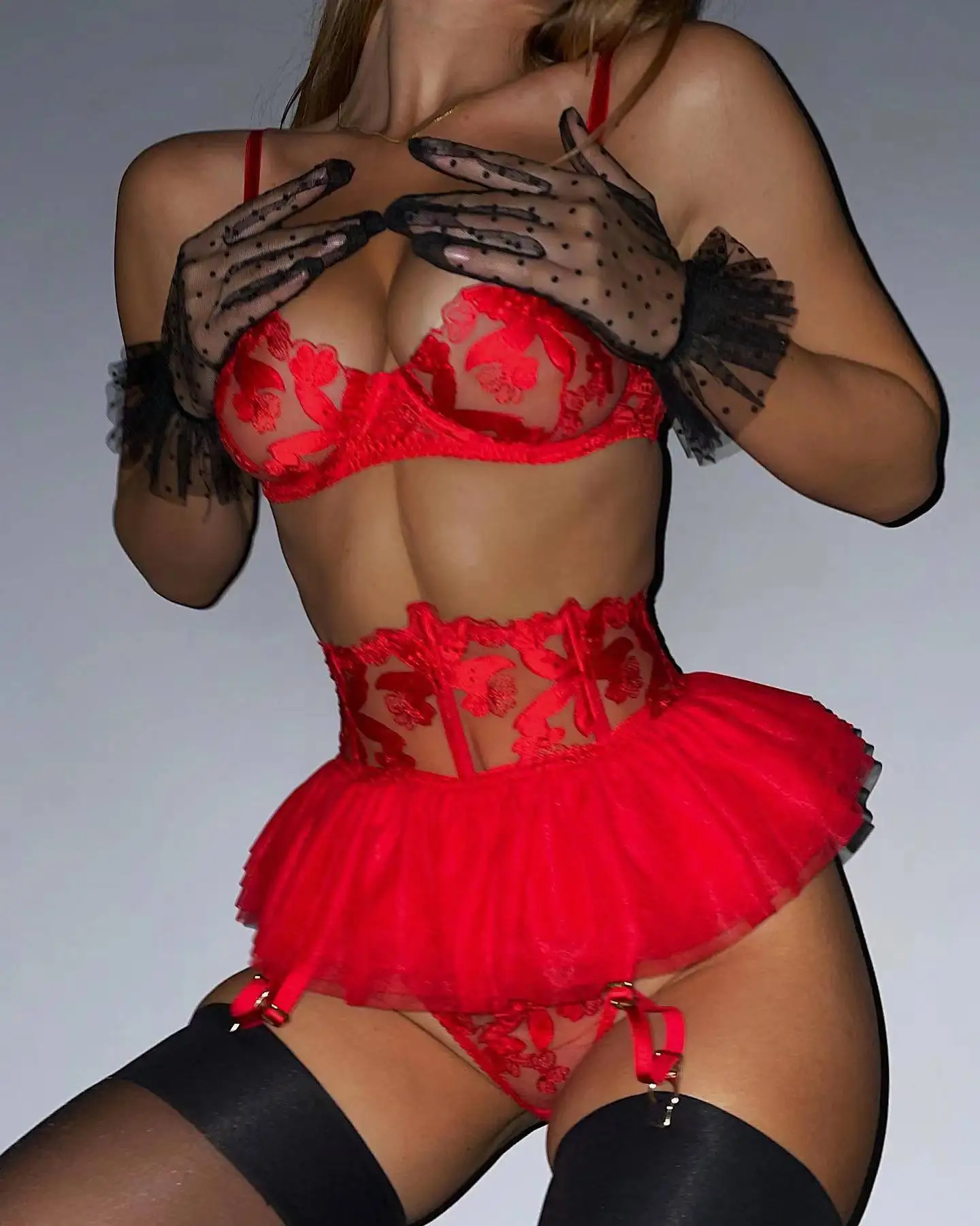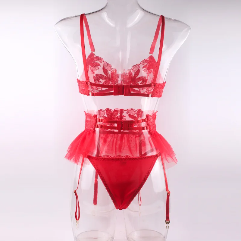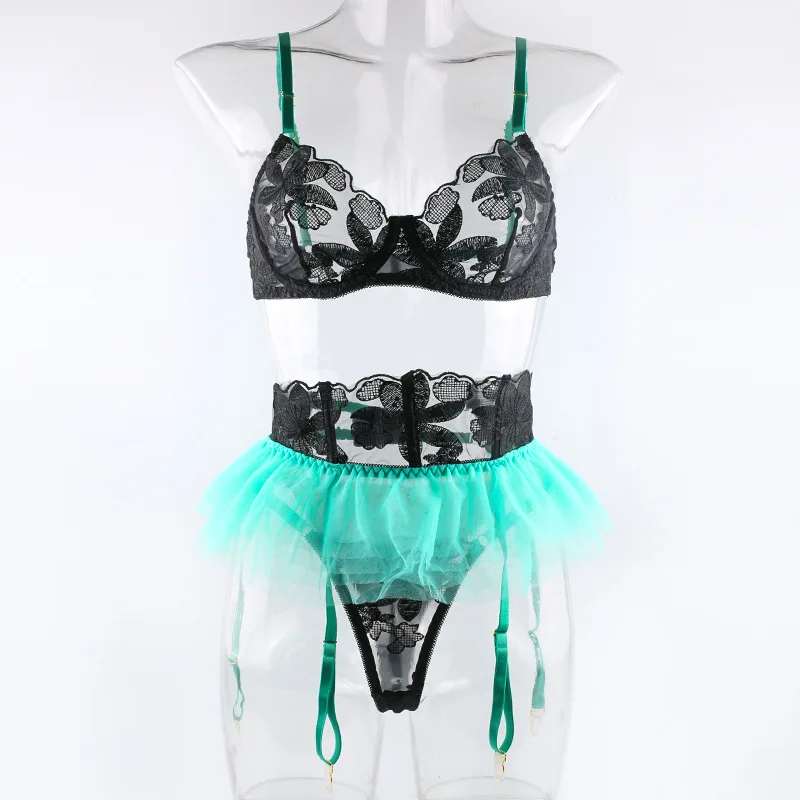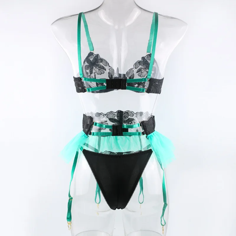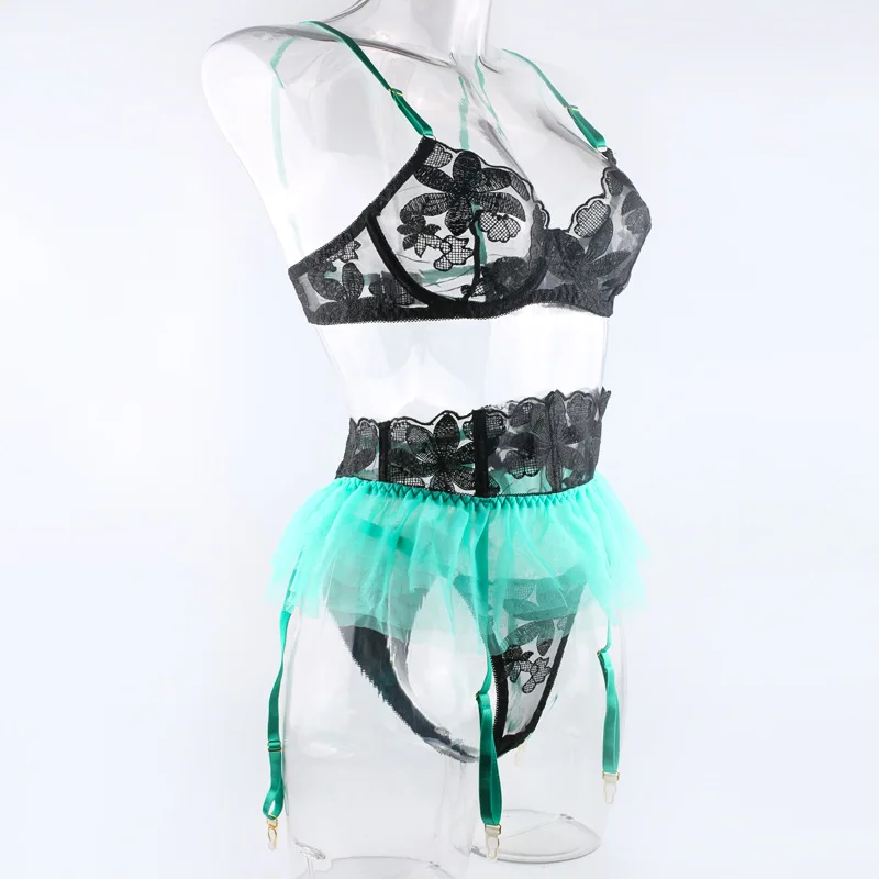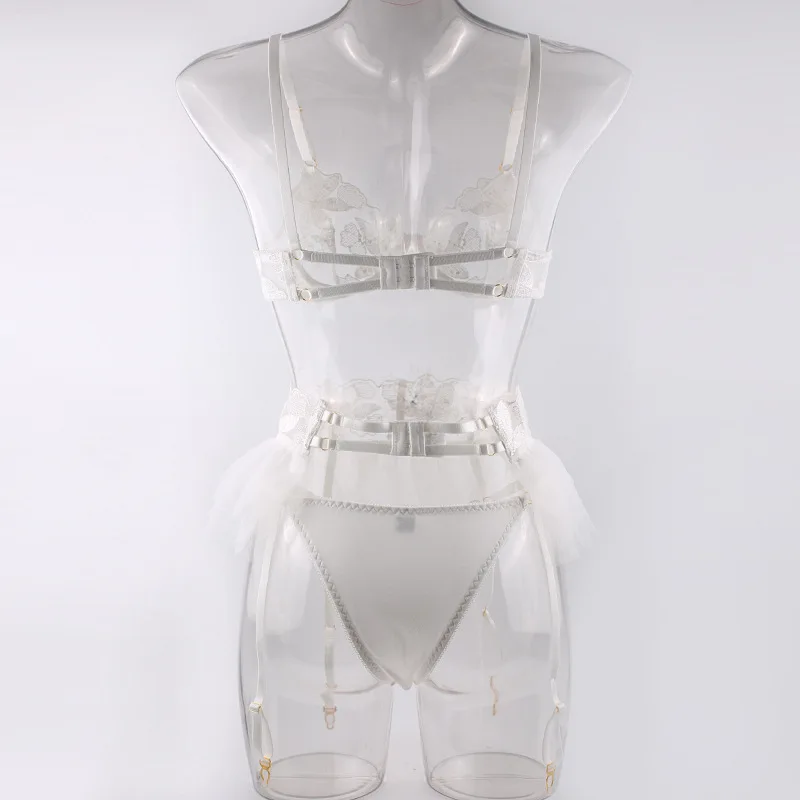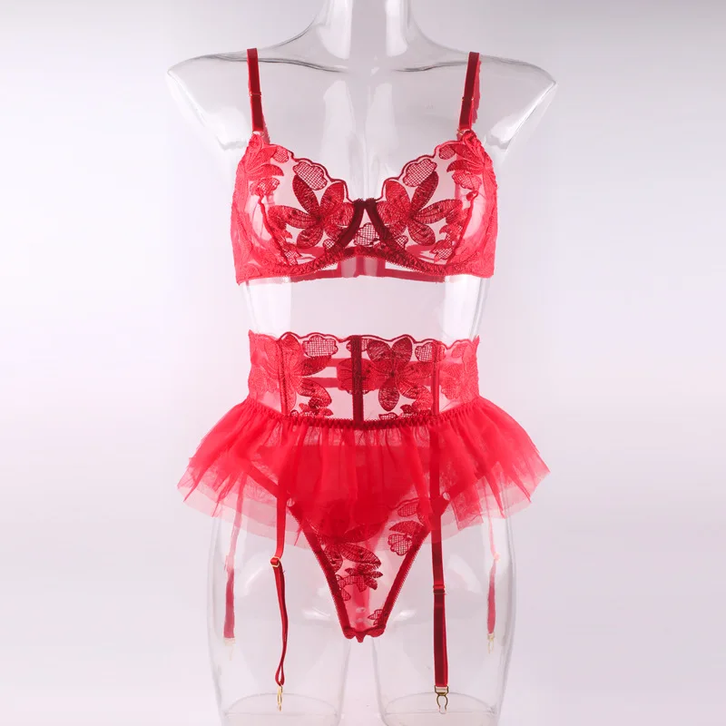 Diccvicc Luxury Lace Lingerie Set Floral Embroidery Transparent Bra Fancy Garters Women Sexy Underwear Erotic Intimate Outfits
