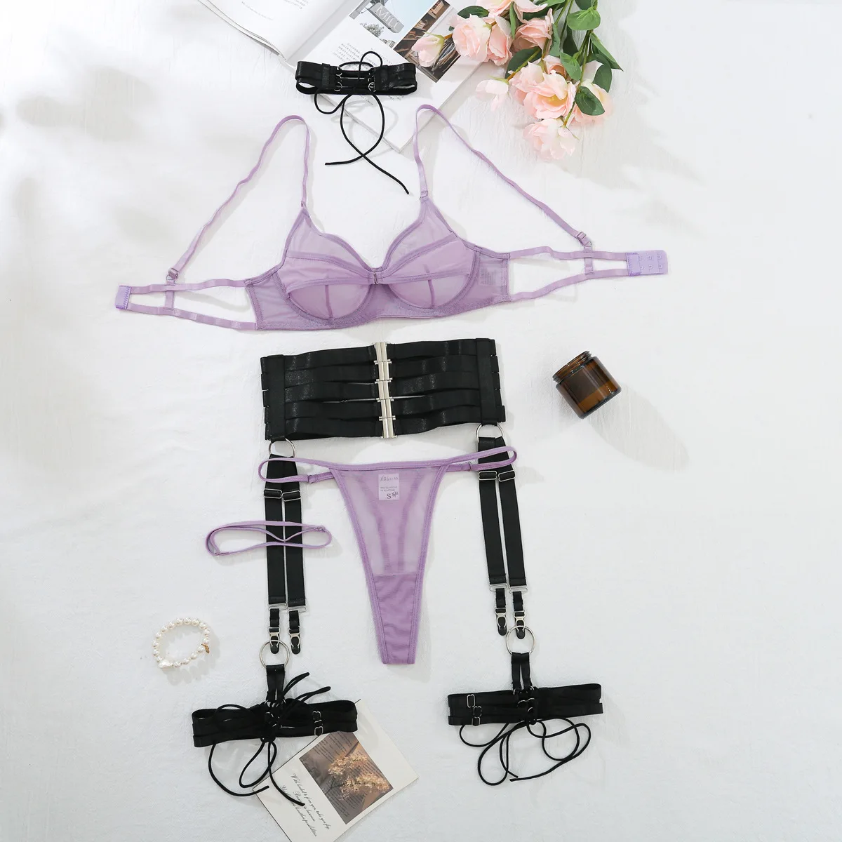Diccvicc Luxury Patchwork Lingerie Transparent Mesh Sexy Underwear Women Set Seductive Intimate Apparel Exotic Bra Garter Outfit