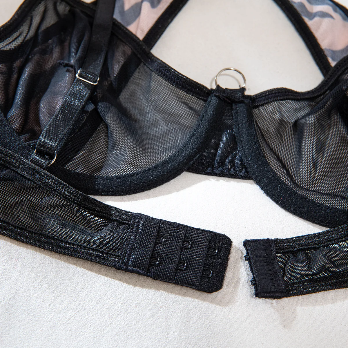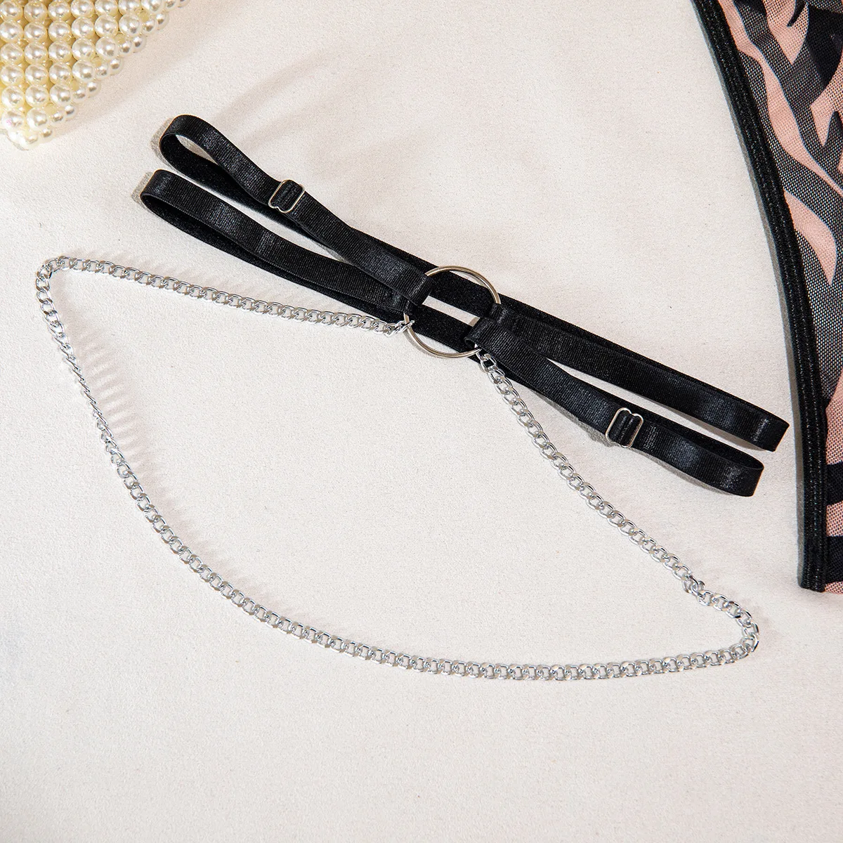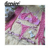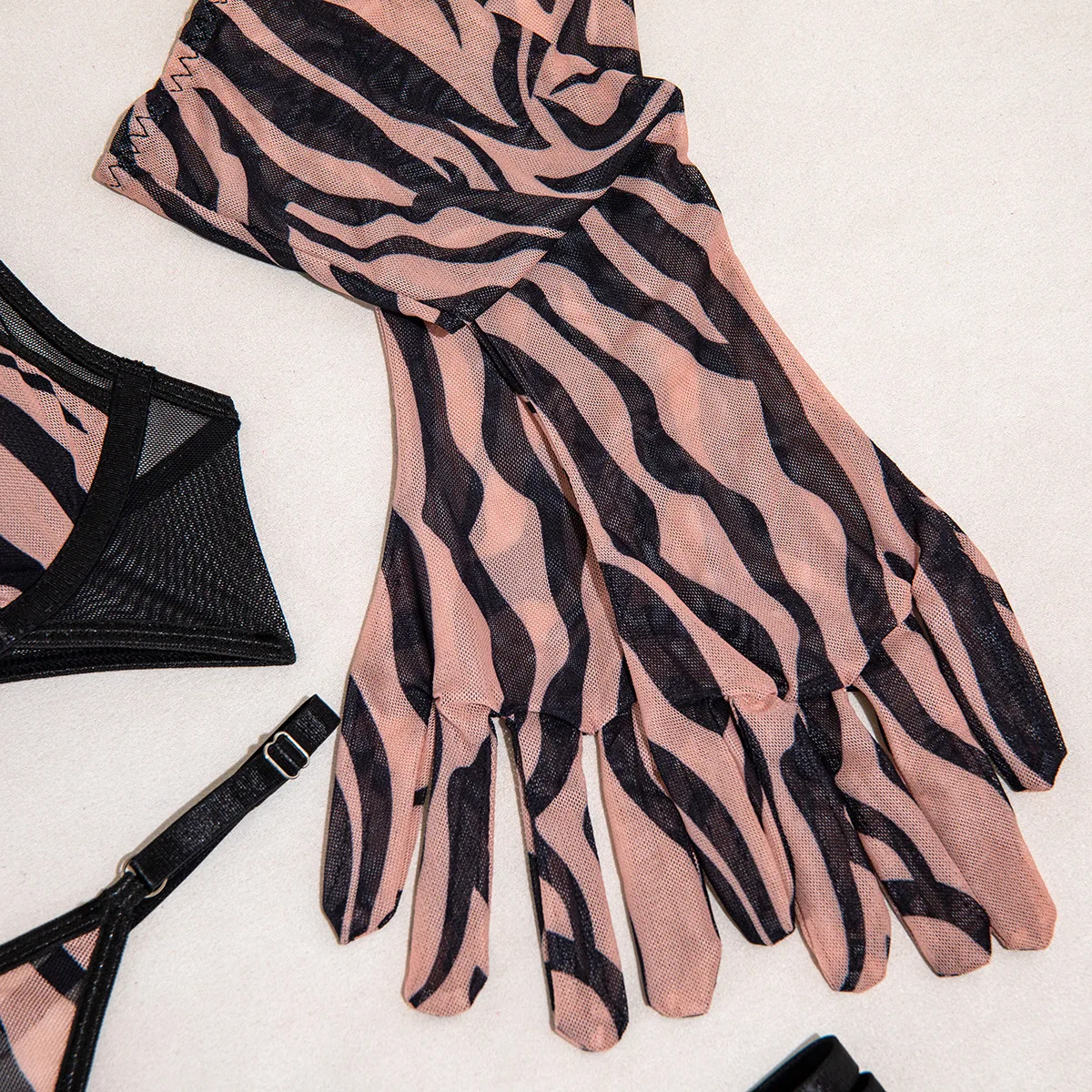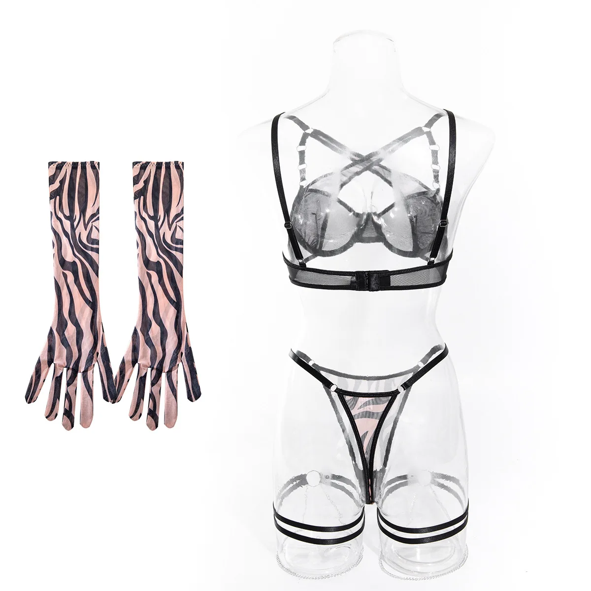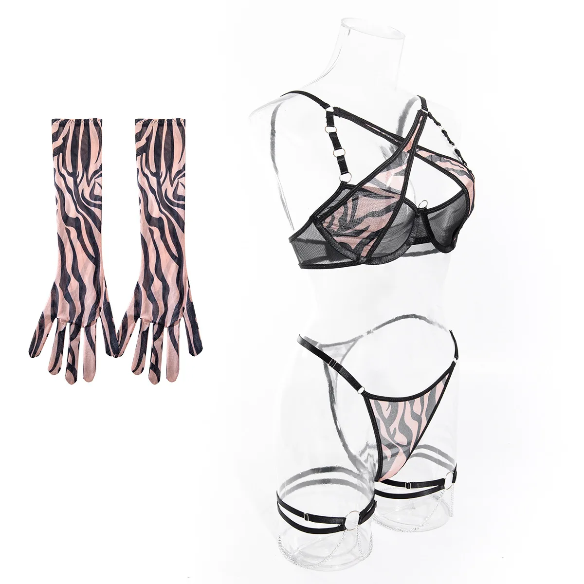 Diccvicc Pink Leopard Lingerie Cross Bandage Bra Briefs Set with Gloves See Through Women Underwear Sexy Outfit Exotic Costume