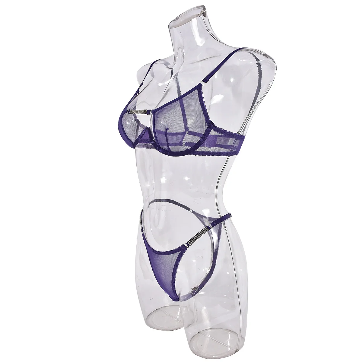 Diccvicc Rhinestone Lingerie 2 Pieces Cut Out Bra Panty Intimate Set Woman Extreme Sexy Underwear See Through Lace Erotic Outfit