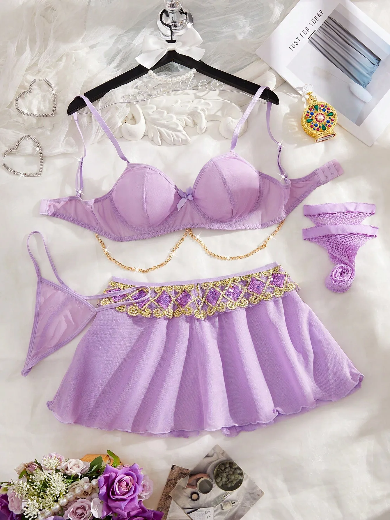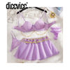 Diccvicc Ruffle Garter Lingerie with Metalic Chain Bowknot Cute Girl Complete Underwear Sexy Woman Set Exotic Intimate Apparel