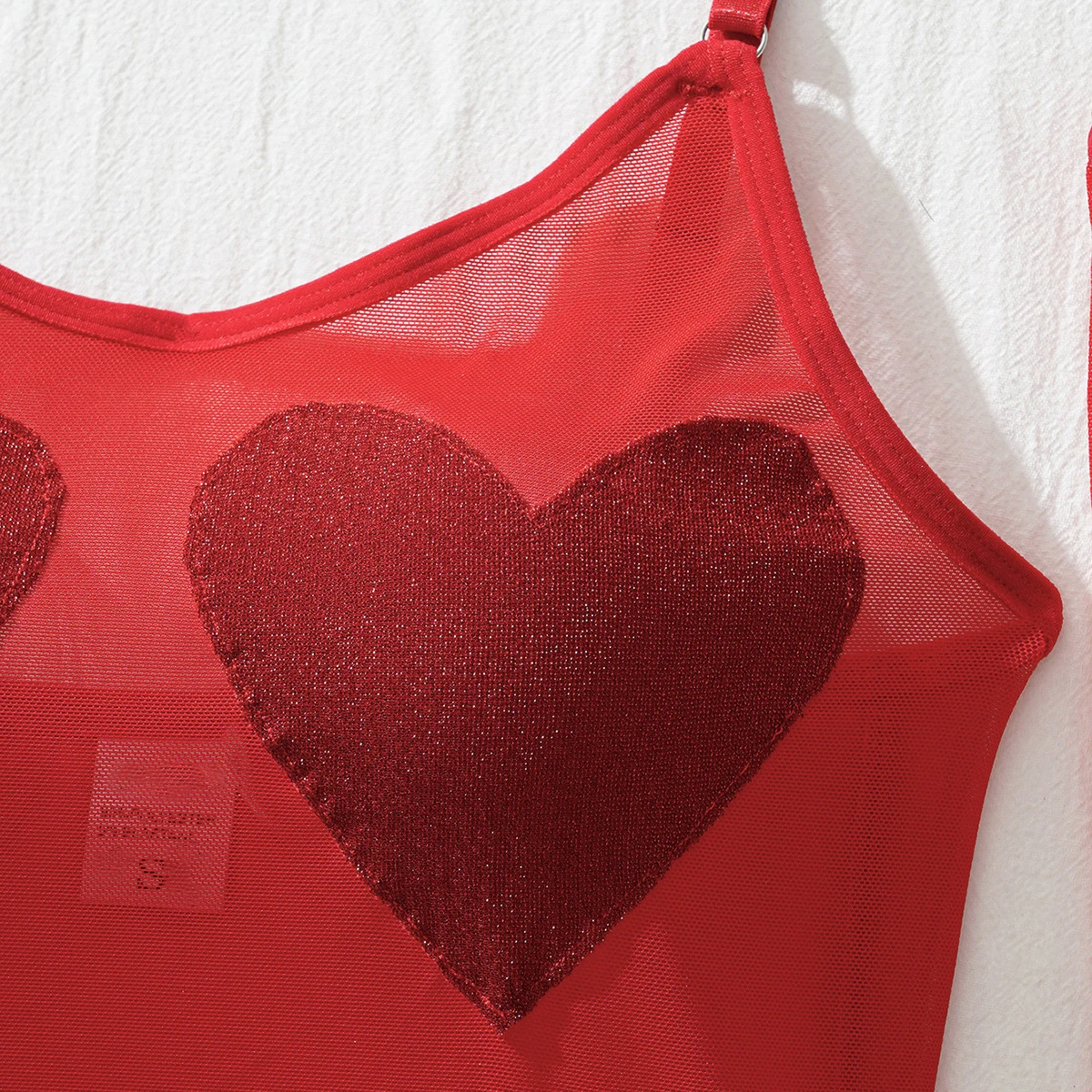 Diccvicc Seductive Bodysuit with Gloves Flocking Love Heart Sexy Tops Body Lingerie Fine Woman One Piece Exotic Intimate Apparel