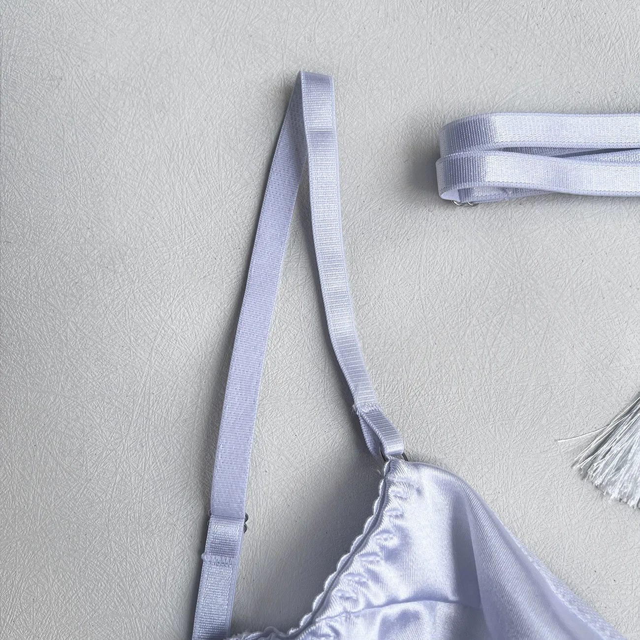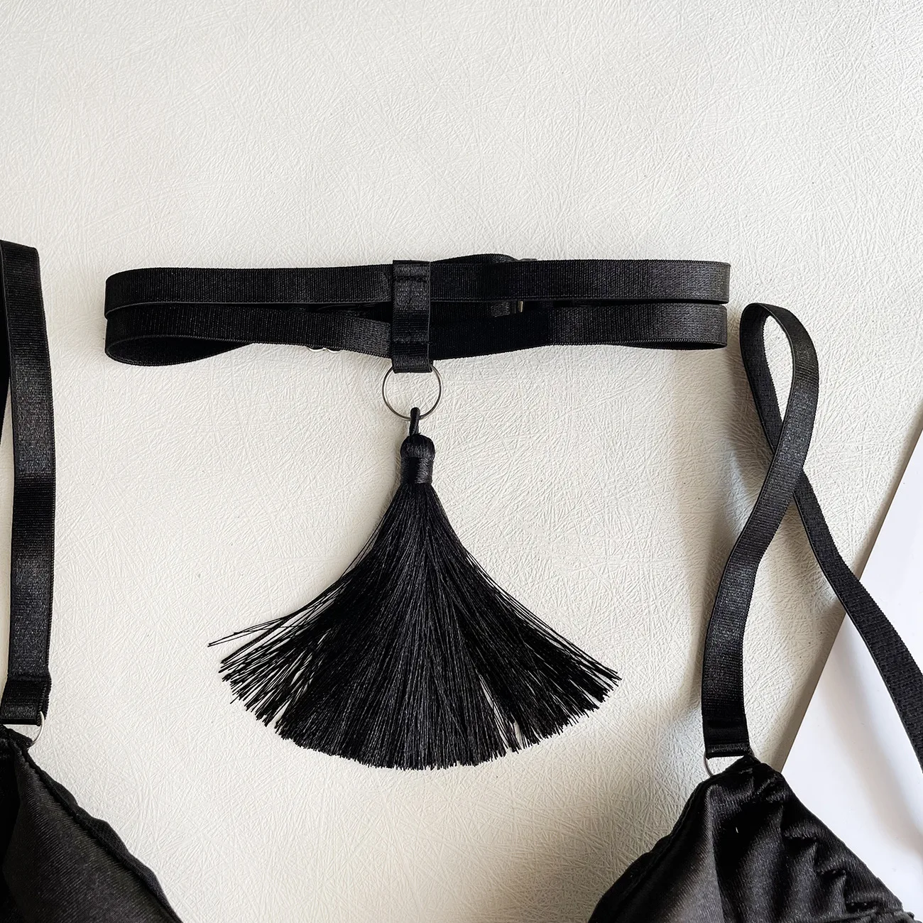 Diccvicc Sensual Lingerie with Tassel Solid Satin Lace Bra Thong Set Women Sexy Underwear Uncensored Exotic Skirt Fancy Outfits