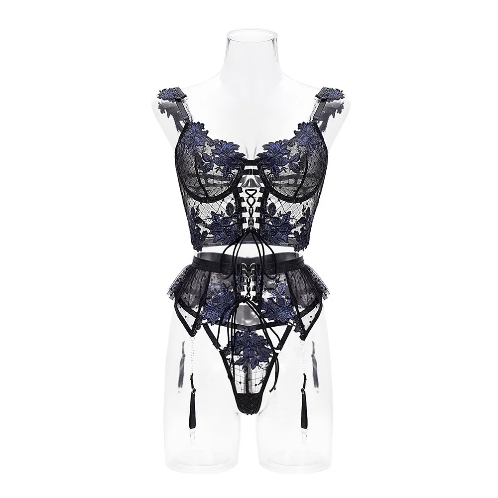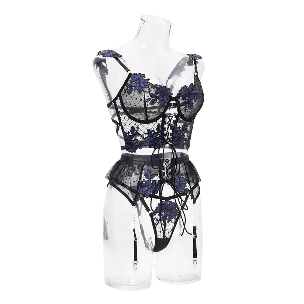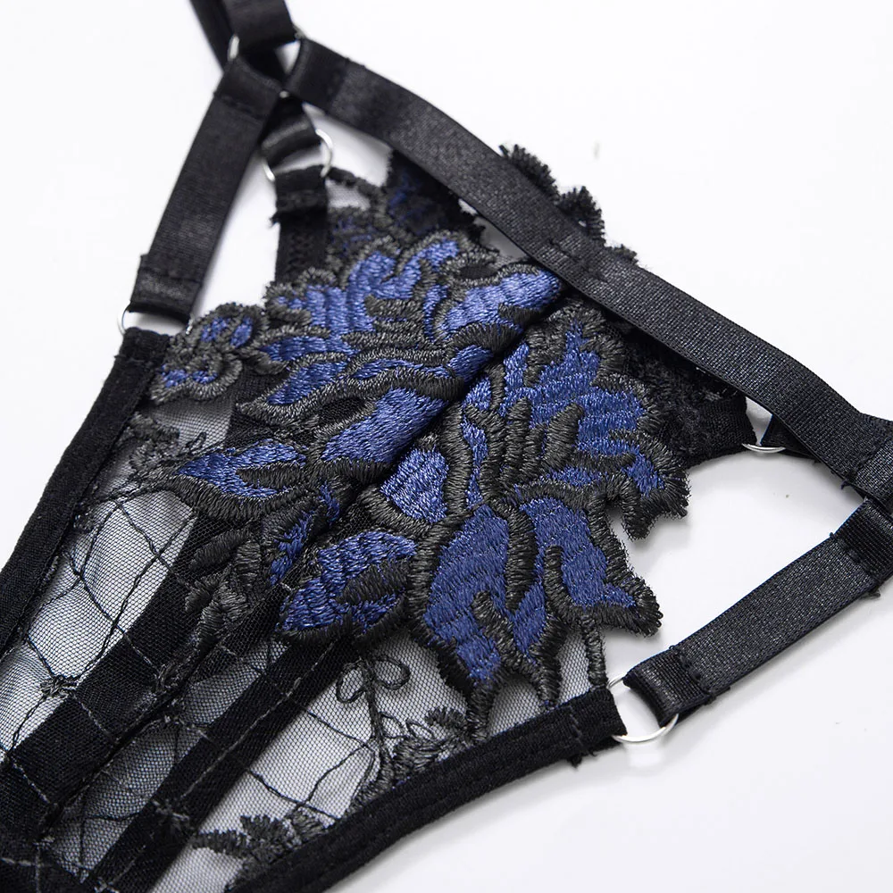 Diccvicc Sensual Lingerie Women Floral Embroidery Luxury Lace Bra Ruffle Garter See Through Feminine Underwear Sexy Exotic Set