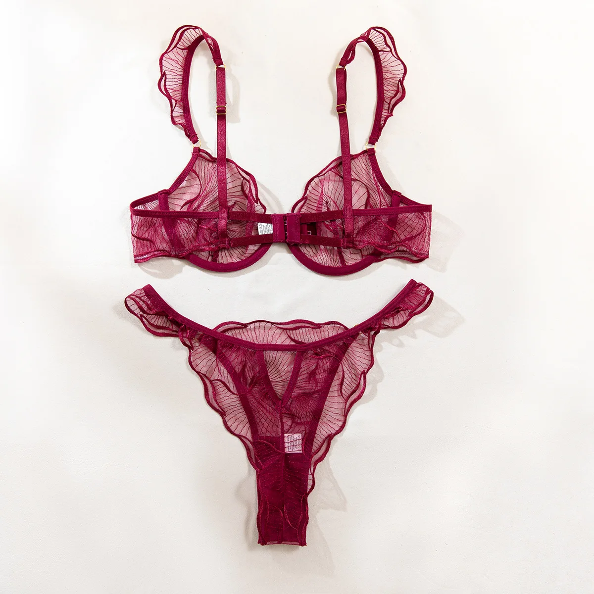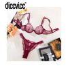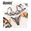 Diccvicc Sexy Bra 2 Pieces Leaf Inspired Lace Pattern Sheer Mesh Low Rise Panty Women Underwear Set See Through Daring Lingerie