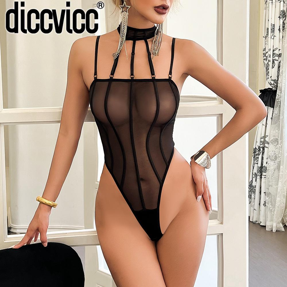 Diccvicc Sexy Clothes for Women Cut Out Bodysuit Sleeveless Ultra-Thin Party Body Suit Erotic Lingerie with Gloves Fancy Wear