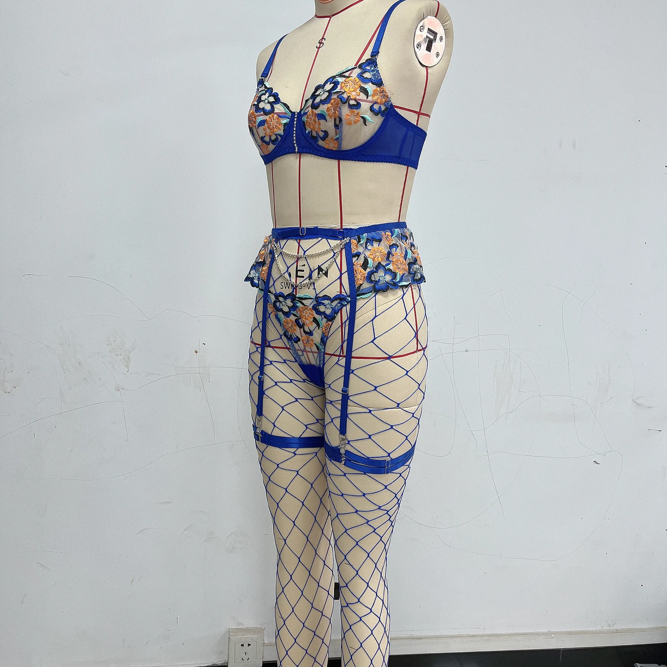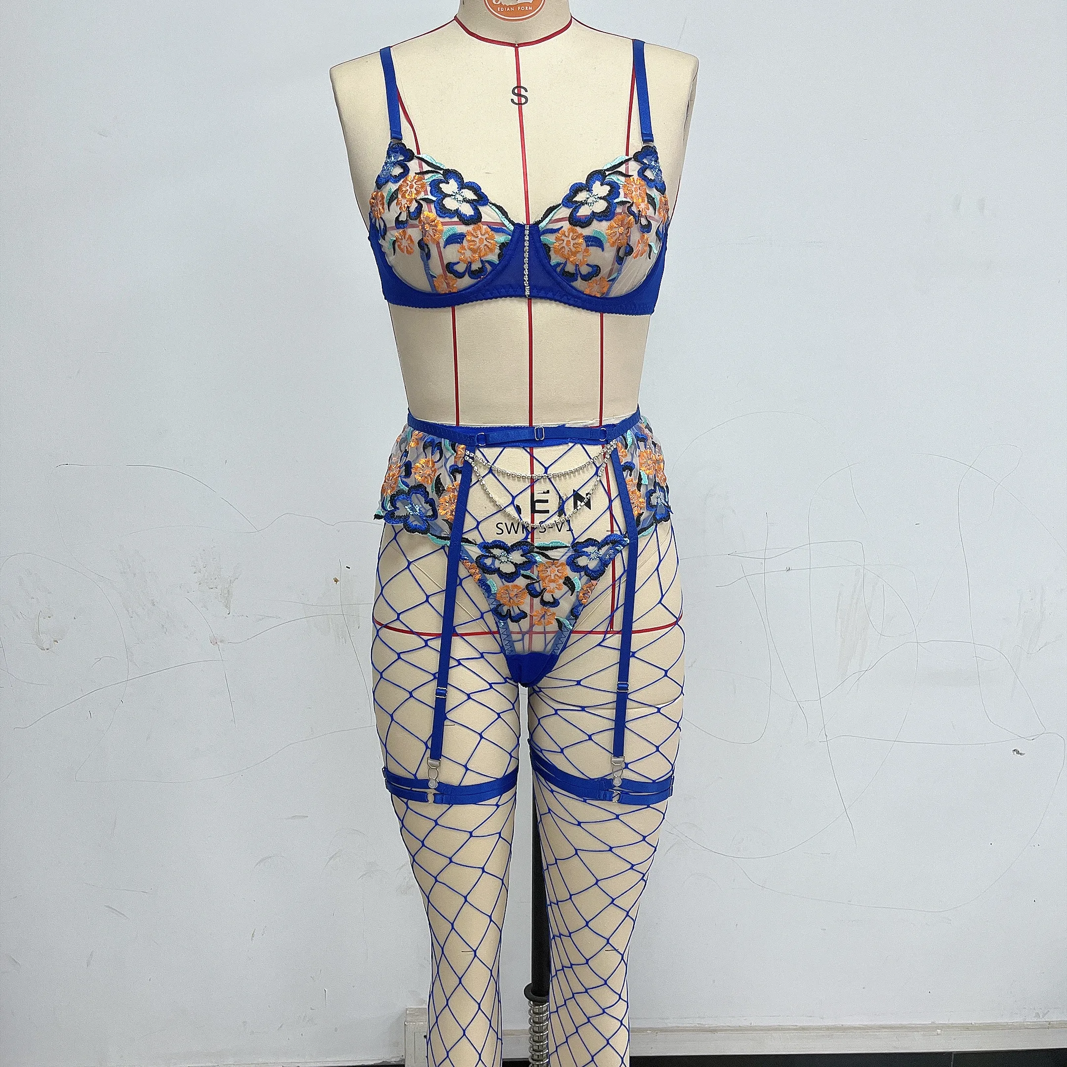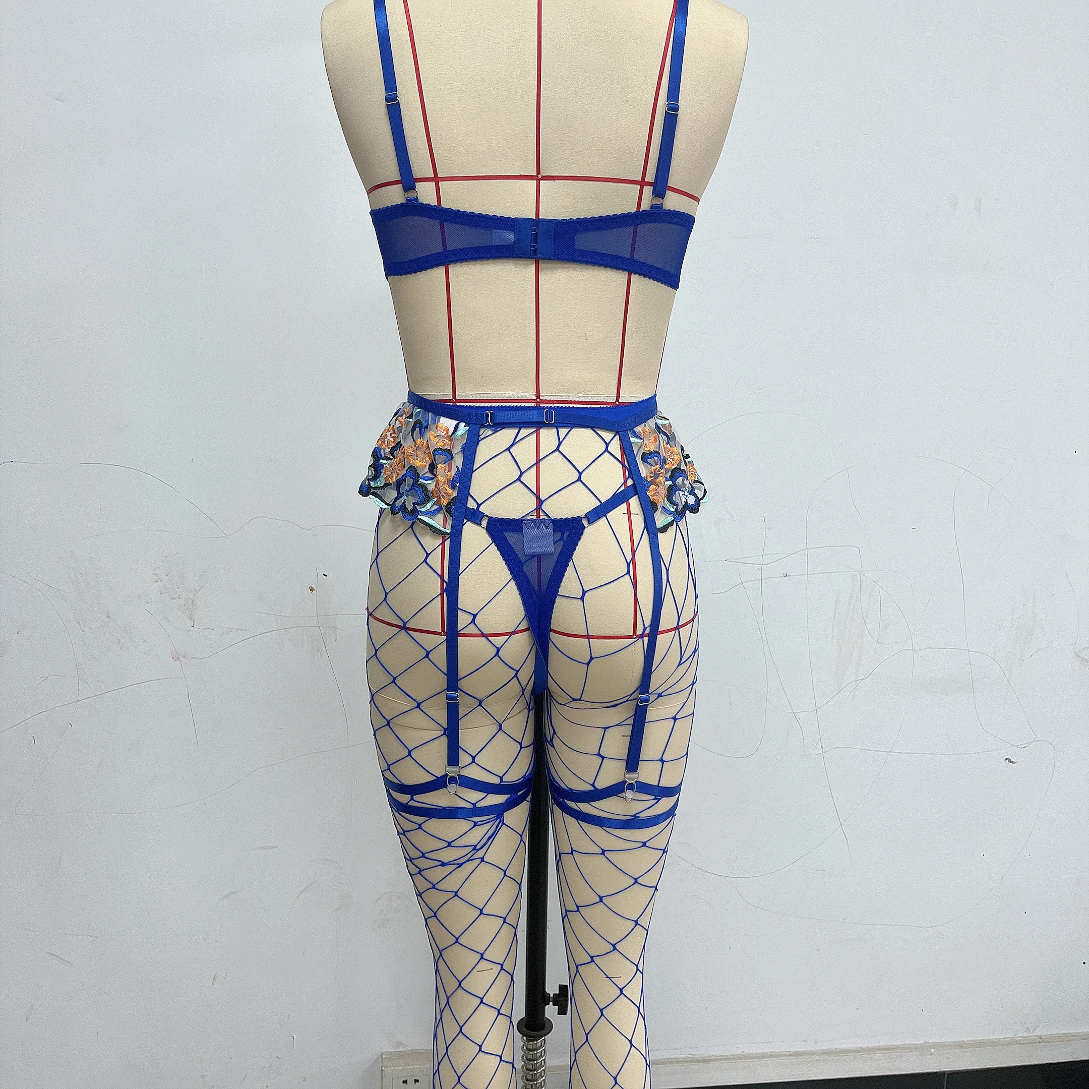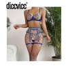 Diccvicc Sexy Costume Embroidery Floral Lace Bra Garter Thong Set with Stocking See Through Women Underwear Fine Exotic Outfit