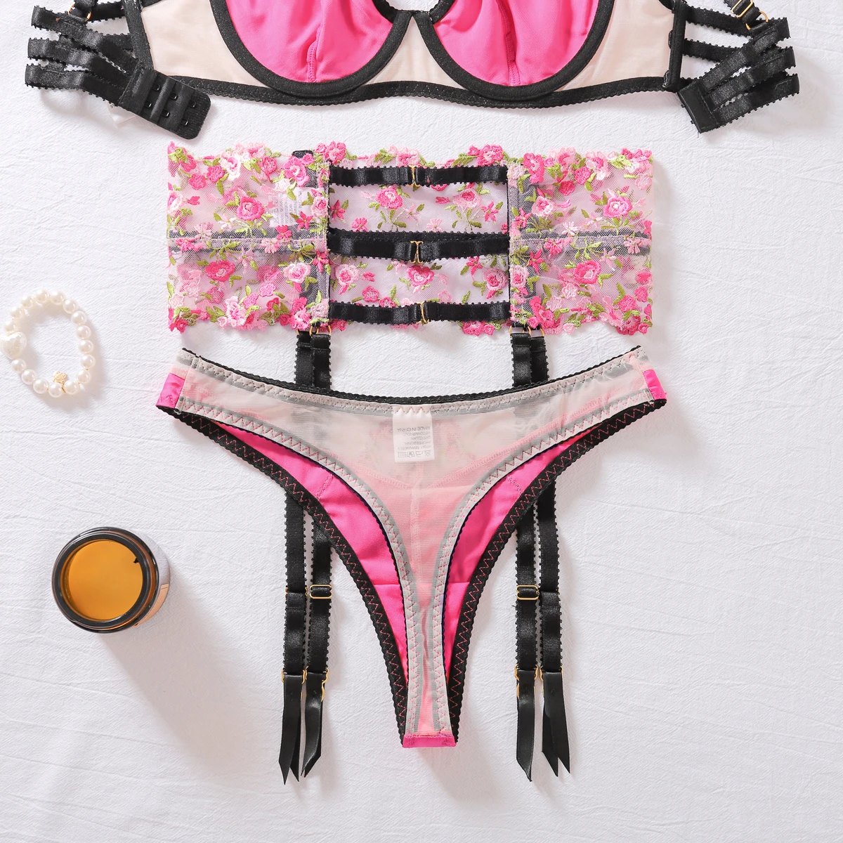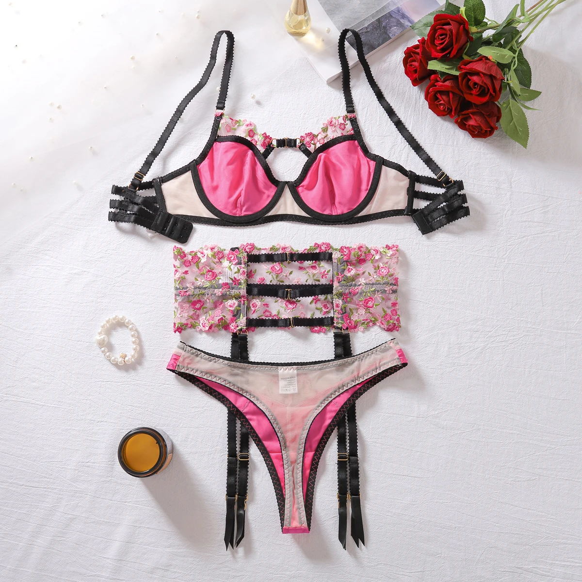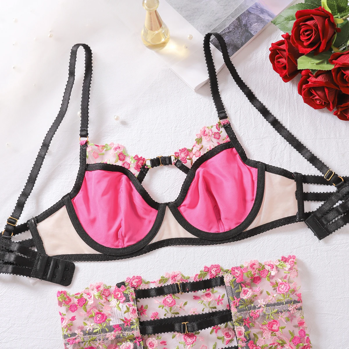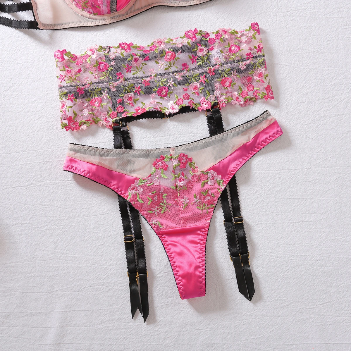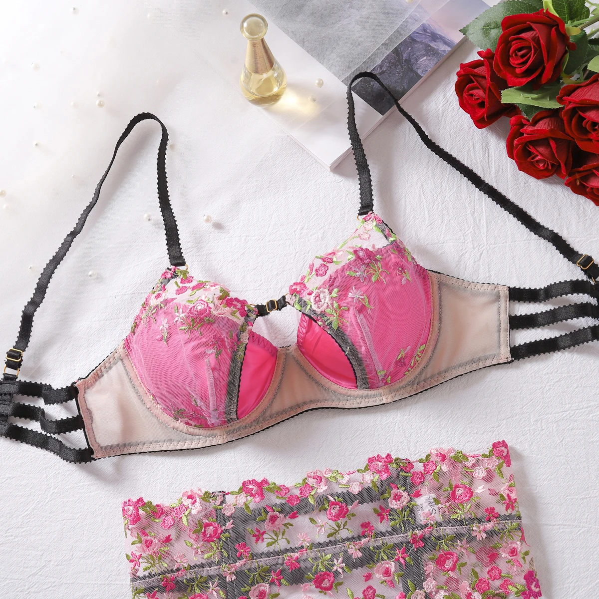 Diccvicc Sexy Dresses Woman Sheer Embroidery Lace Garter Lingerie Fancy Bra Panty Set Luxury Intimate Underwear Exotic Apparel
