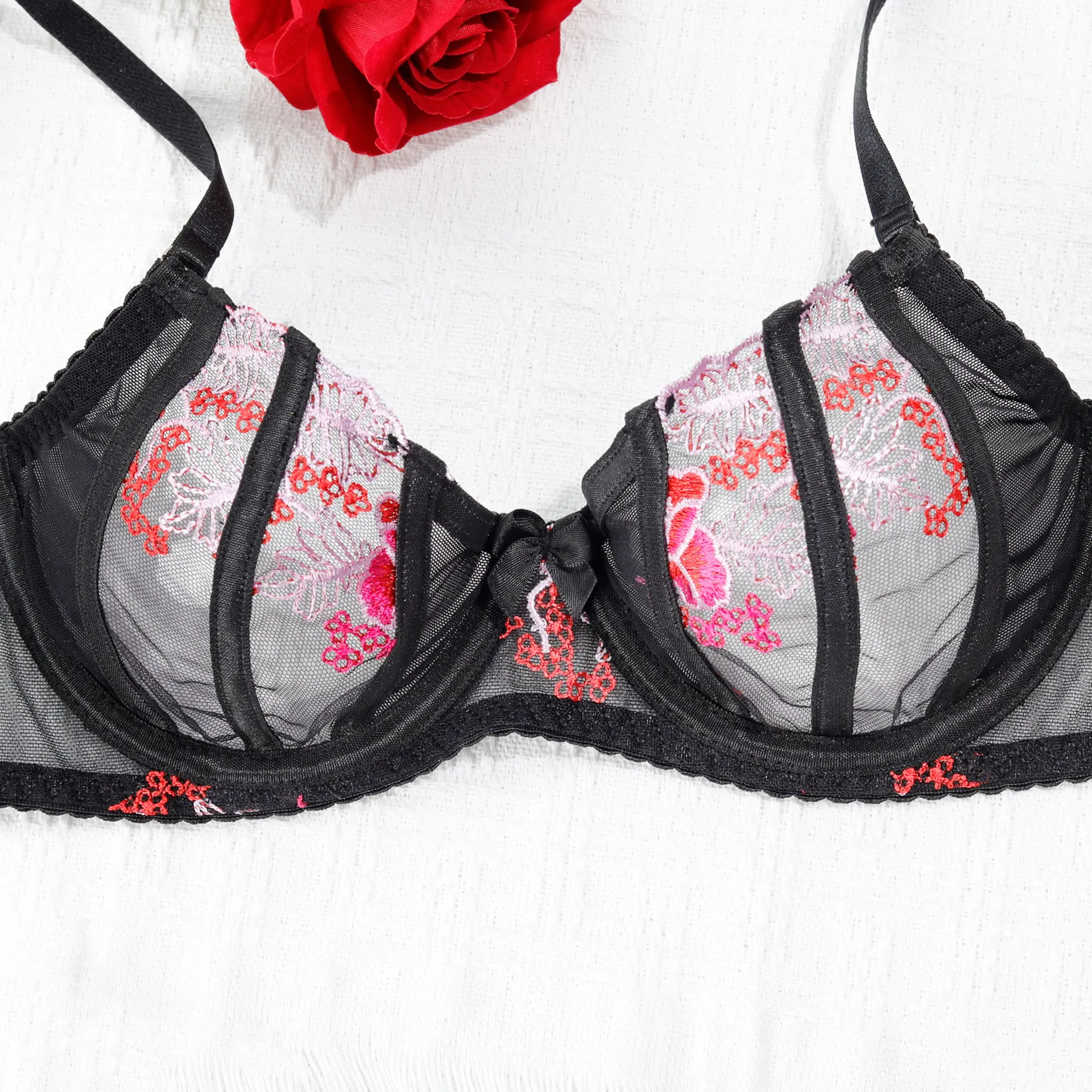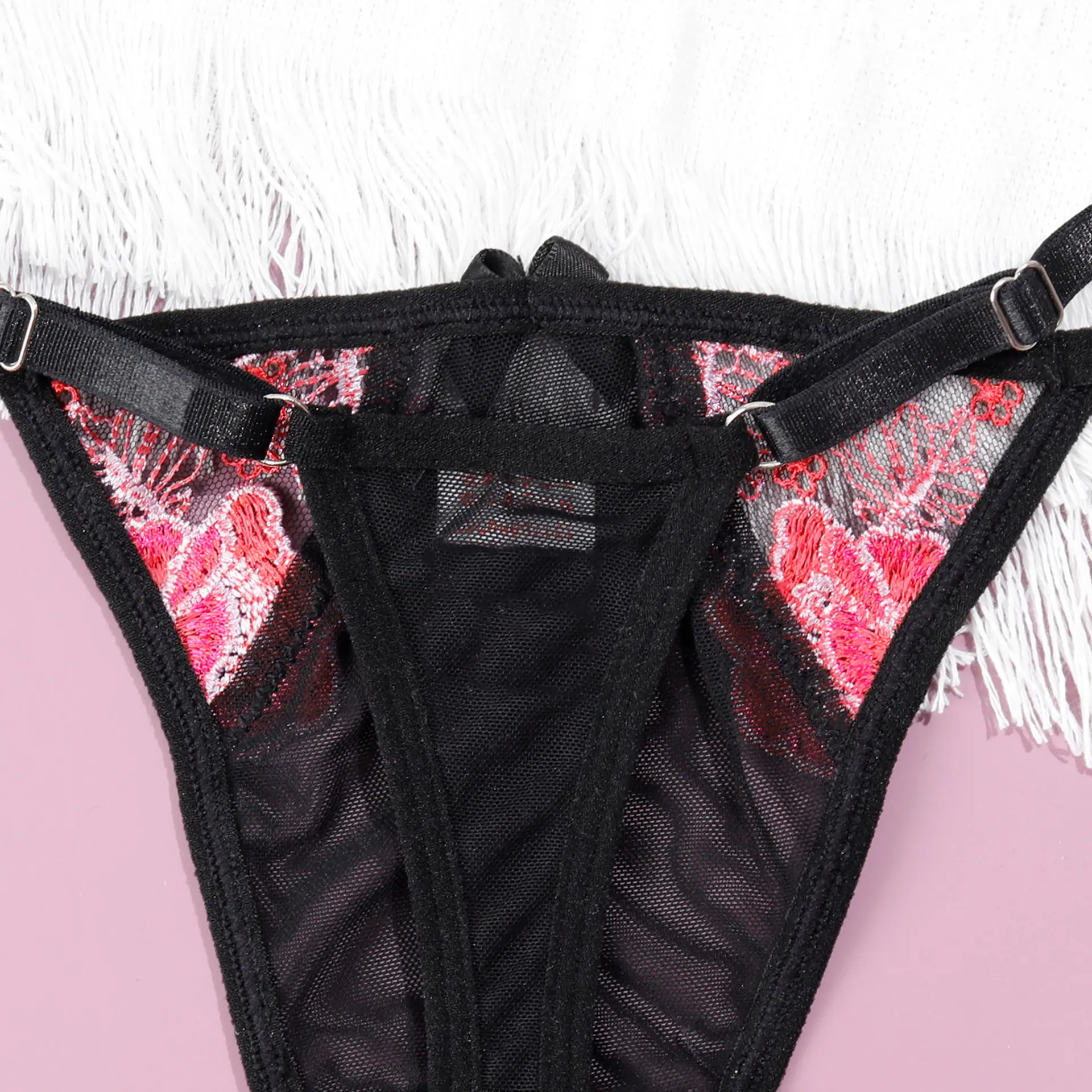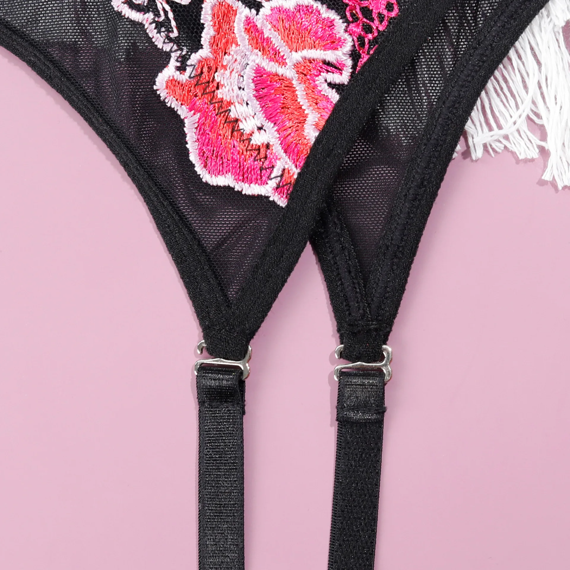 Diccvicc Sexy Female Lingerie with Chain Embroidery Floral Lace Bra Panty Set Garter Belt Woman Fancy Underwear Hot Intimate Set