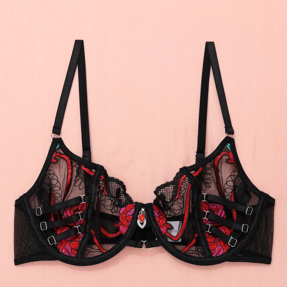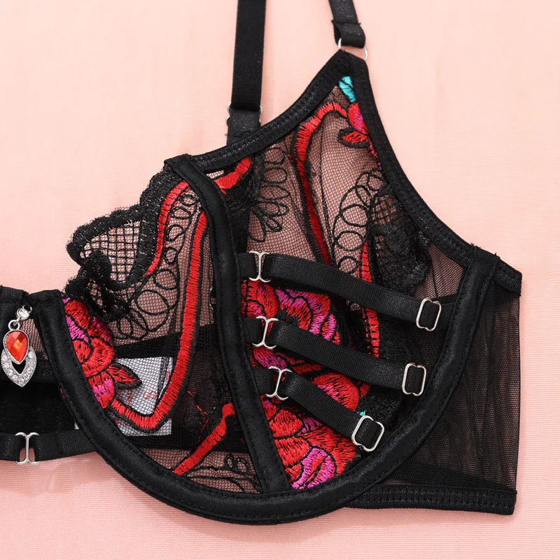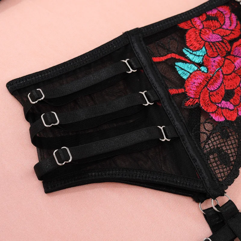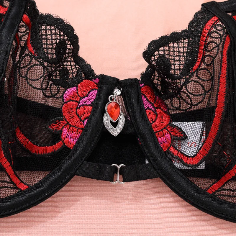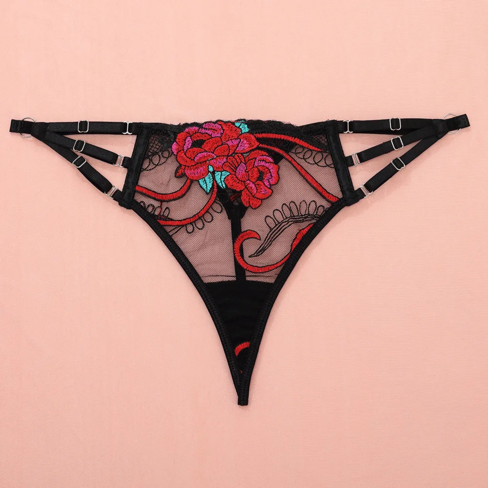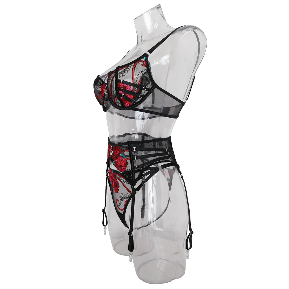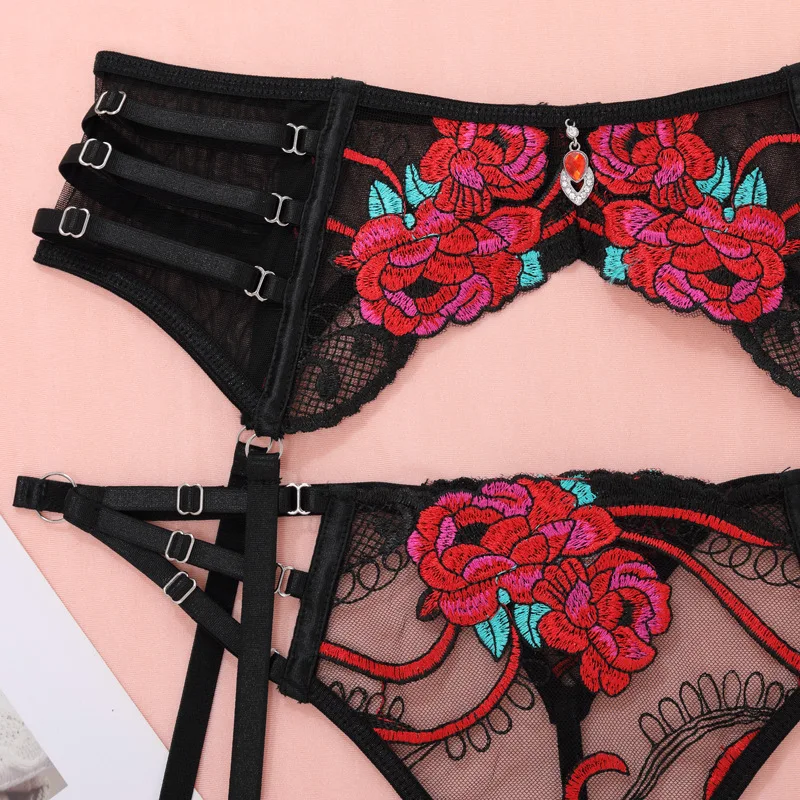 Diccvicc Sexy Lingerie Rose Floral Embroidery See Through Lace Underwear Fine Women Set 3 Pieces Exotic Costume Intimate Outfits