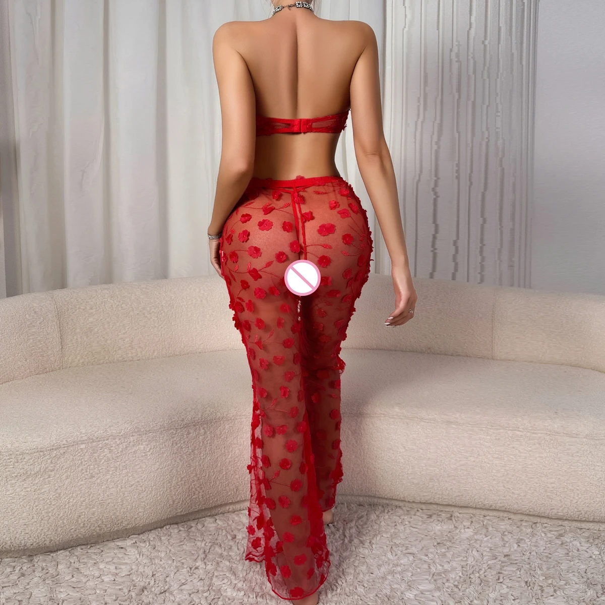 Diccvicc Sexy Lingerie See Through Floral Lace Tube Tops Panty Set Romantic Intimate Costume Fancy Woman Underwear Erotic Outfit