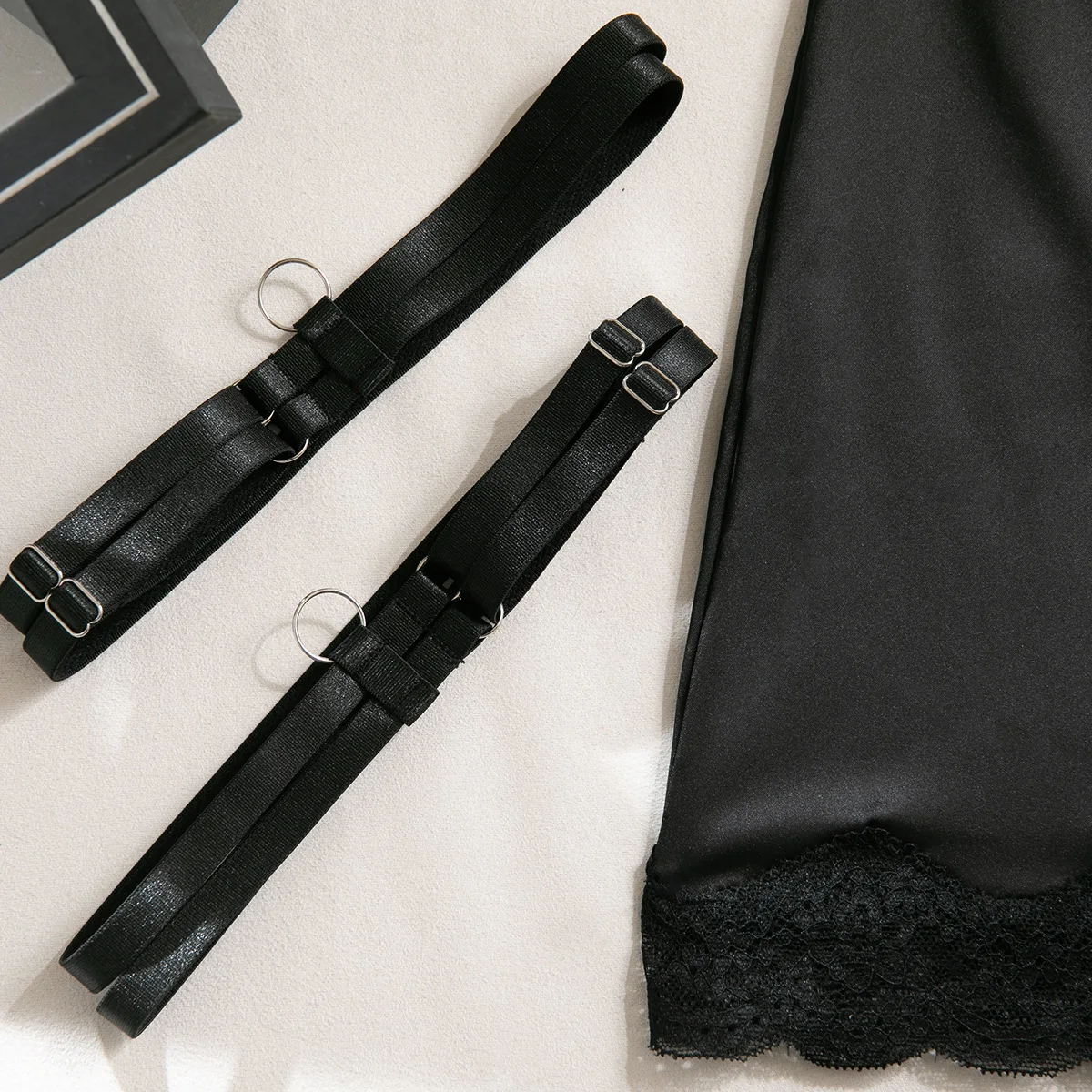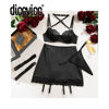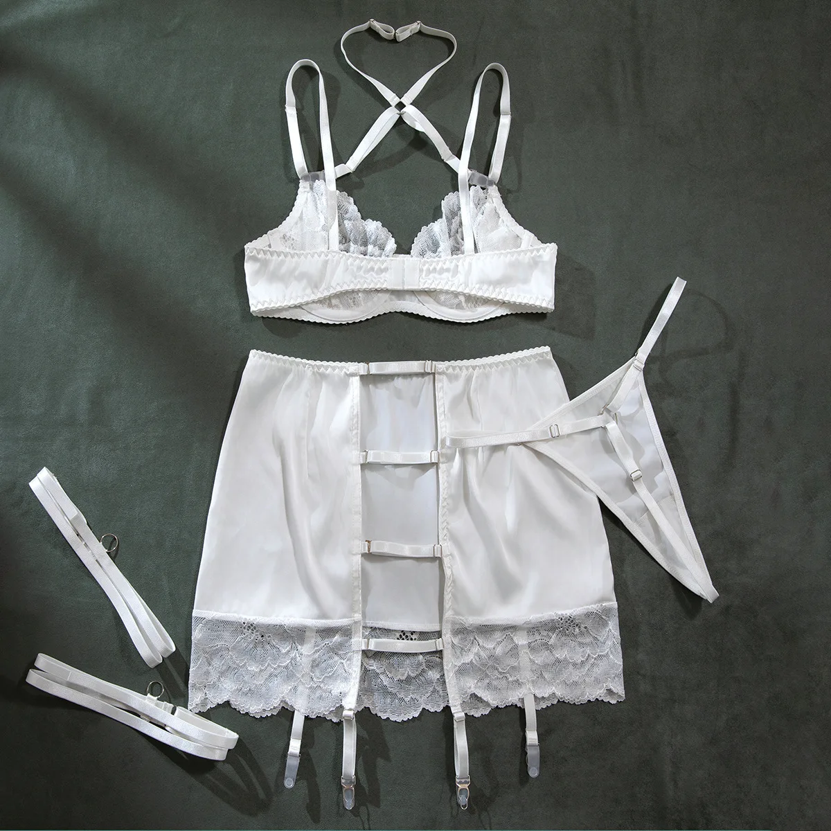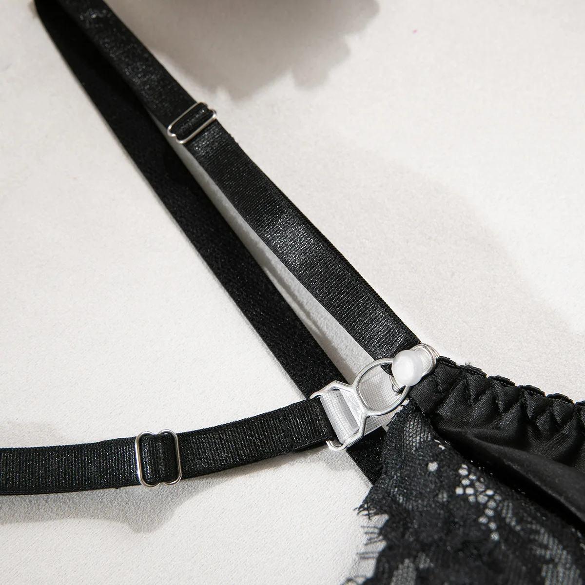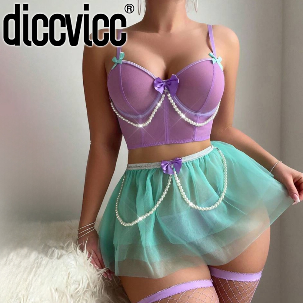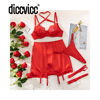Diccvicc Sexy Lingerie Set Criss Cross Front Band Lace Bra Daring Open Back Skirt with Interlaced Linear Straps Women Underwear