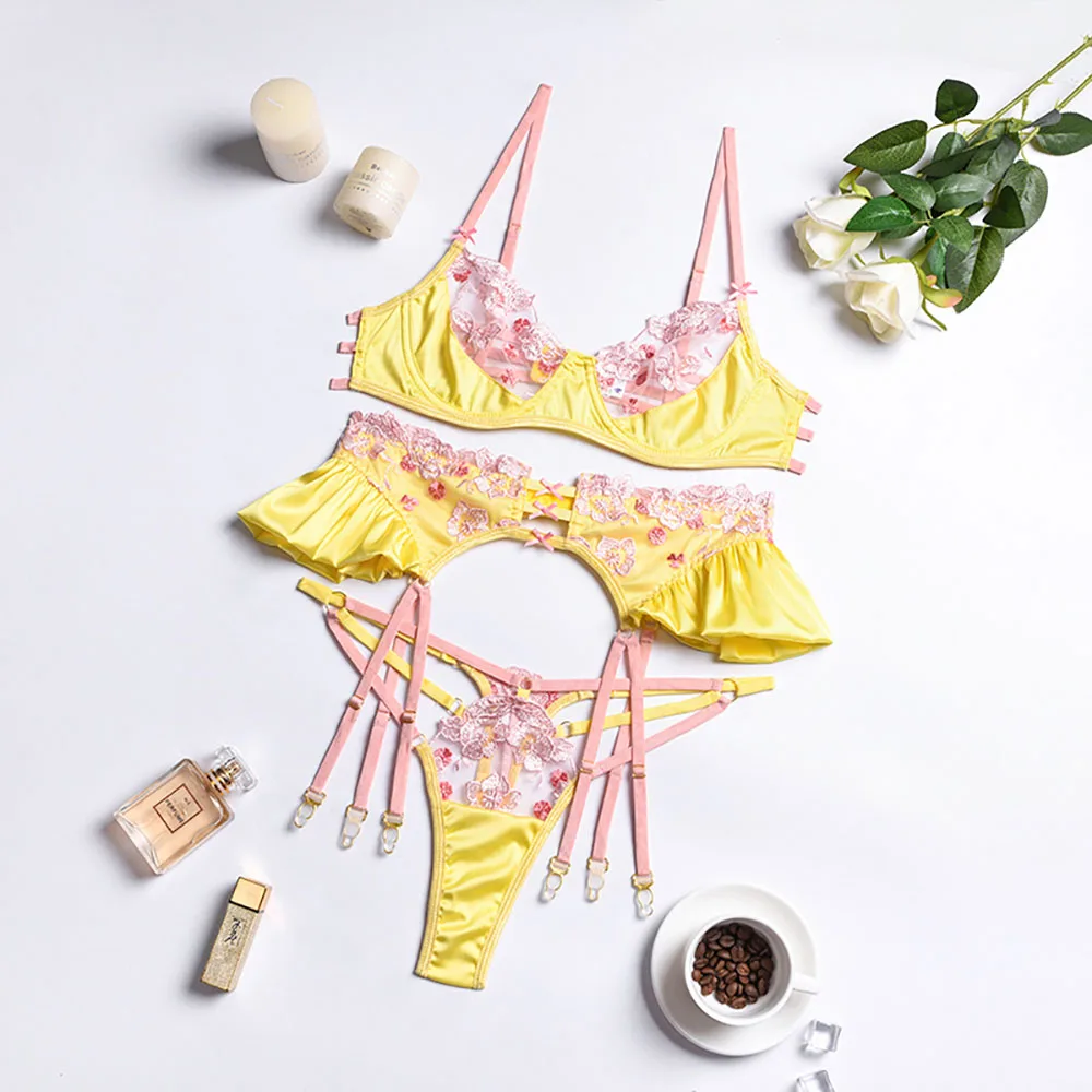 Diccvicc Sexy Lingerie Underwear Women Hot Erotic Push Up Lace Bra Thong Transparent Floral Embroidery Brief Sets Female Clothes