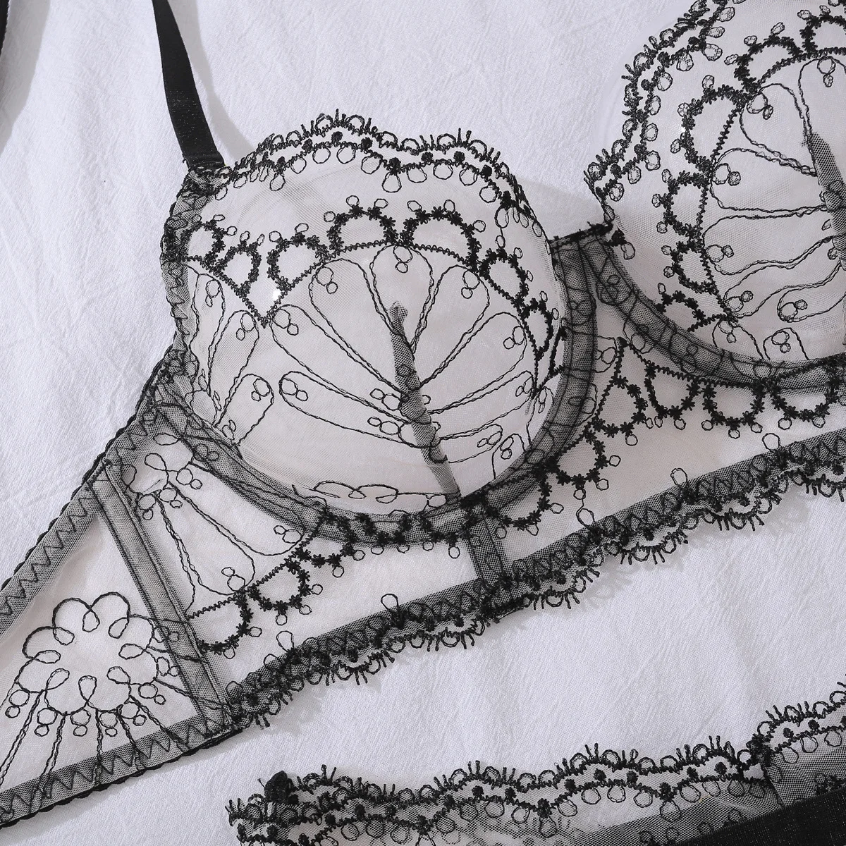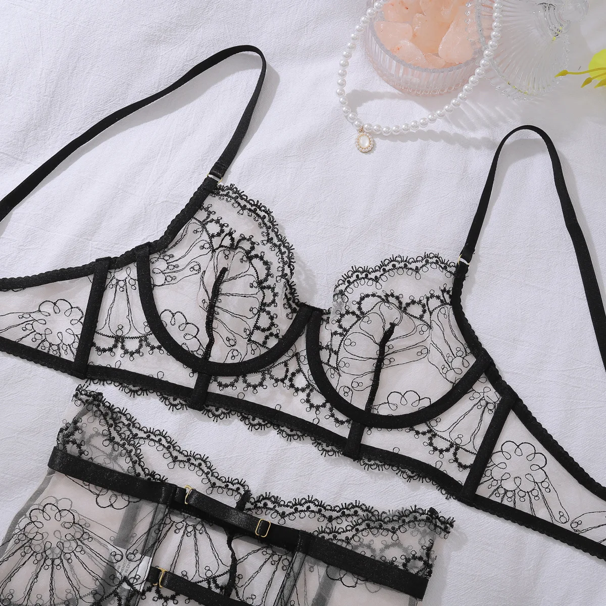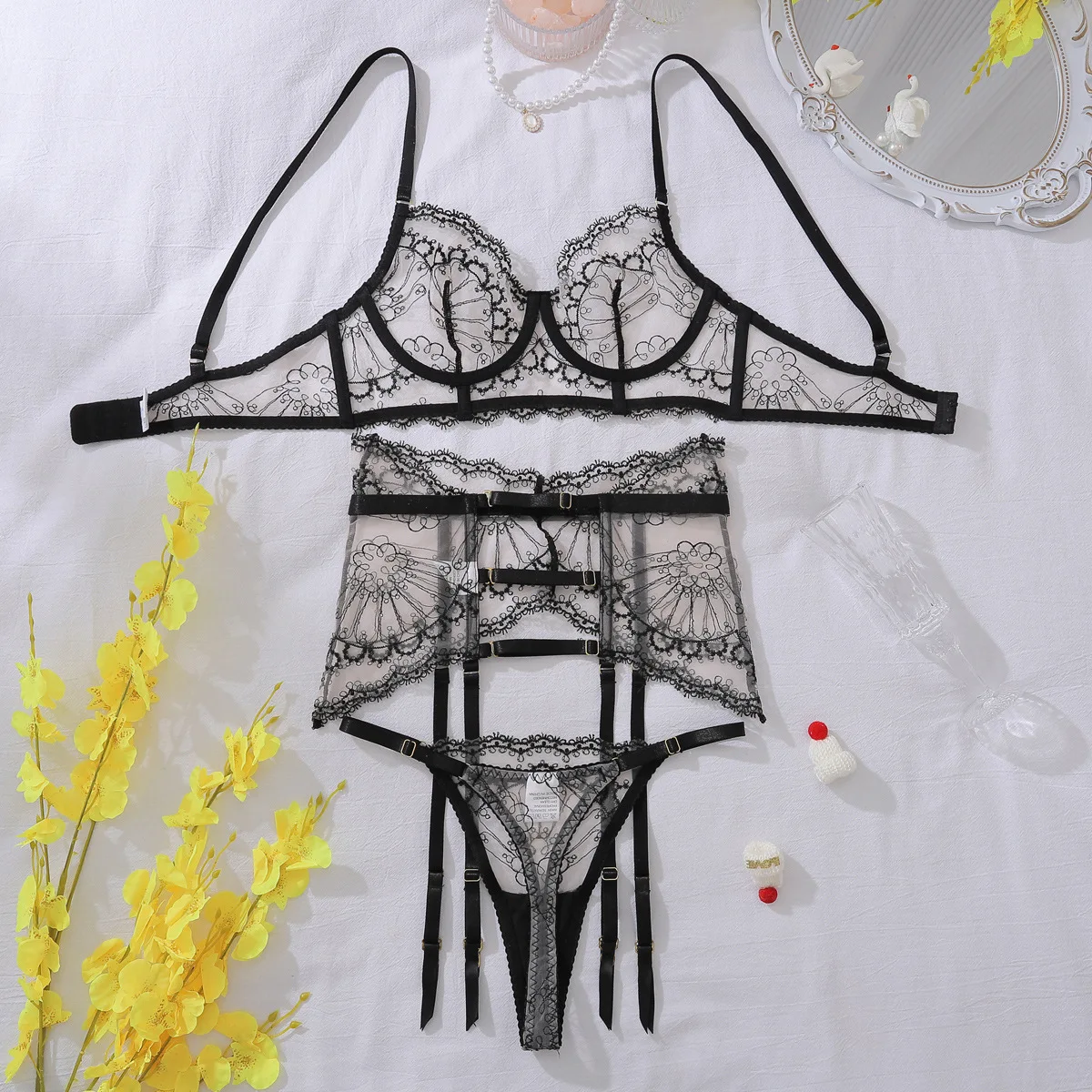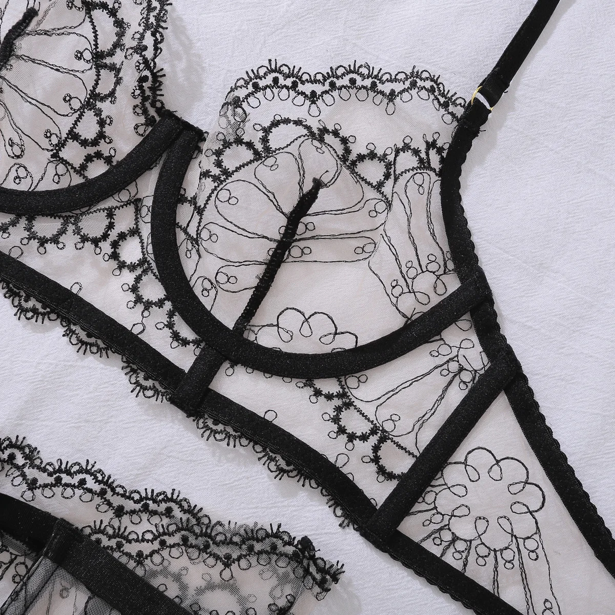 Diccvicc Sheer Lace Lingerie See Through Bra Briefs Set Ruffle Garter Belt Women Romantic Underwear Sexy Outfits Exotic Clothing