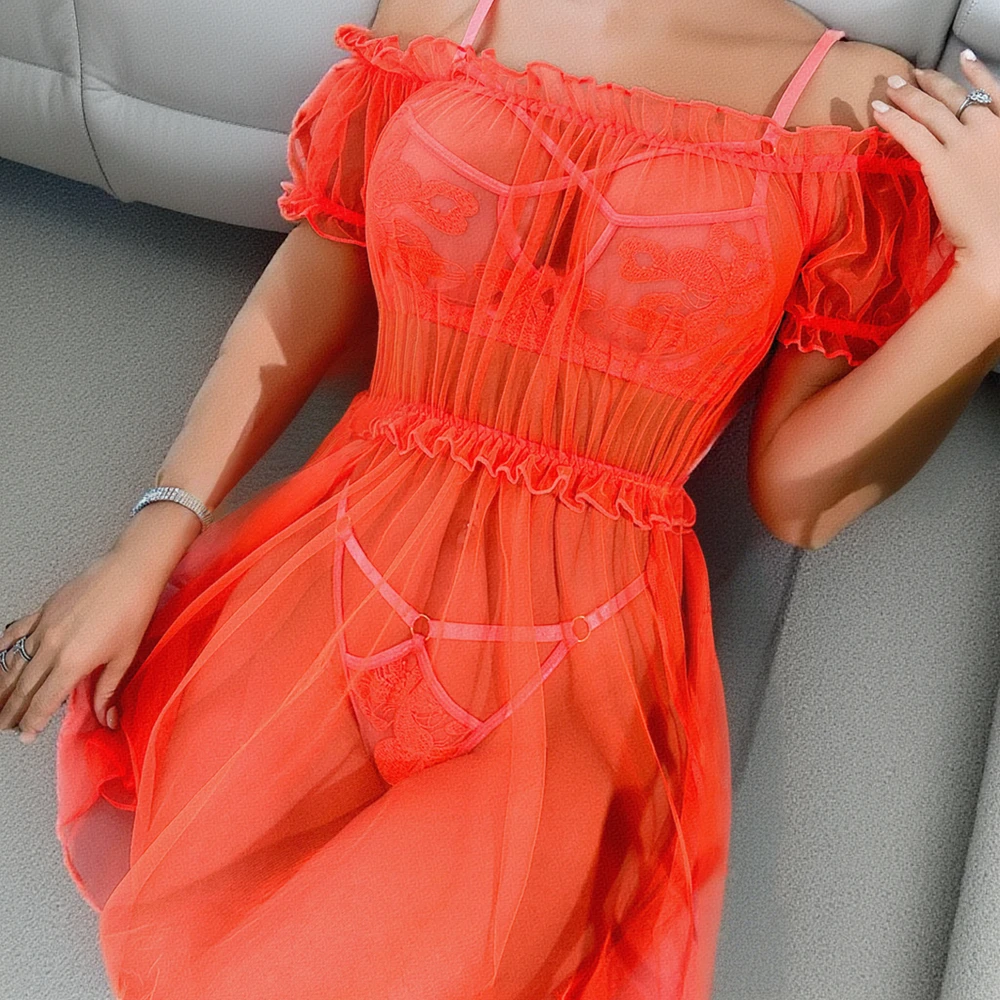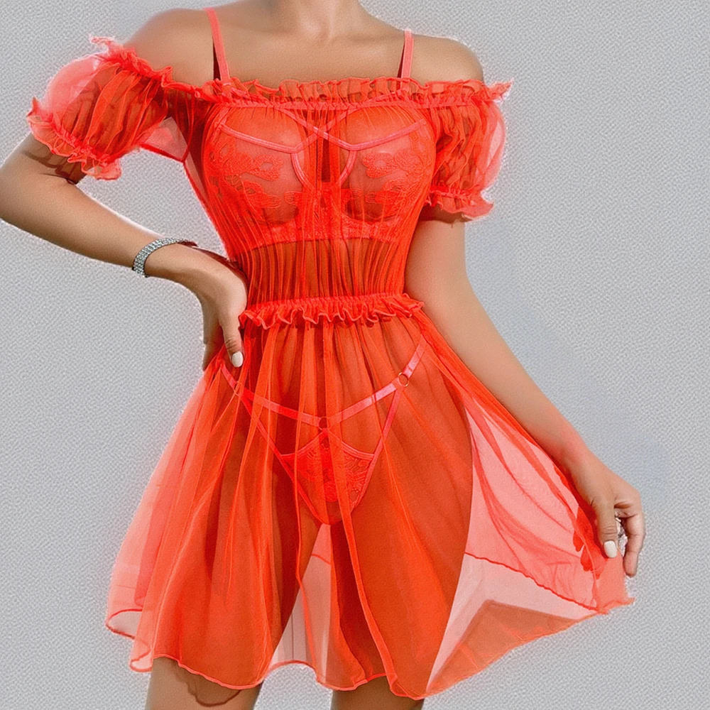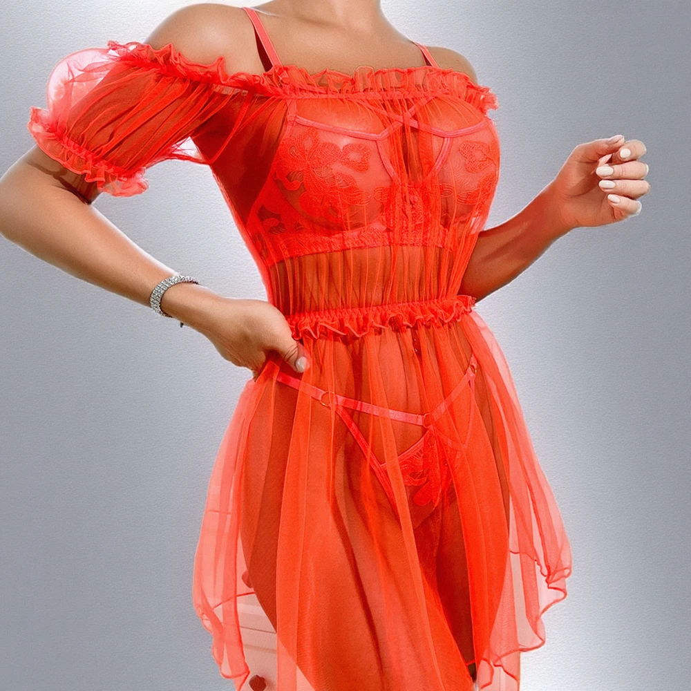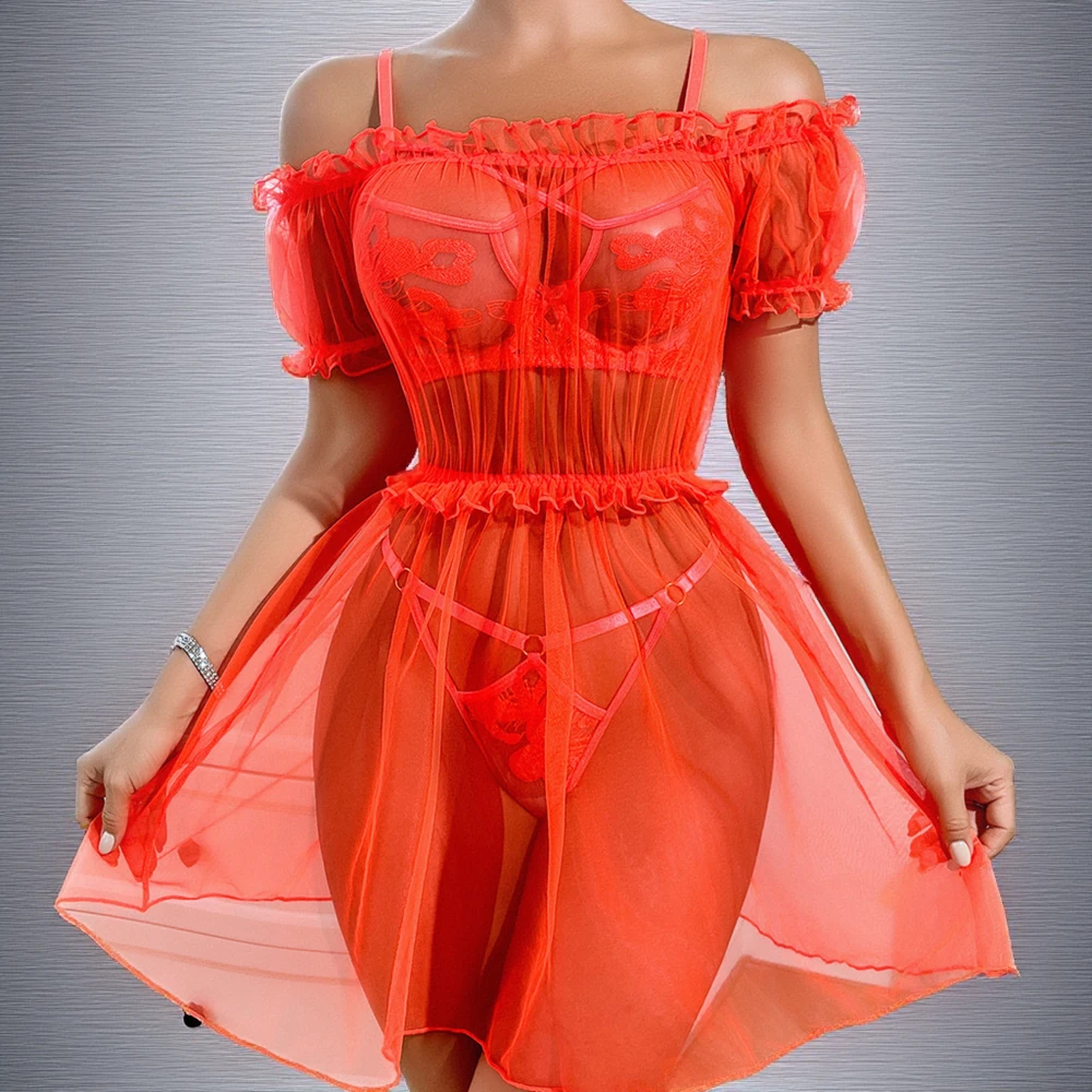 Diccvicc Sheer Lace Nightwear Three Pieces Ultra Sexy Bra Panty Set Romantic Dress Lingerie Transparent Delicate Robe Underwear