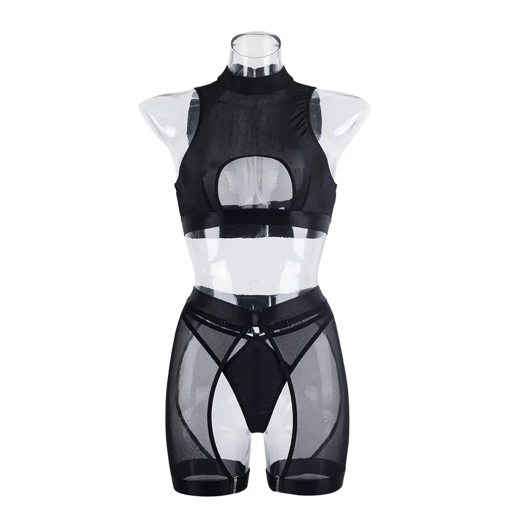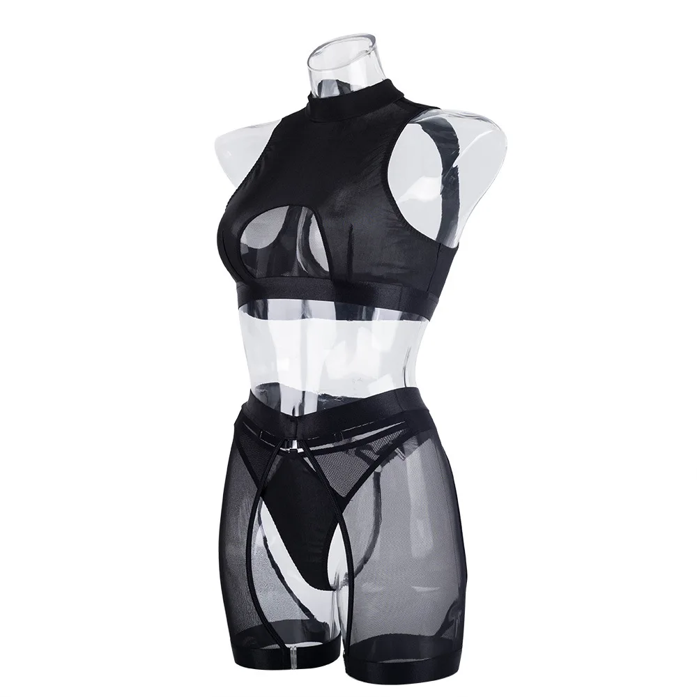 Diccvicc Women Uncensored Lingerie Black Halter Cut Out Bra Panty Suit Sheer Mesh Feminine Sexy Underwear Fancy Erotic Costumes