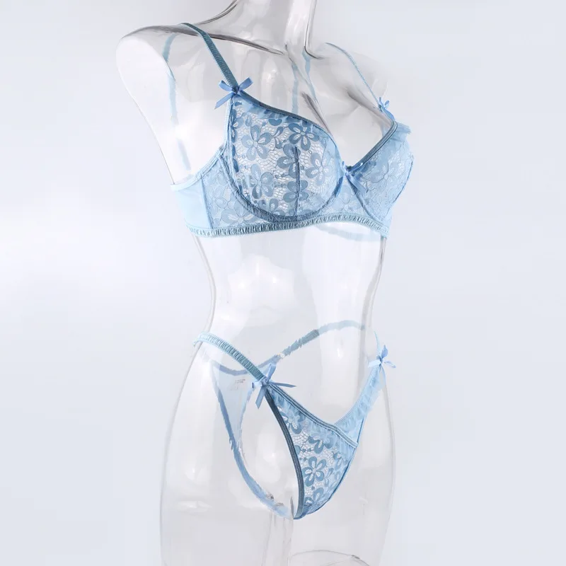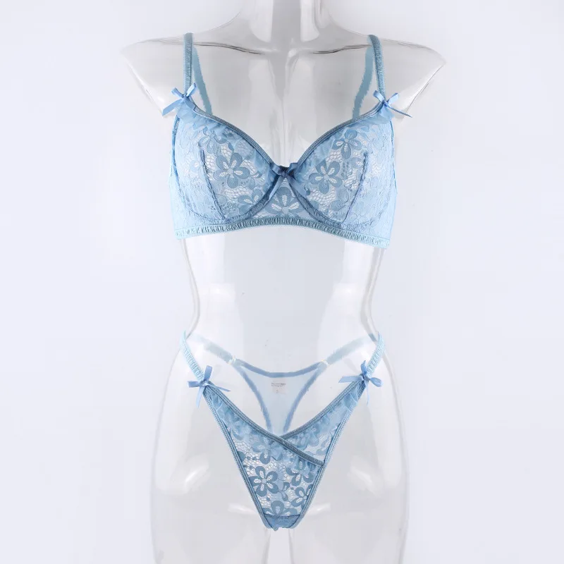 Diccvicc Women’s Underwear 2 Pieces Transparent Lace Bow Bra Panty Set Female Sexy Lingerie Fancy Intimate Outfit Exotic Apparel