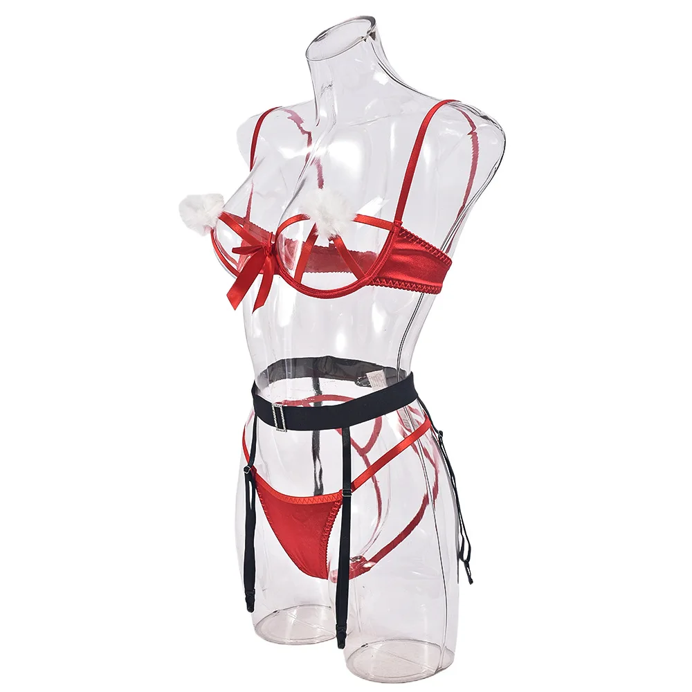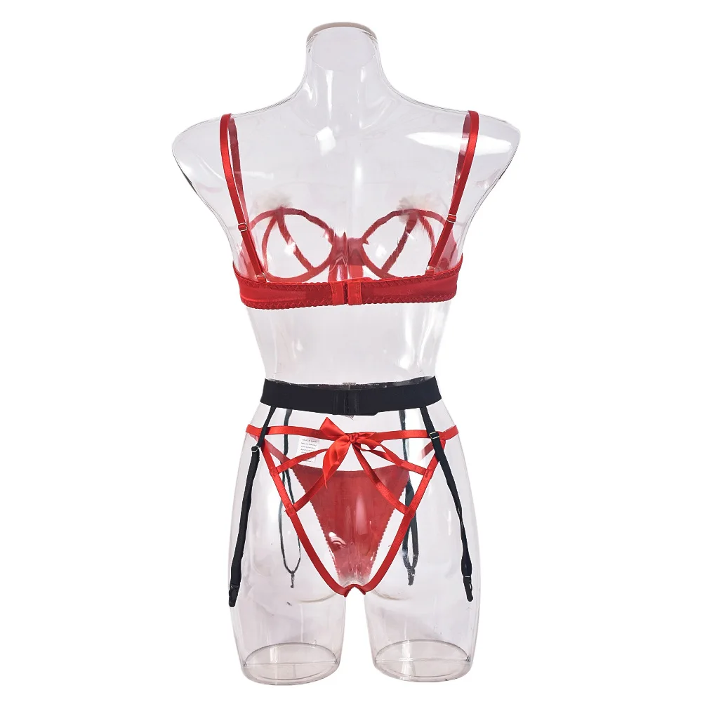 Tips: 3-Piece Lingerie; Bra+Garter+Briefs;