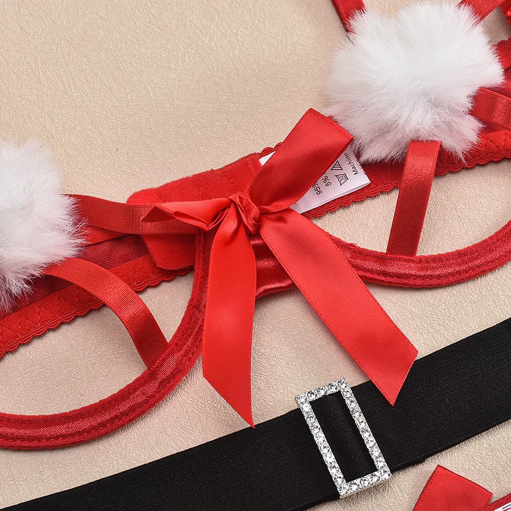 Ellolace Christmas Erotic Lingerie Sexy Porn Underwear Women Body Chuzzle Hot Intimate Uncensored Luxury Bra And Panty 6-Piece