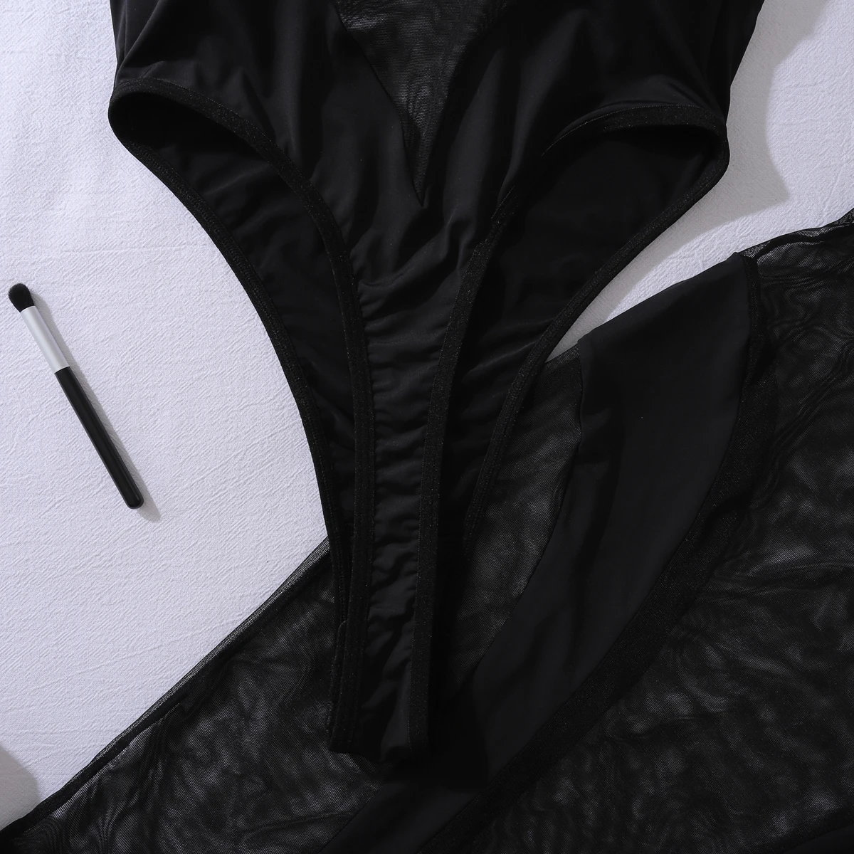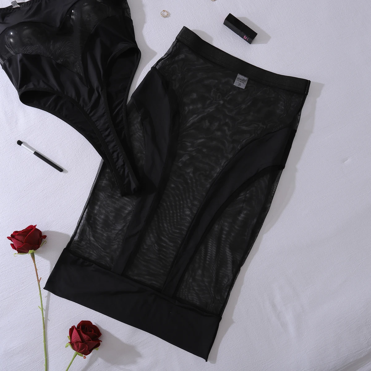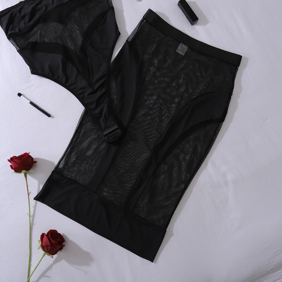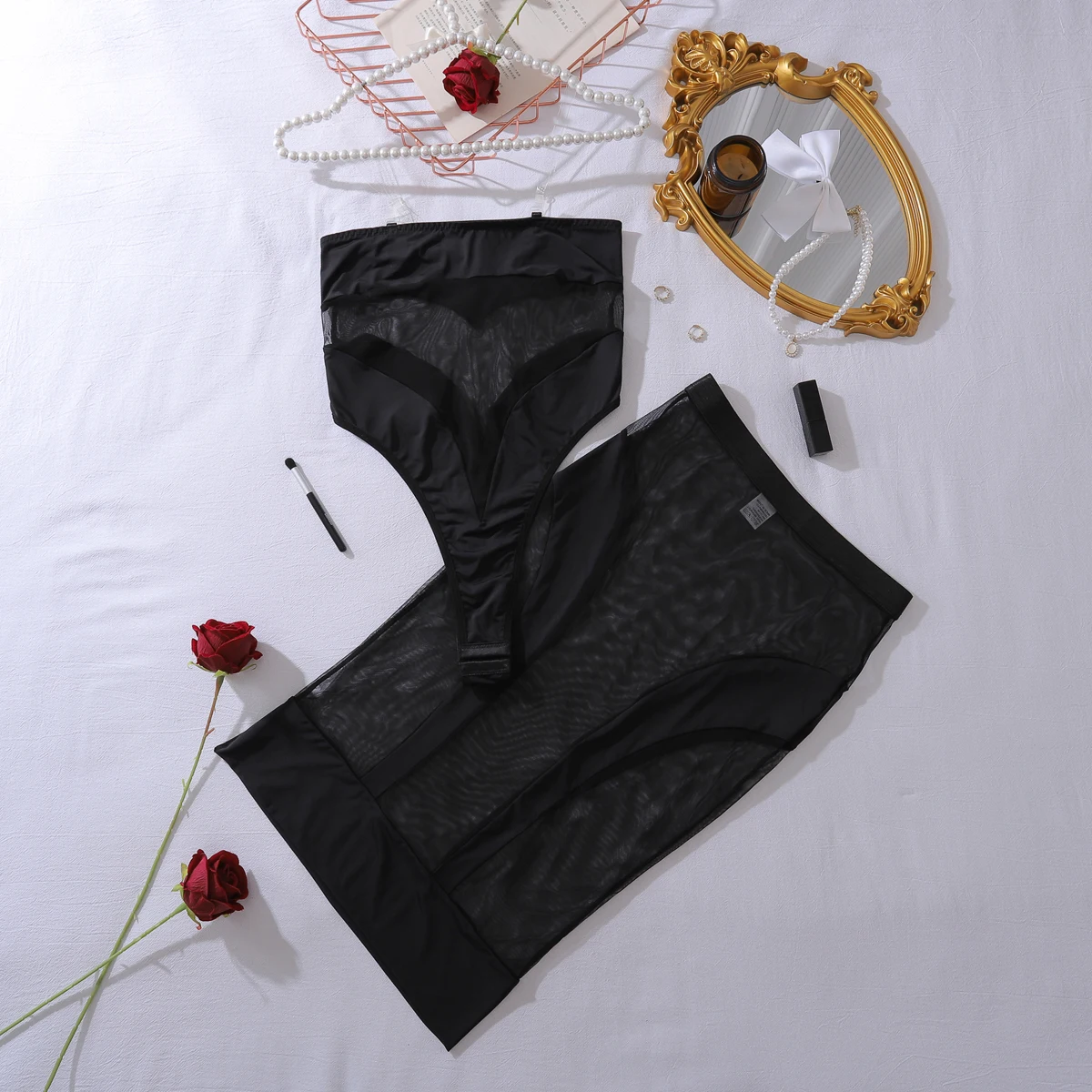 Ellolace Elegant Hot Sexy Lingerie See Through Strapless Bodysuit Half Dress 2PC Set Seductive Splicing Party Queen Costume