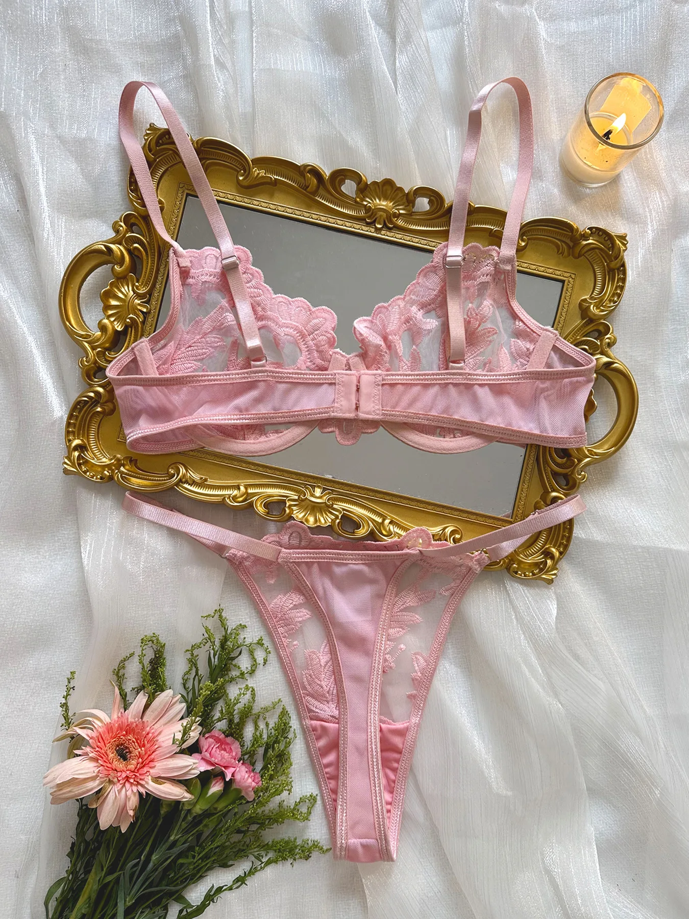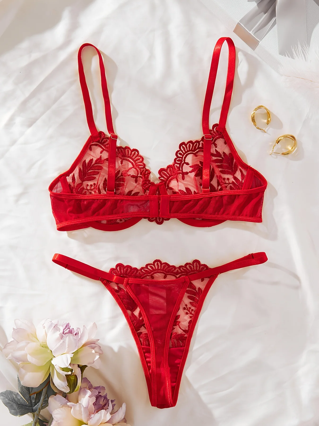 Ellolace Erotic Lingerie With Lace Transparent Embroidered Sexy Costumes Uncensored Wedding Intimate Push Up Bra 2-Piece Set