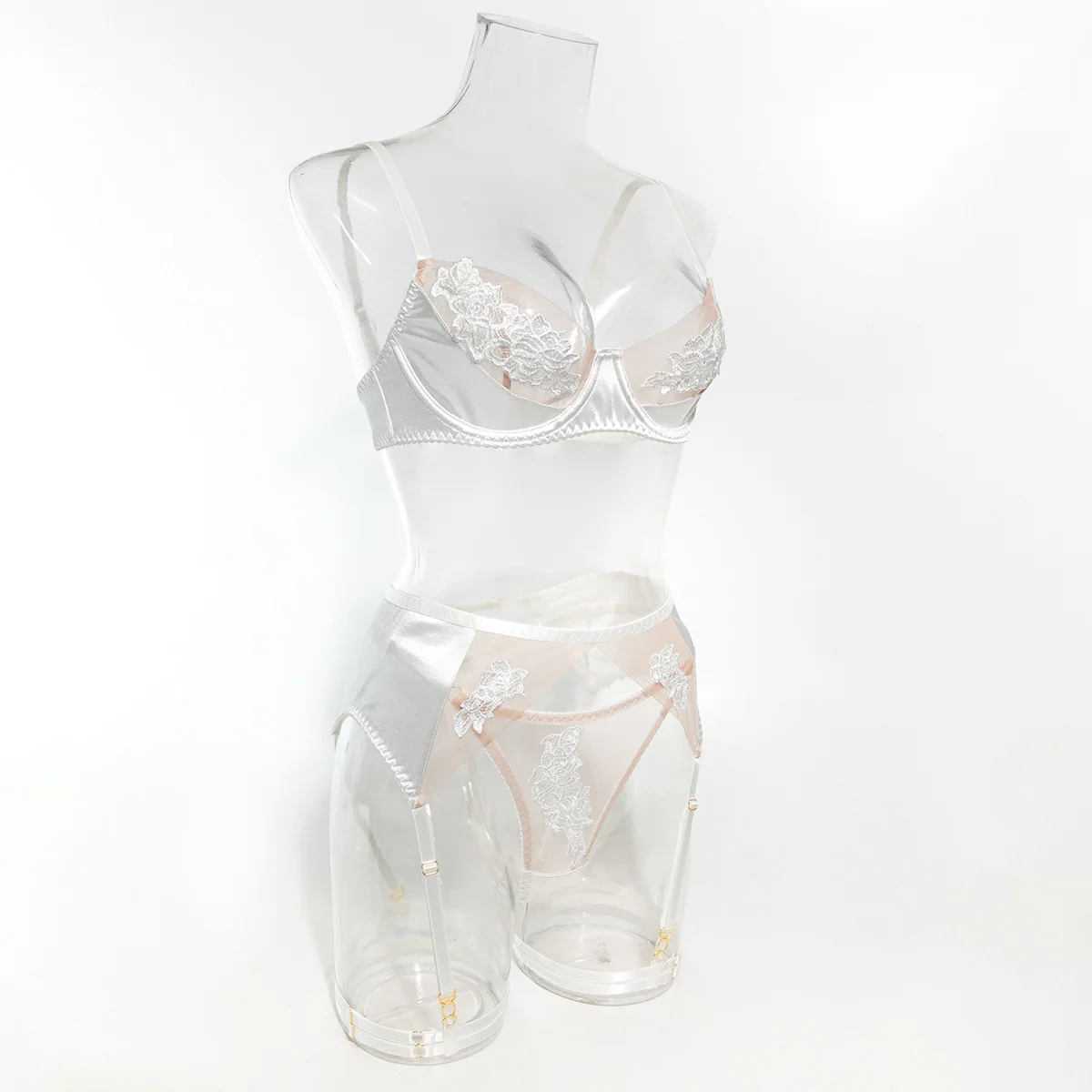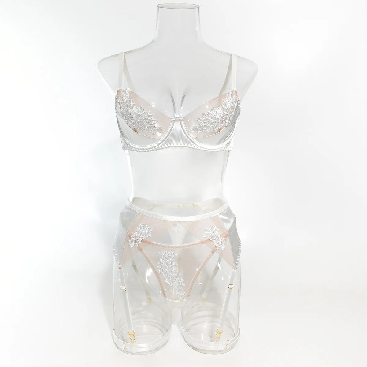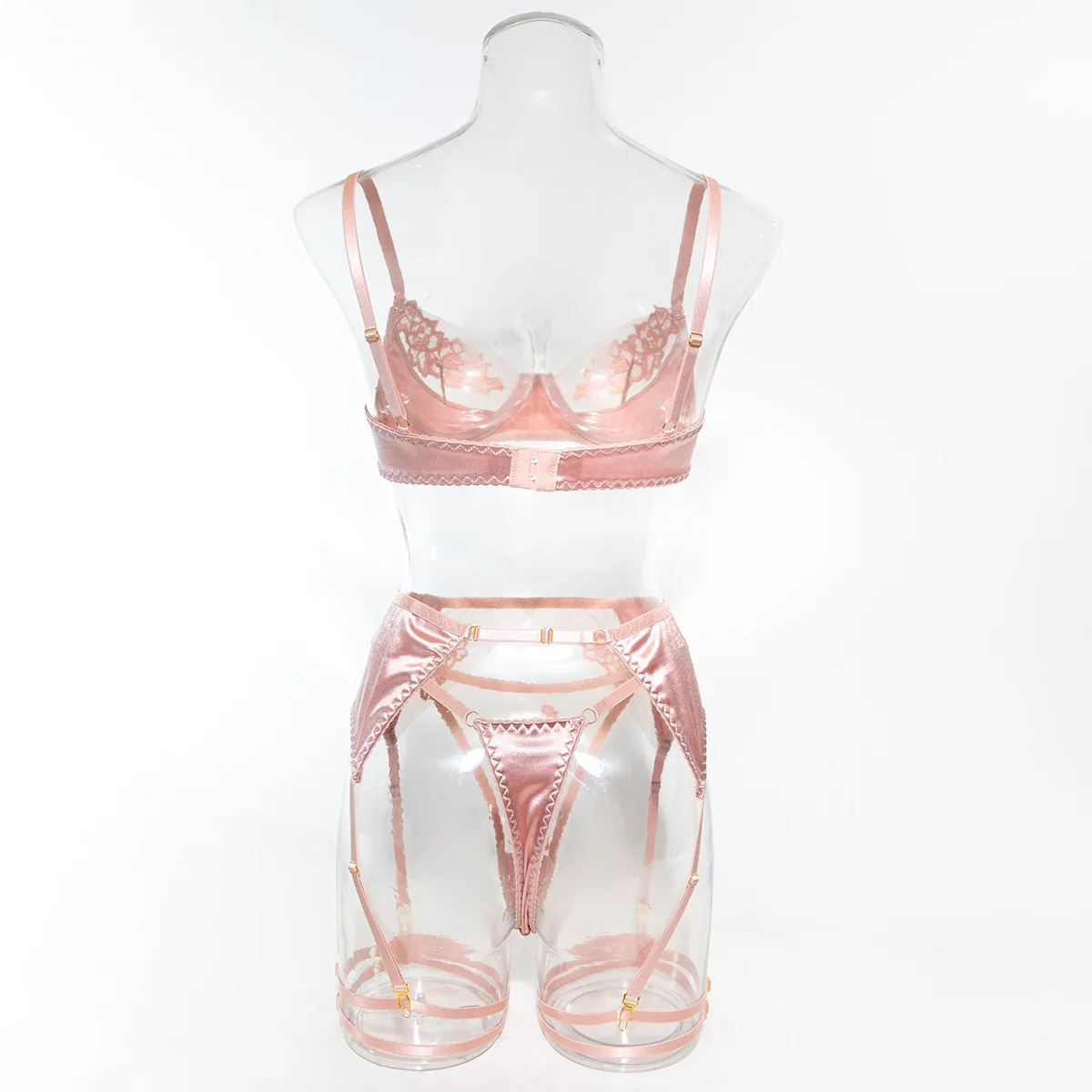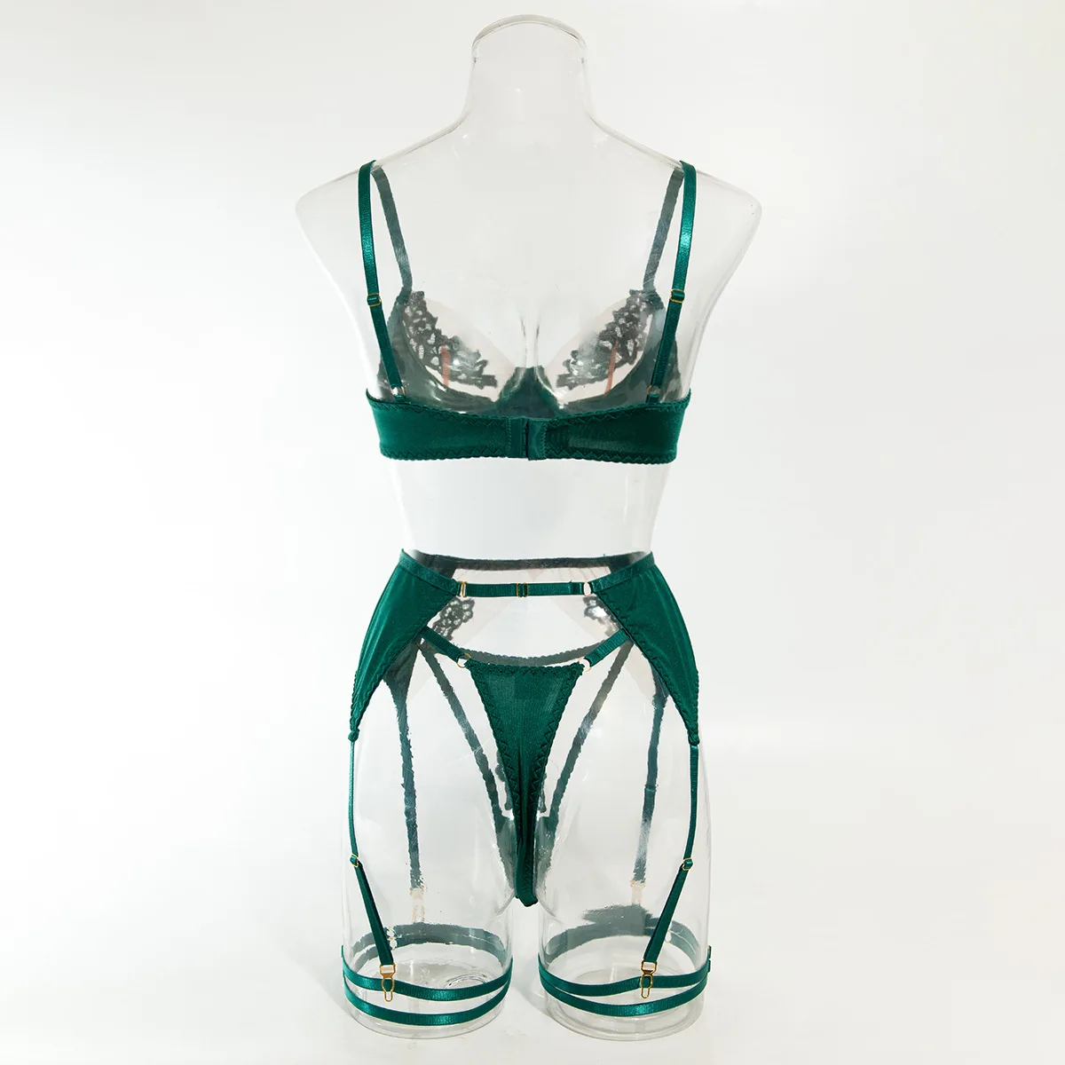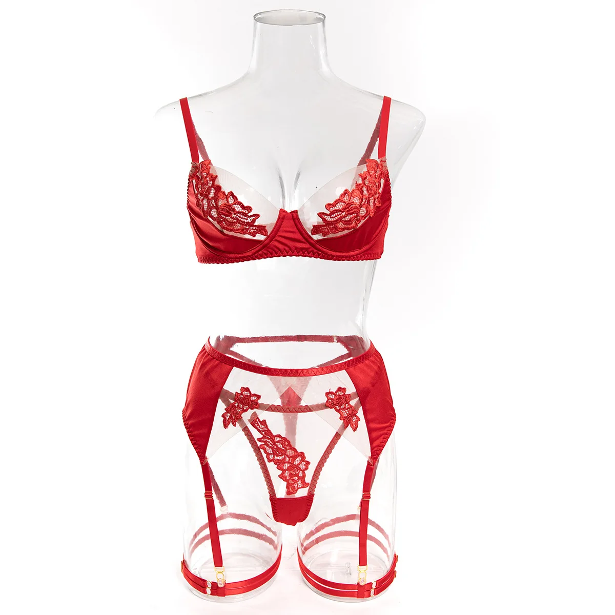 Ellolace Fancy Lingerie Floral Lace Ensemble Brazilian Underwear Attractive Chest Suspenders Sexy Hot Sissy Outfit