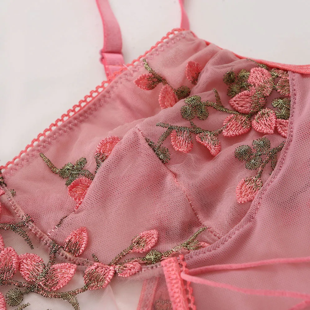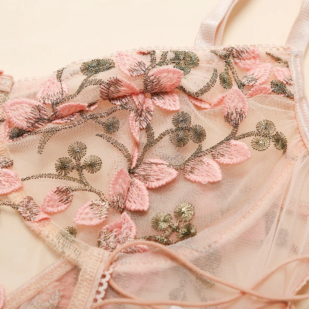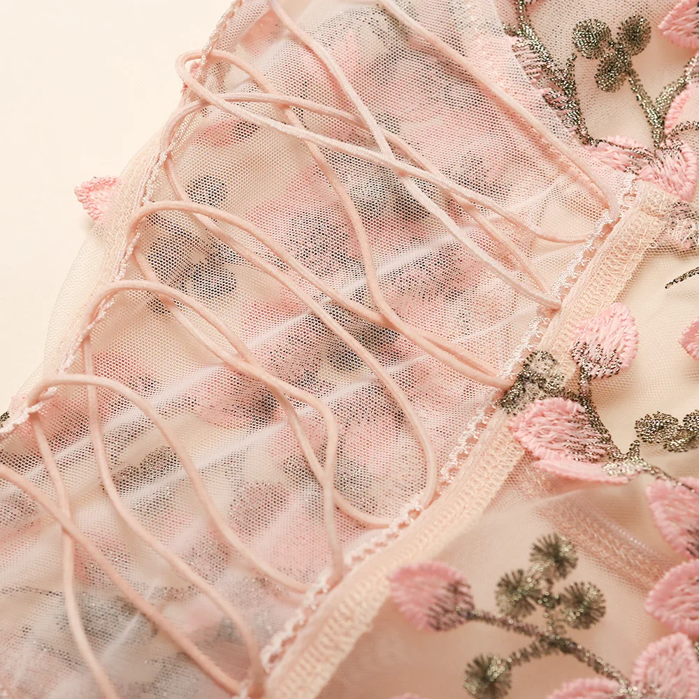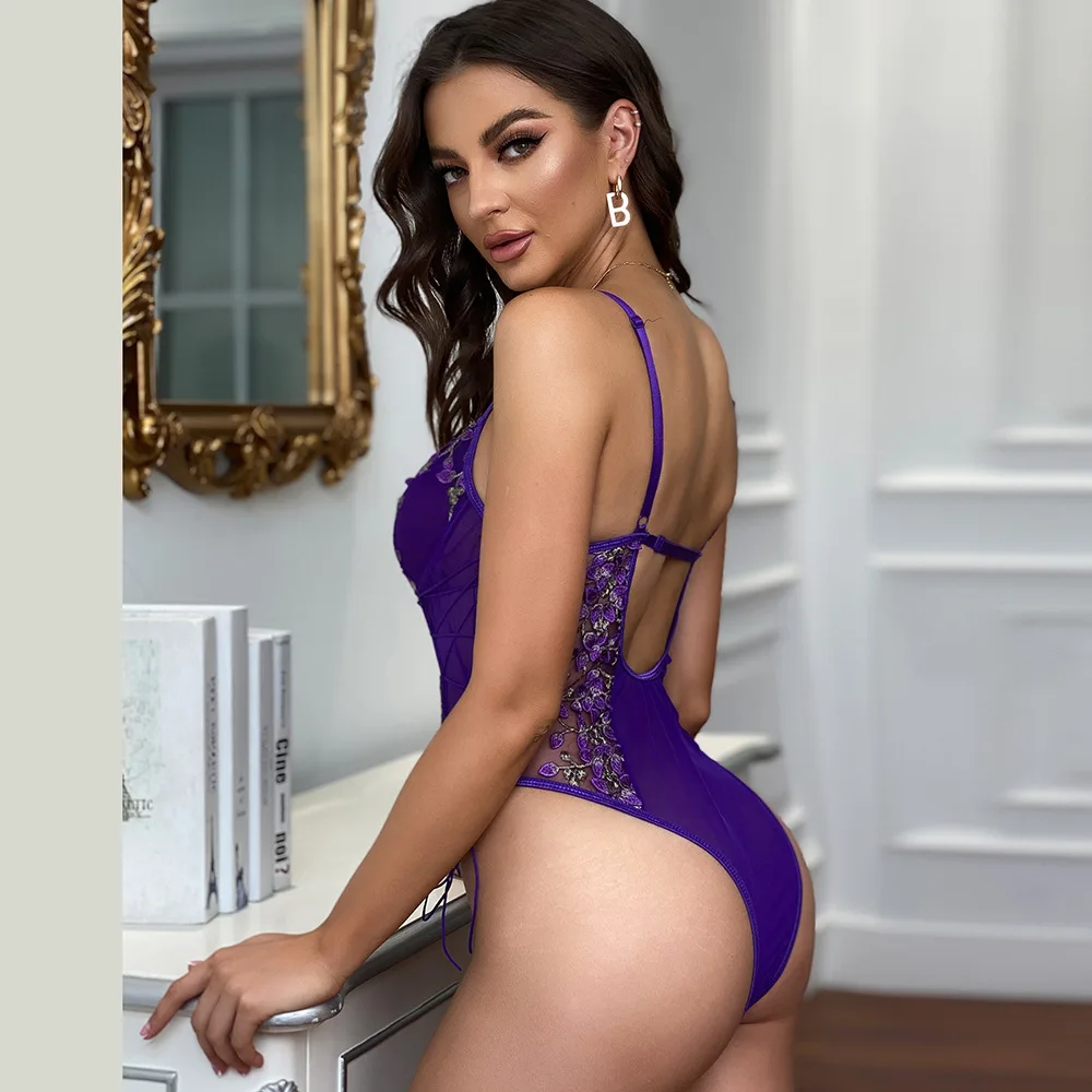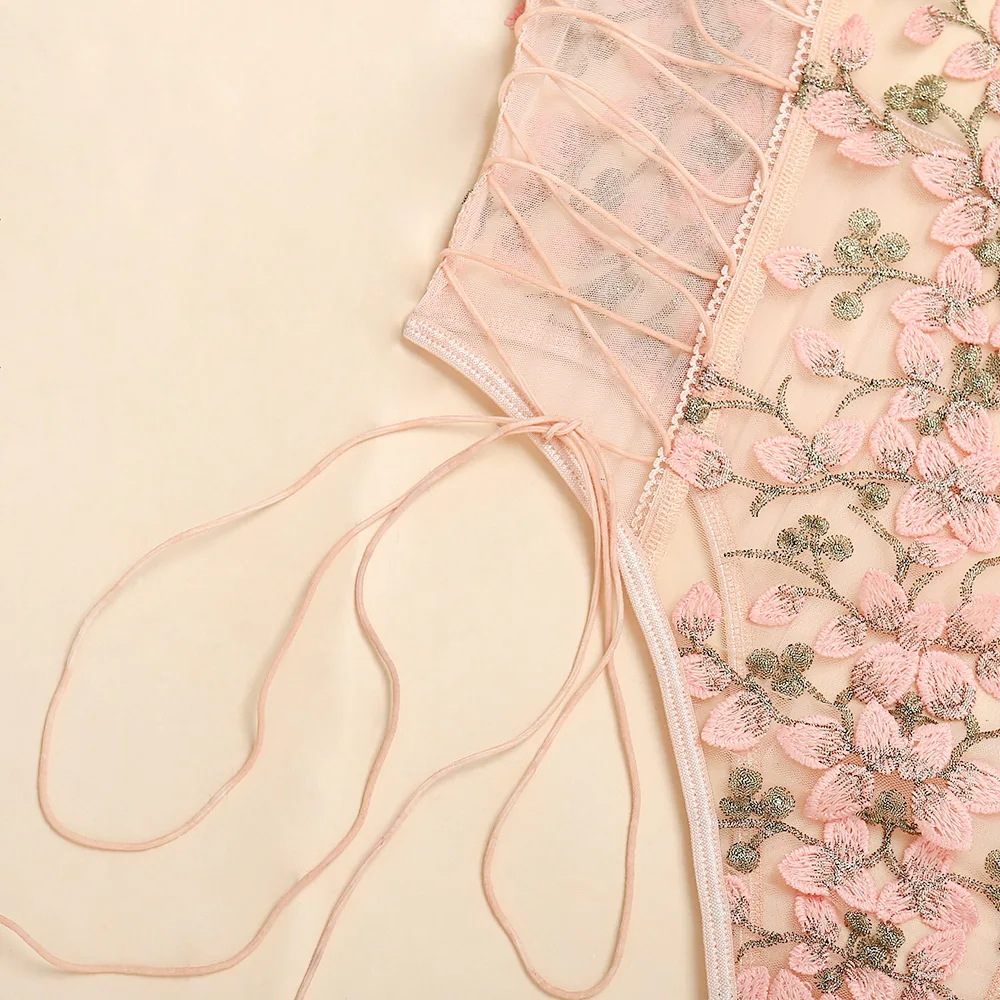 Ellolace Floral Embroidery Bodysuit Women Lace Up Bandage Bodies Sexy Sleeveless Bodycon Transparent Lingerie Mesh Bodysuits Top