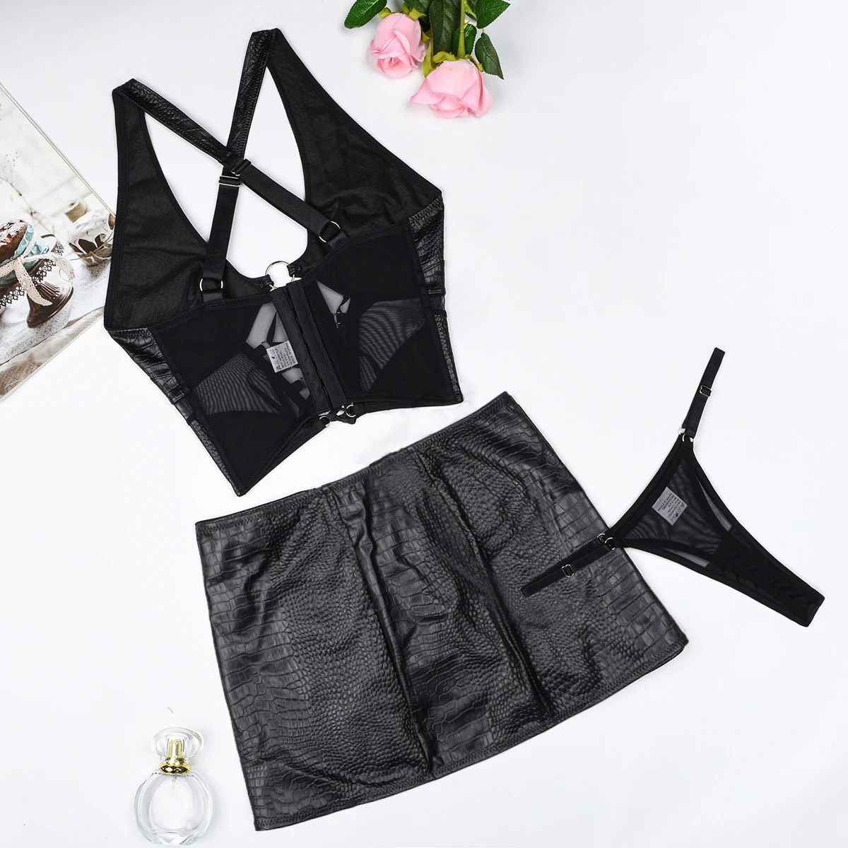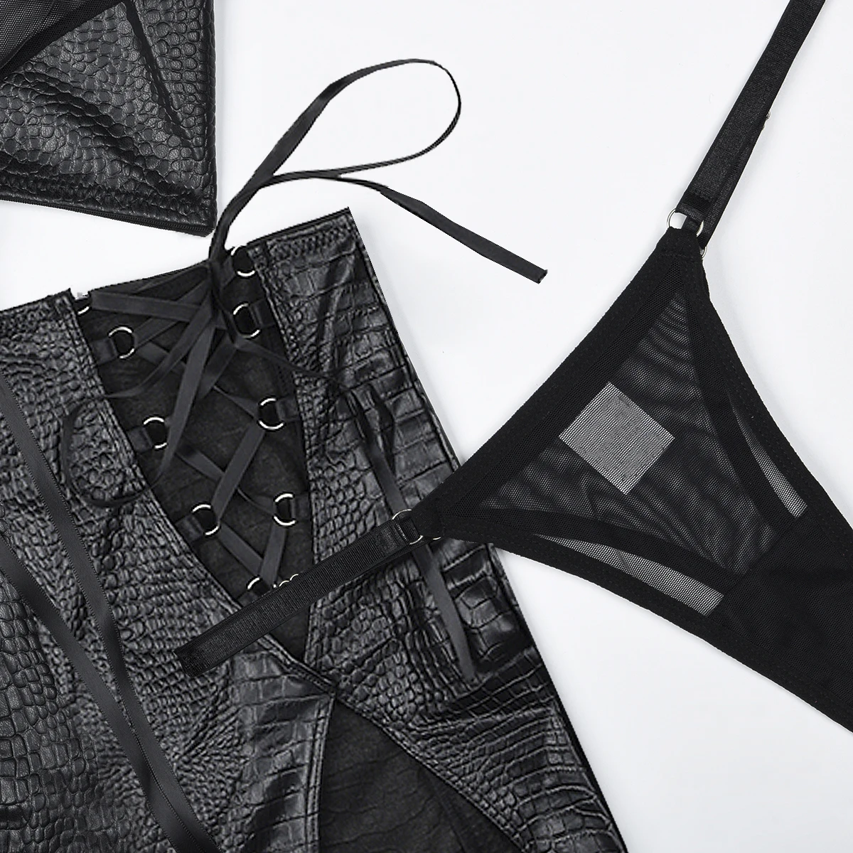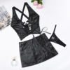 Ellolace Sexy Short Mini Skirts Sets for Women 2 Pieces Leather Outfit Lace Up Cross Bra Coquette Youthful New in Matching Sets