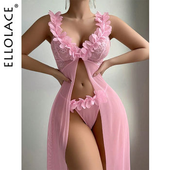 Ellolace Fancy Lingeries Sexy Hot Beautiful Underwear Fancy Floral Valentine Ensemble Lingerie Ruffled Lace Exotic Sets