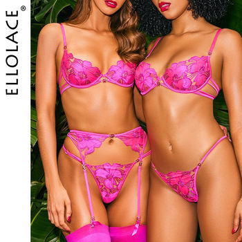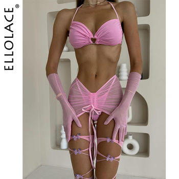 Ellolace Sexy Adult Women Underwear Premium Lace Bra Thongs Hilitos Attractive Suspenders Erotic See Through Lingerie To Catch