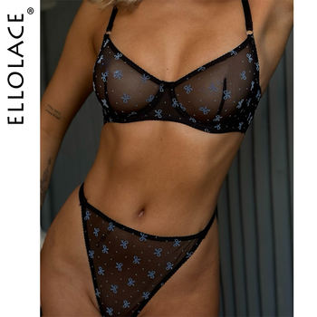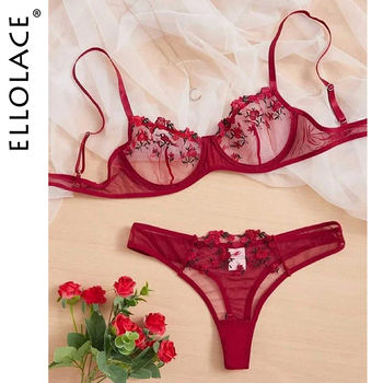 Ellolace Erotic Lingerie With Lace Transparent Embroidered Sexy Costumes Uncensored Wedding Intimate Push Up Bra 2-Piece Set