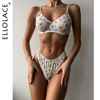 Ellolace Lingerie Sexy Floral Embroidery Underwear Transparent Lace Short Skin Care Kits Delicate Fairy Set Woman 2 Pieces