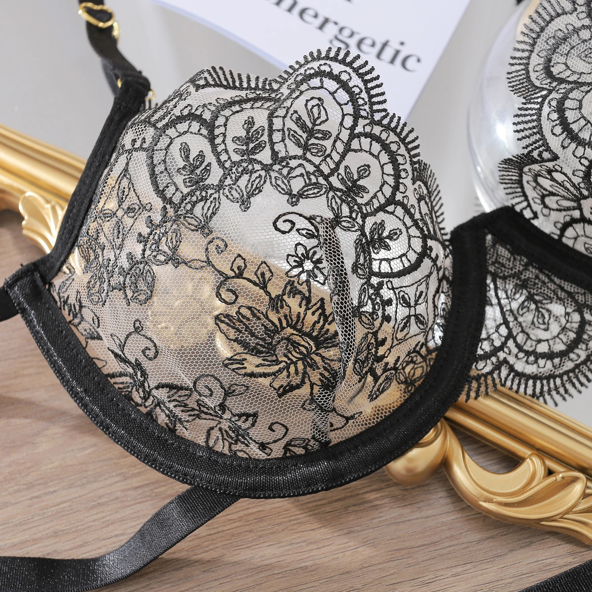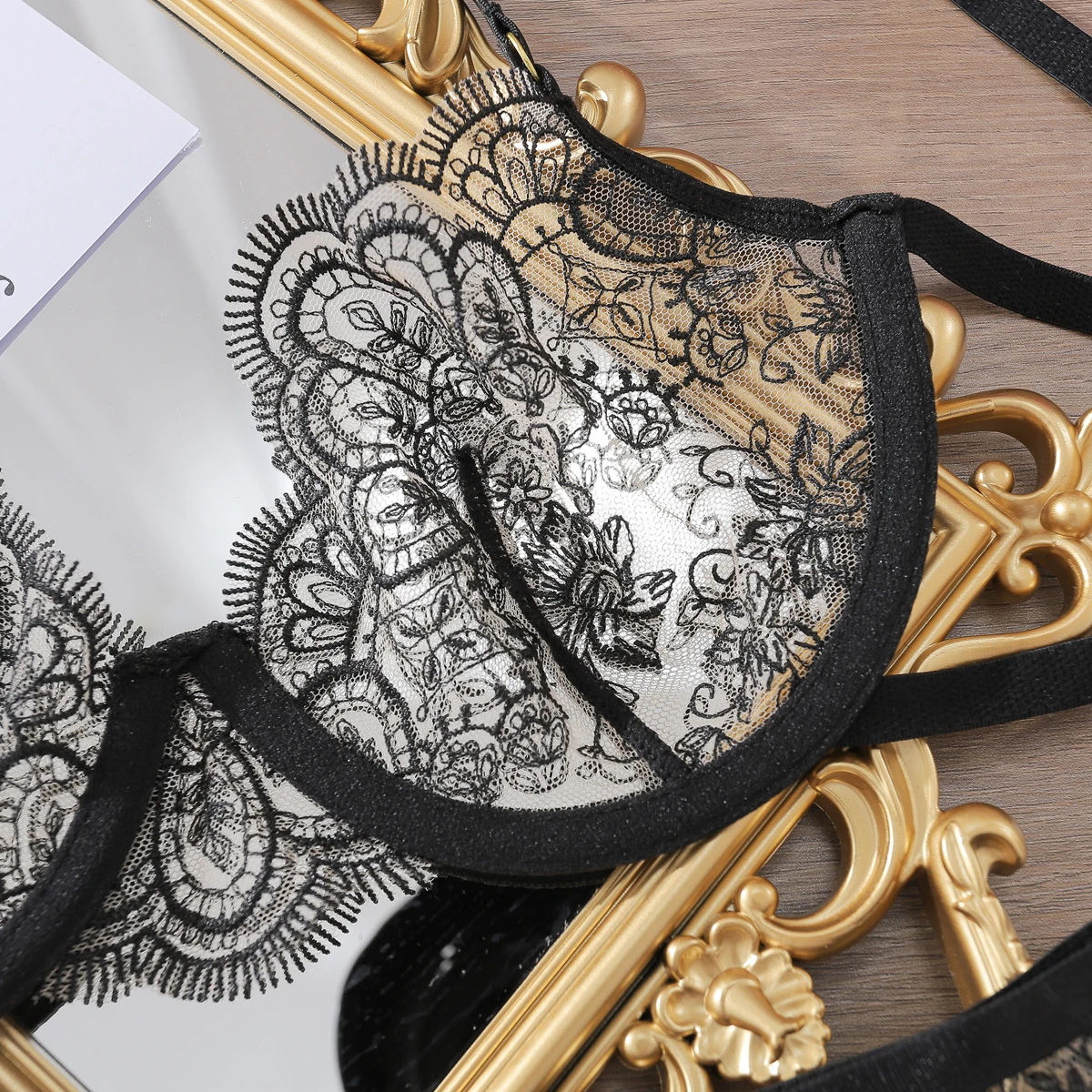 Fashion Luxury Fishbone Lace Erotic Bra and Panty Set Sexy Seduction Embroidery Mesh See Through Ladies Lingerie four-piece Set