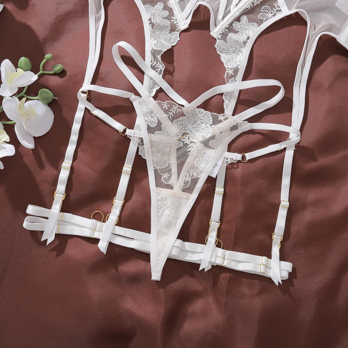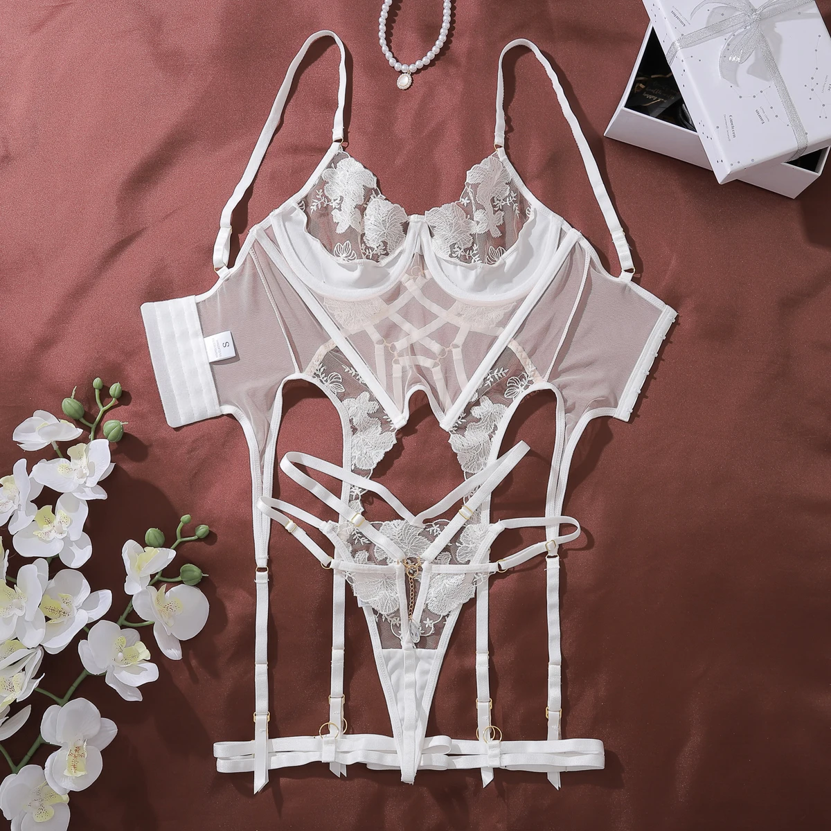 Fashionable Womens Sexy Embroidery Mesh Perspective Splicing Craft Sexy Underwear Strap Two Piece Set Sexy Underwear Se