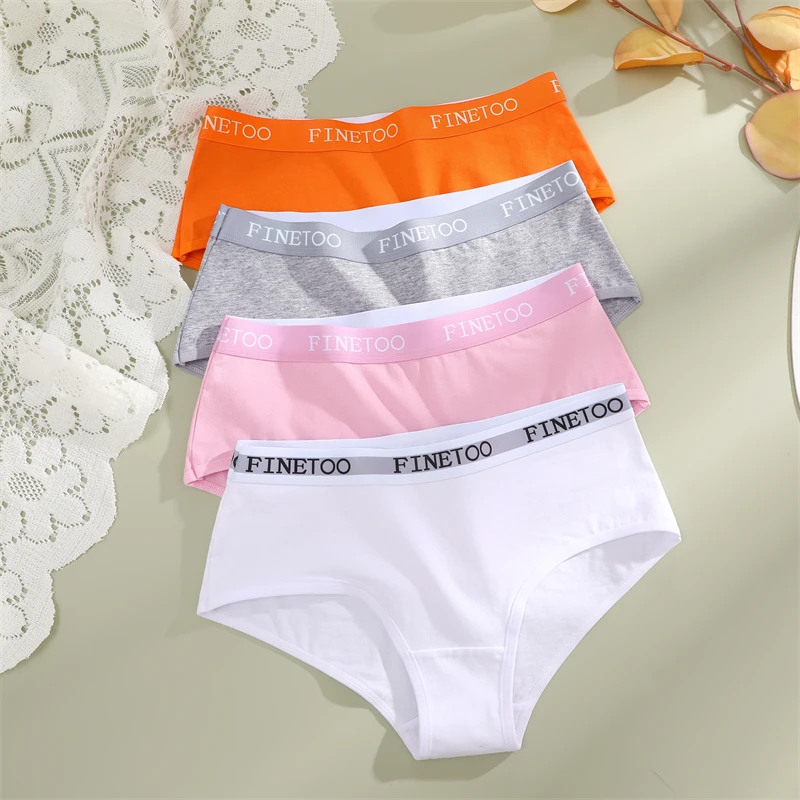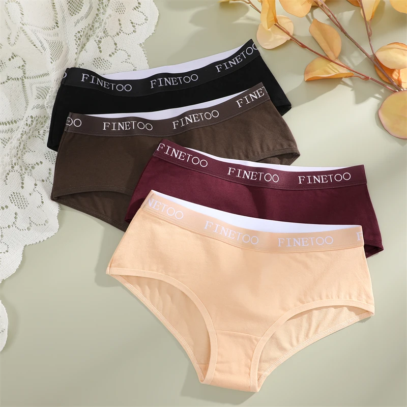 FINETOO 3Pcs Cotton Breathable Underwear Women’s Panties Sexy Letter Belt Low Waist Briefs Female Stretch Comfortable Lingerie