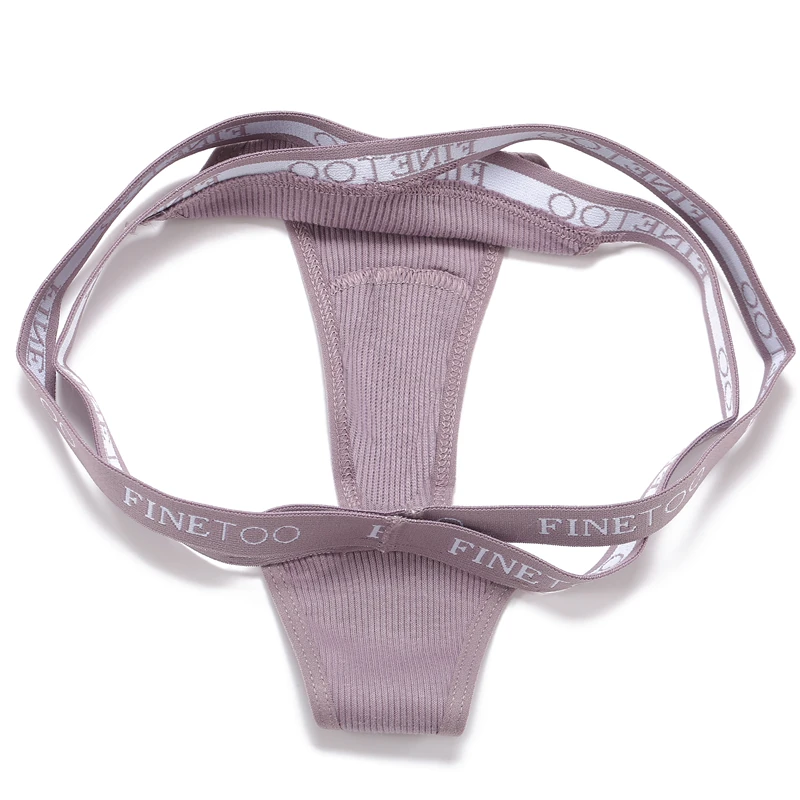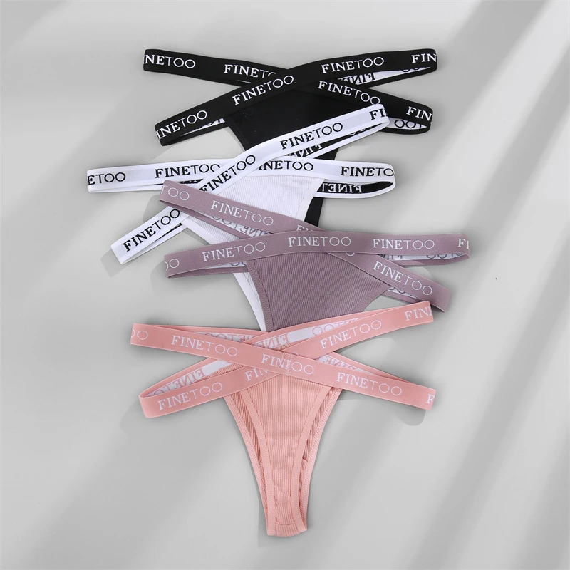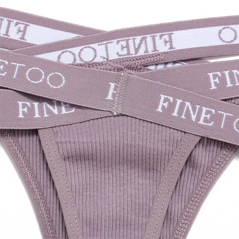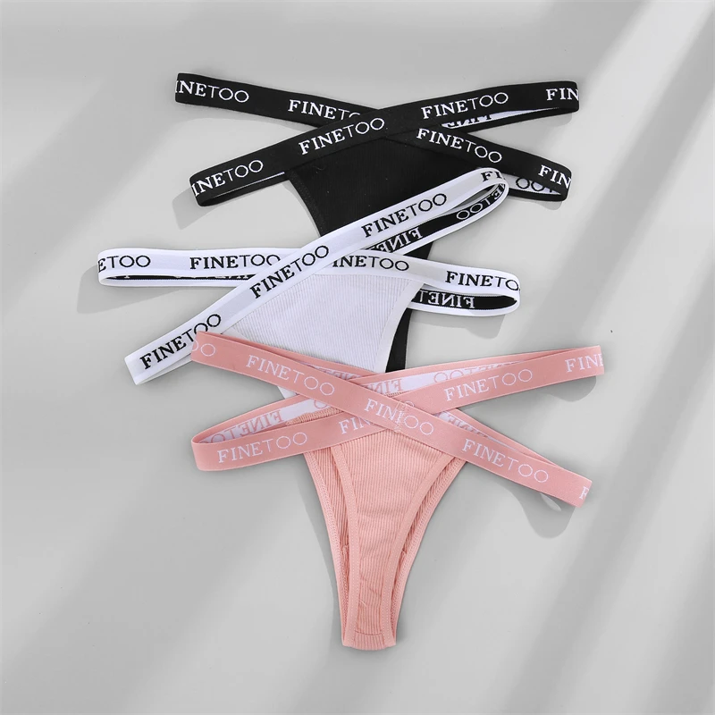 FINETOO 3Pcs Cotton Cross Letter Belt Thongs Sexy Low Waist Breathable Panties Girls Soft Solid Color G-String Fashion Lingerie