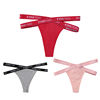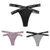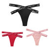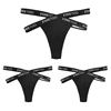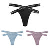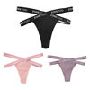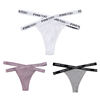 FINETOO 3Pcs Cotton Cross Letter Belt Thongs Sexy Low Waist Breathable Panties Girls Soft Solid Color G-String Fashion Lingerie